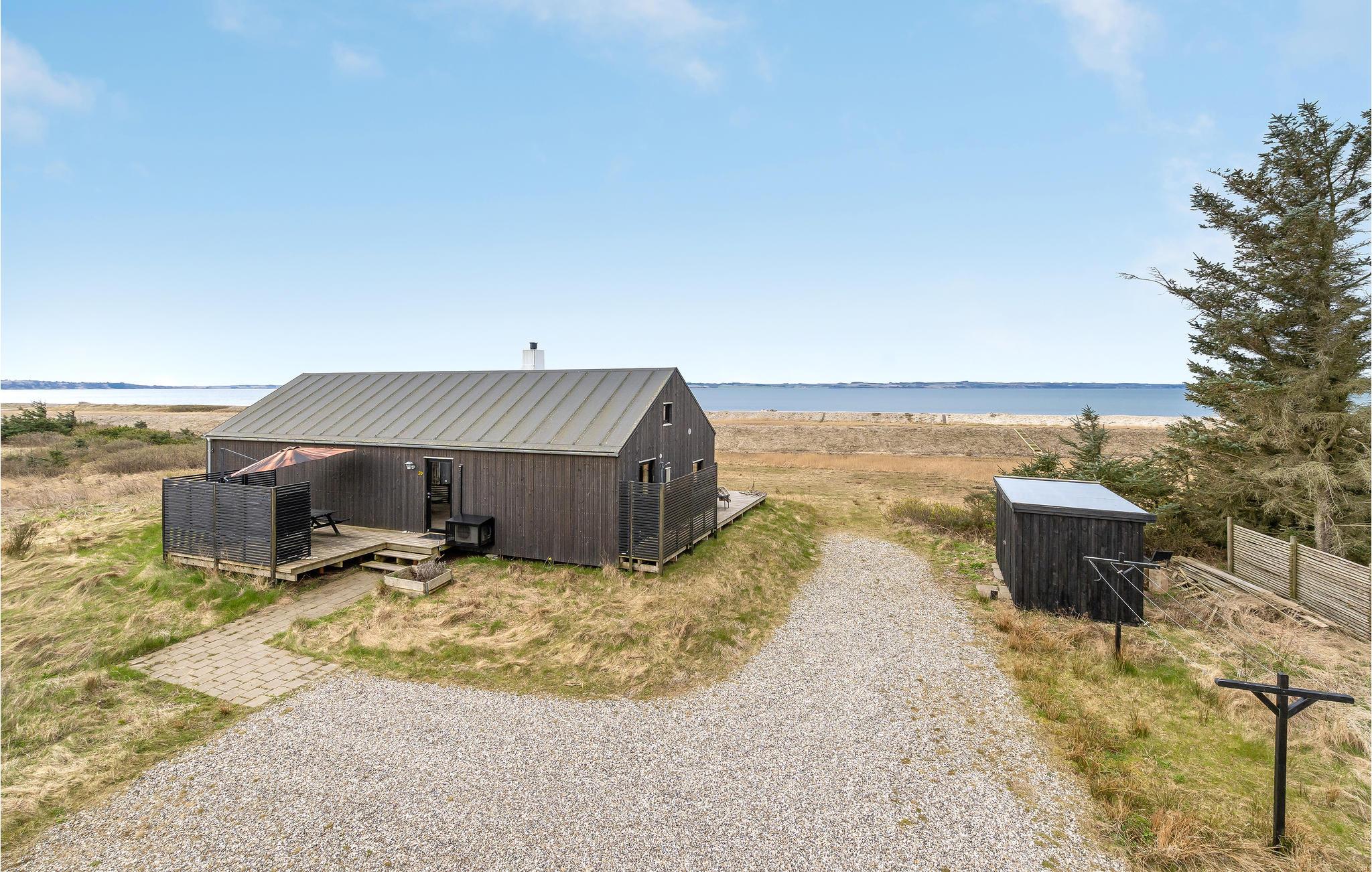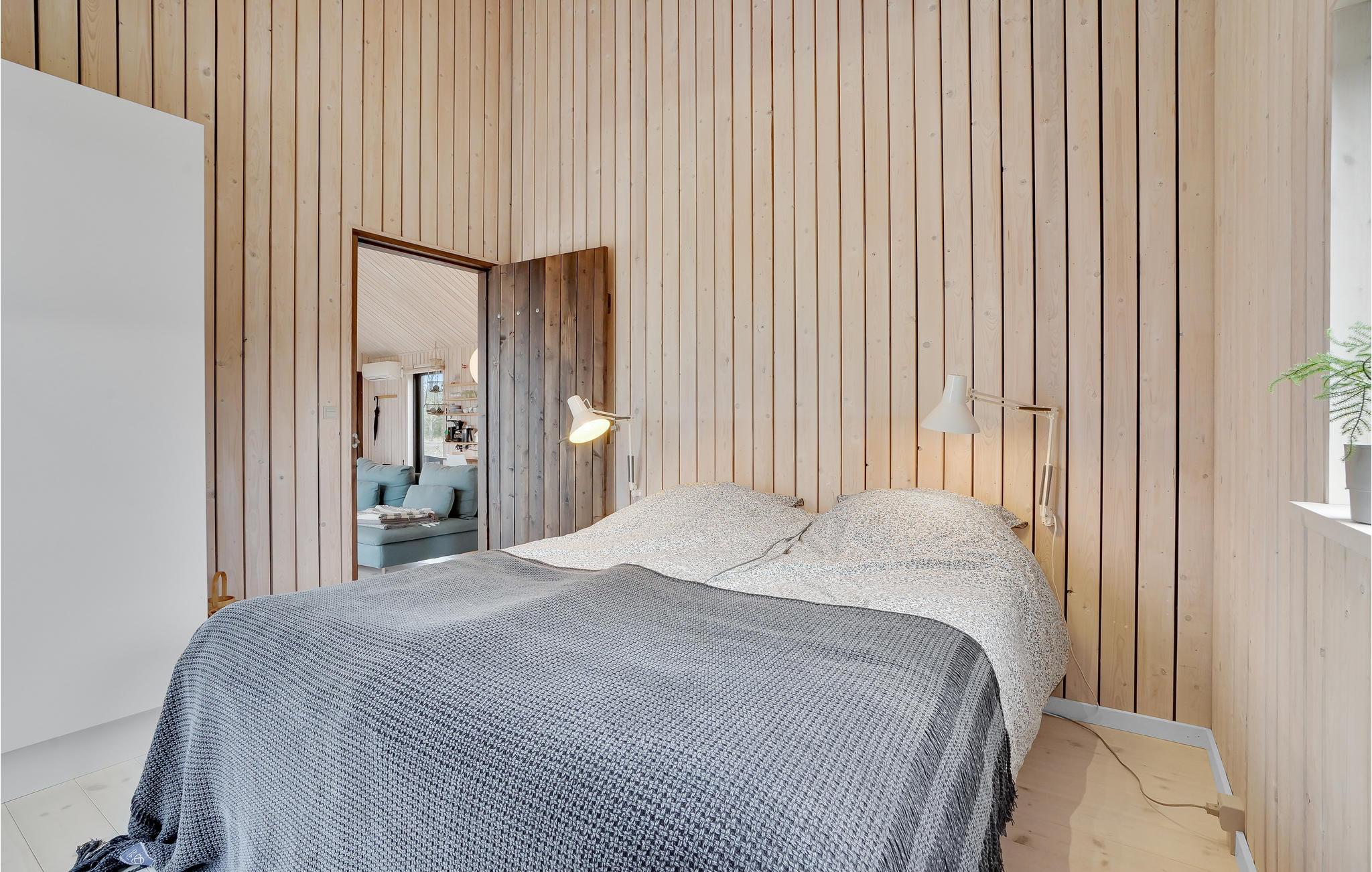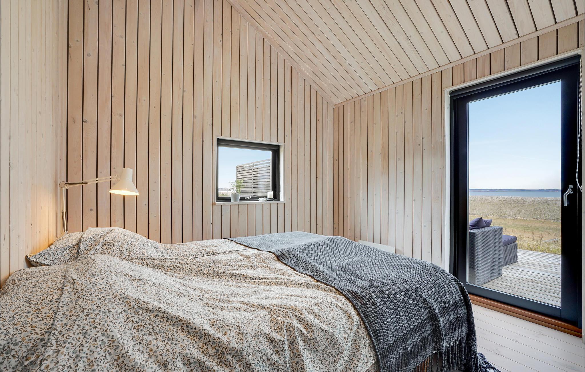 Indendørs vil dette smukke træhus imponere jer med dets hygge og smukke detaljer som den integrerede pejs i stuen. Efter en lang gåtur på stranden kan I slappe af i den komfortable sofa, hvorfra I har en fantastisk udsigt over fjorden. Der er også 3 smukke soveværelser og 1 badeværelse.