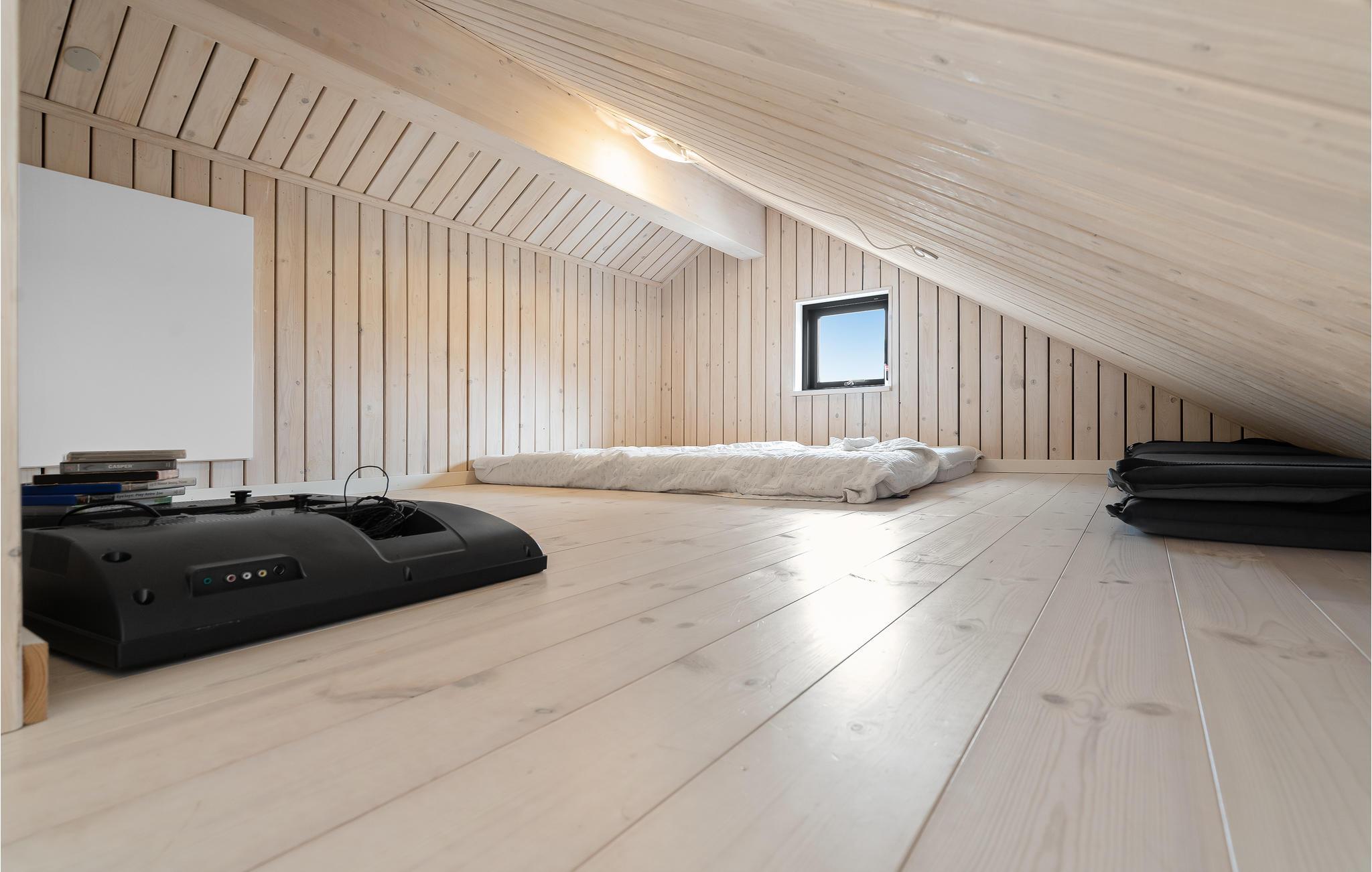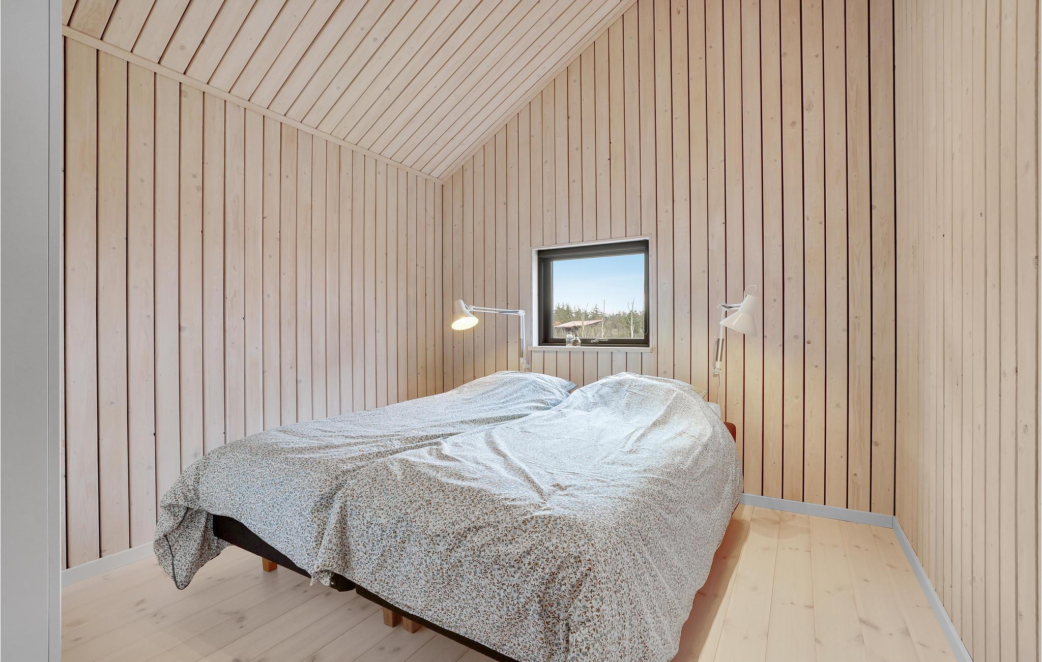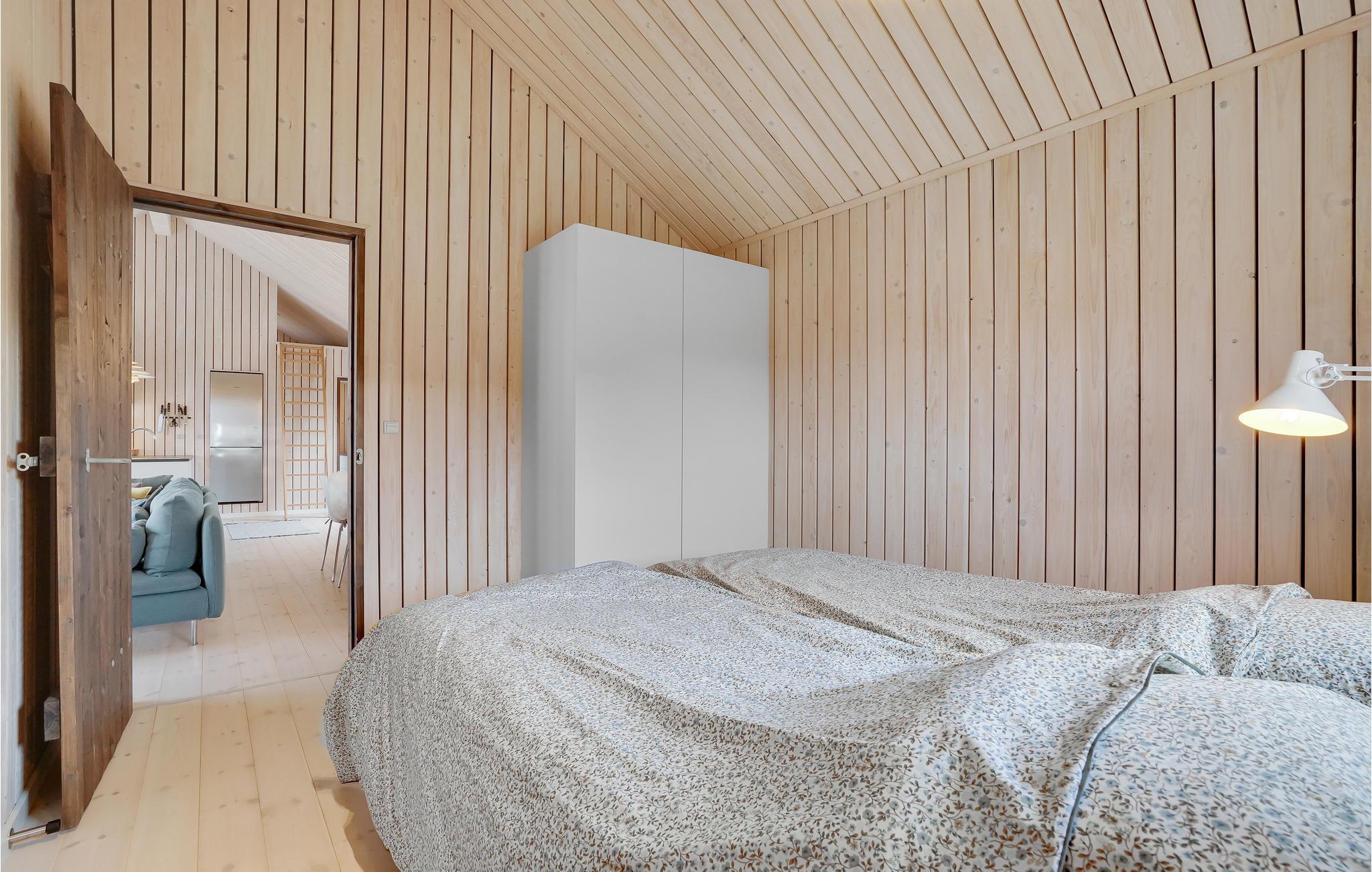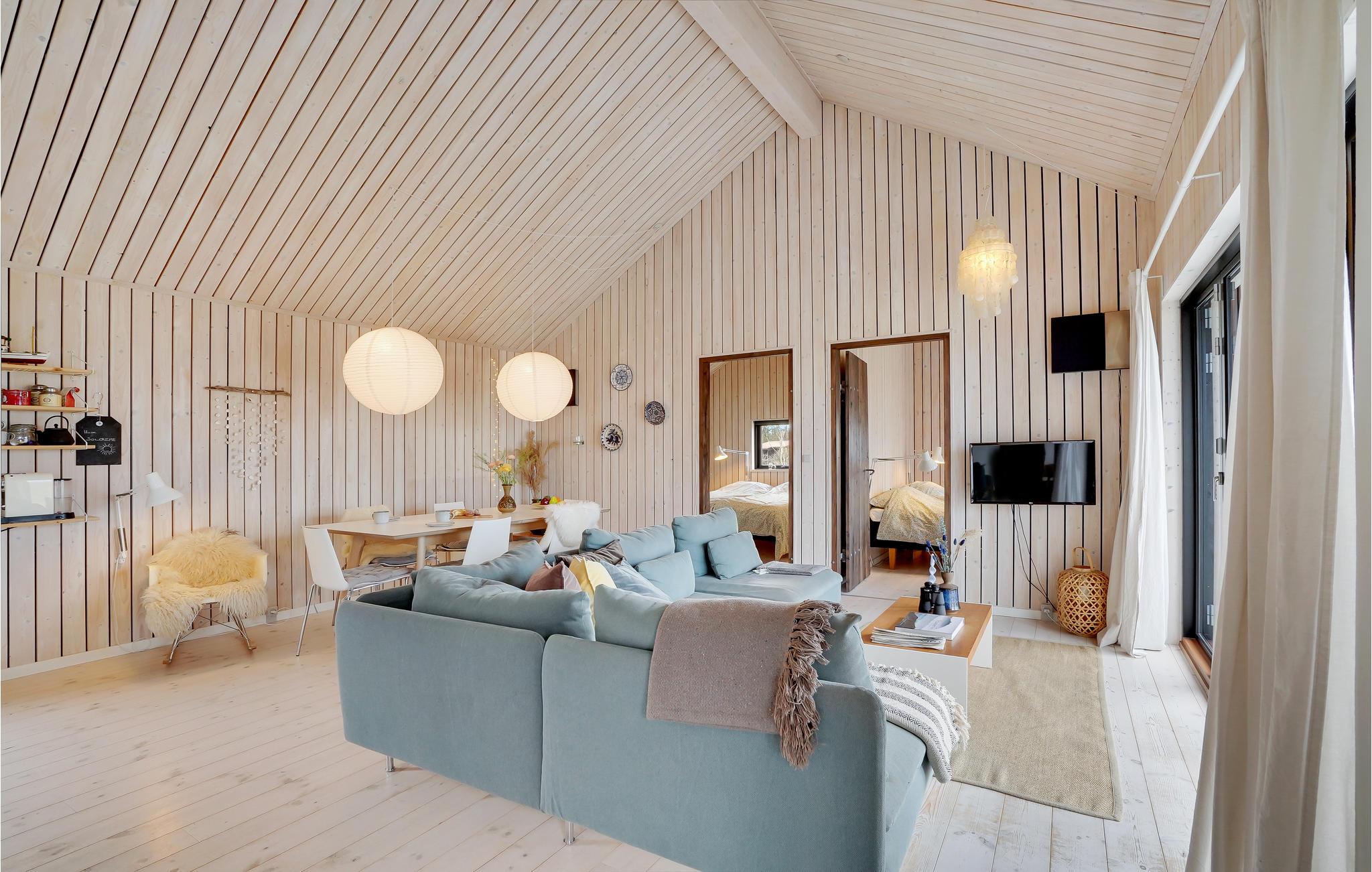 Indendørs vil dette smukke træhus imponere jer med dets hygge og smukke detaljer som den integrerede pejs i stuen. Efter en lang gåtur på stranden kan I slappe af i den komfortable sofa, hvorfra I har en fantastisk udsigt over fjorden. Der er også 3 smukke soveværelser og 1 badeværelse.