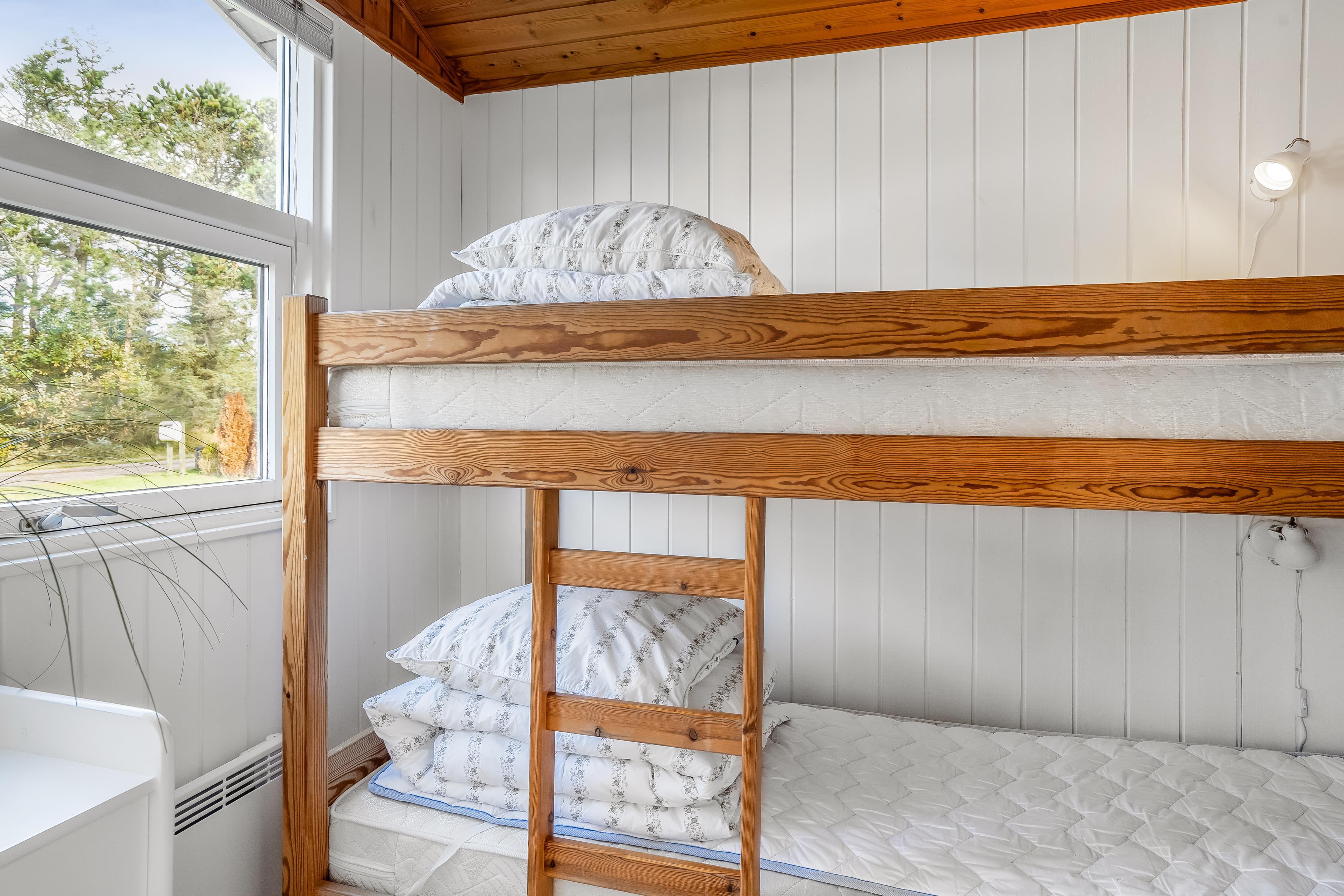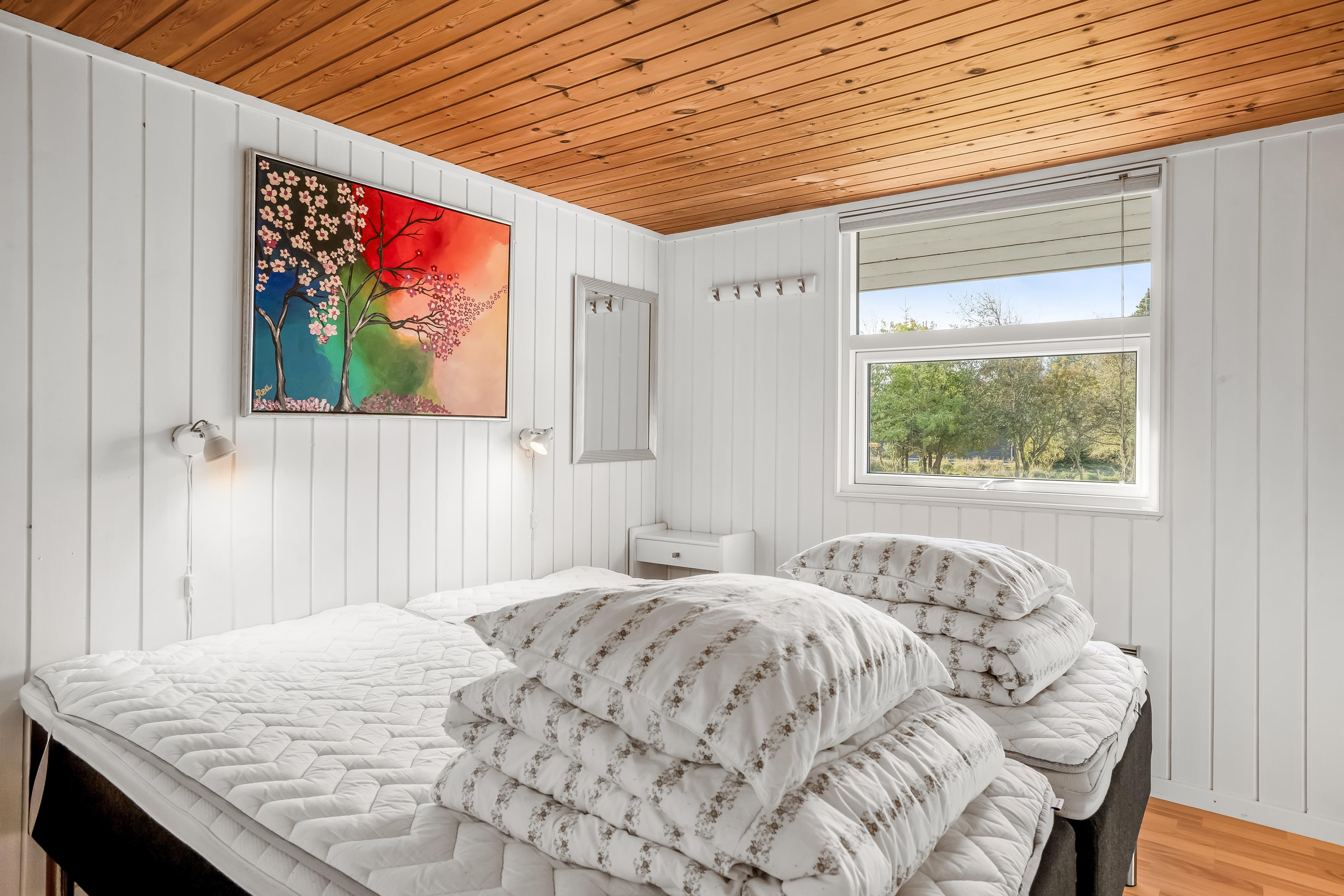 Sommerhuset har fire soveværelser, hvor sovepladserne fordeler sig på tre dobbeltsenge og to køjesenge. To af disse sengepladser findes i et hyggeligt anneks, perfekt til dem, der ønsker lidt ekstra privatliv. Derudover er der en barneseng til de mindste gæster.