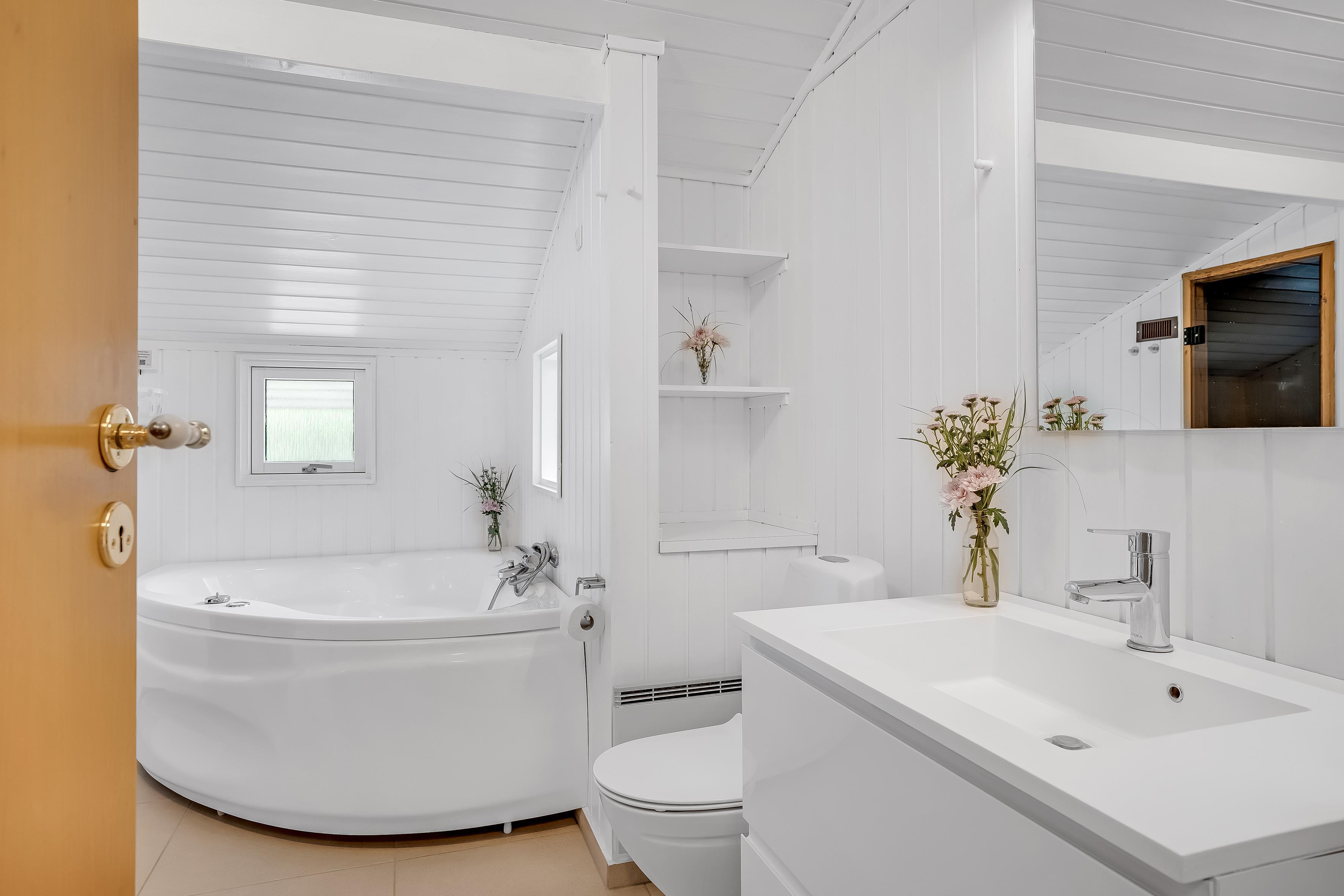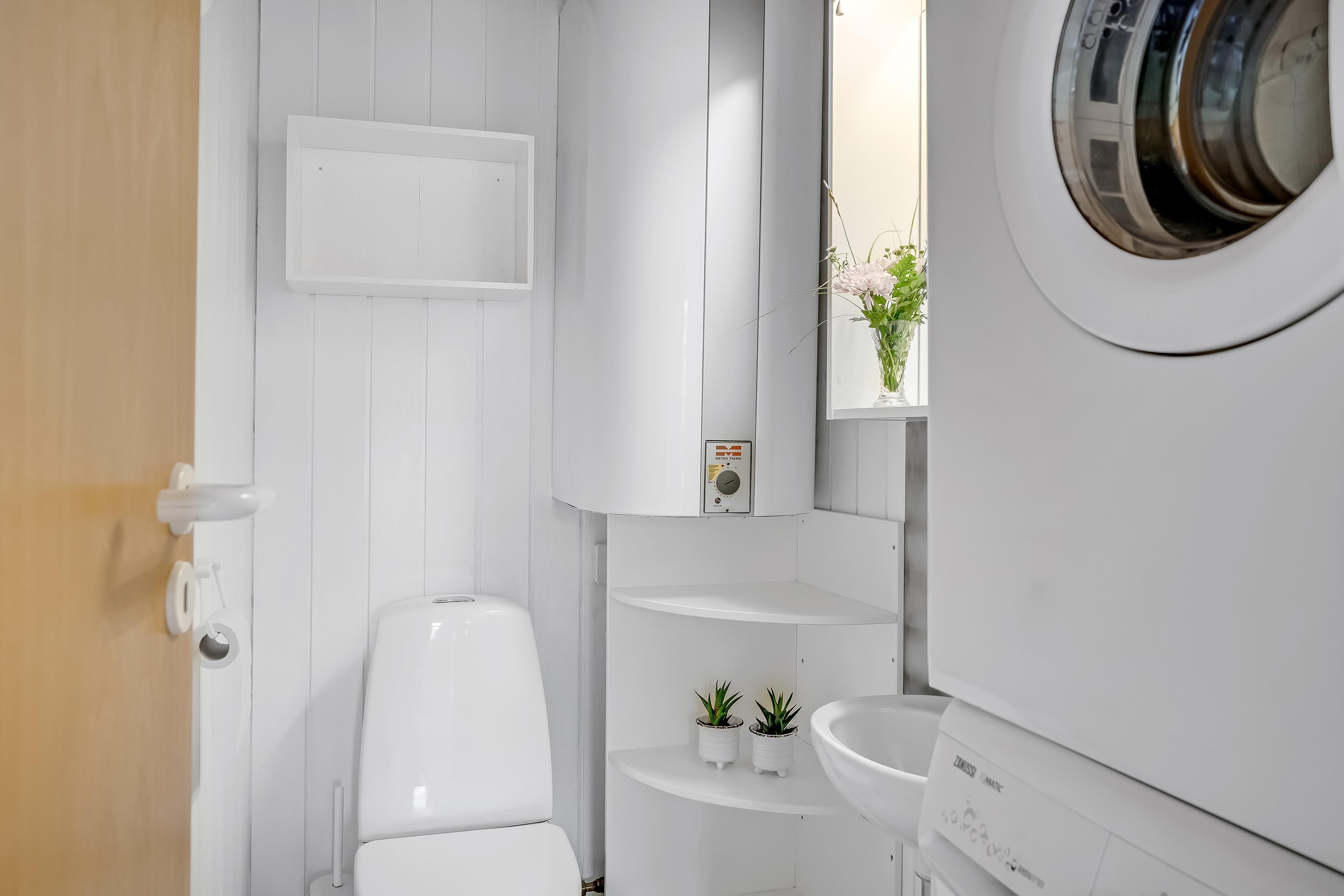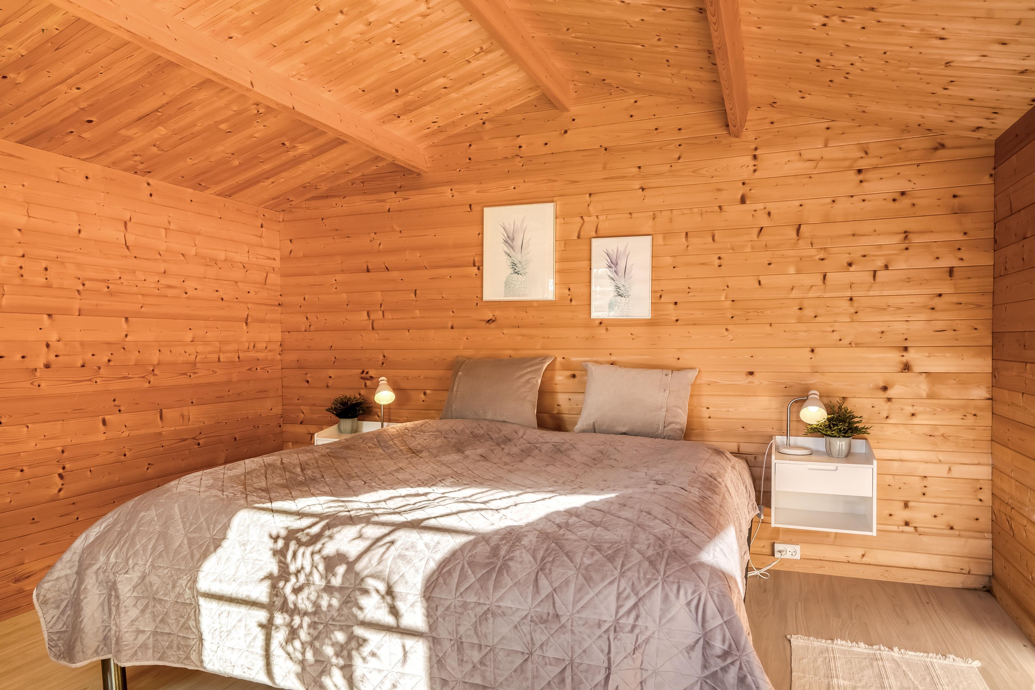 Køkkenet er fuldt udstyret med køleskab, induktionskogeplader, varmluftovn, mikrobølgeovn og opvaskemaskine, så I har alt, hvad I behøver for at tilberede lækre måltider. Badeværelset er moderne og har gulvvarme samt bruseniche, og der er desuden et ekstra gæstetoilet. Efter en lang dag med udflugter kan I nyde afslapning i den indendørs spa til to personer eller tage en dukkert i det udendørs vildmarkskar, som har plads til seks personer.