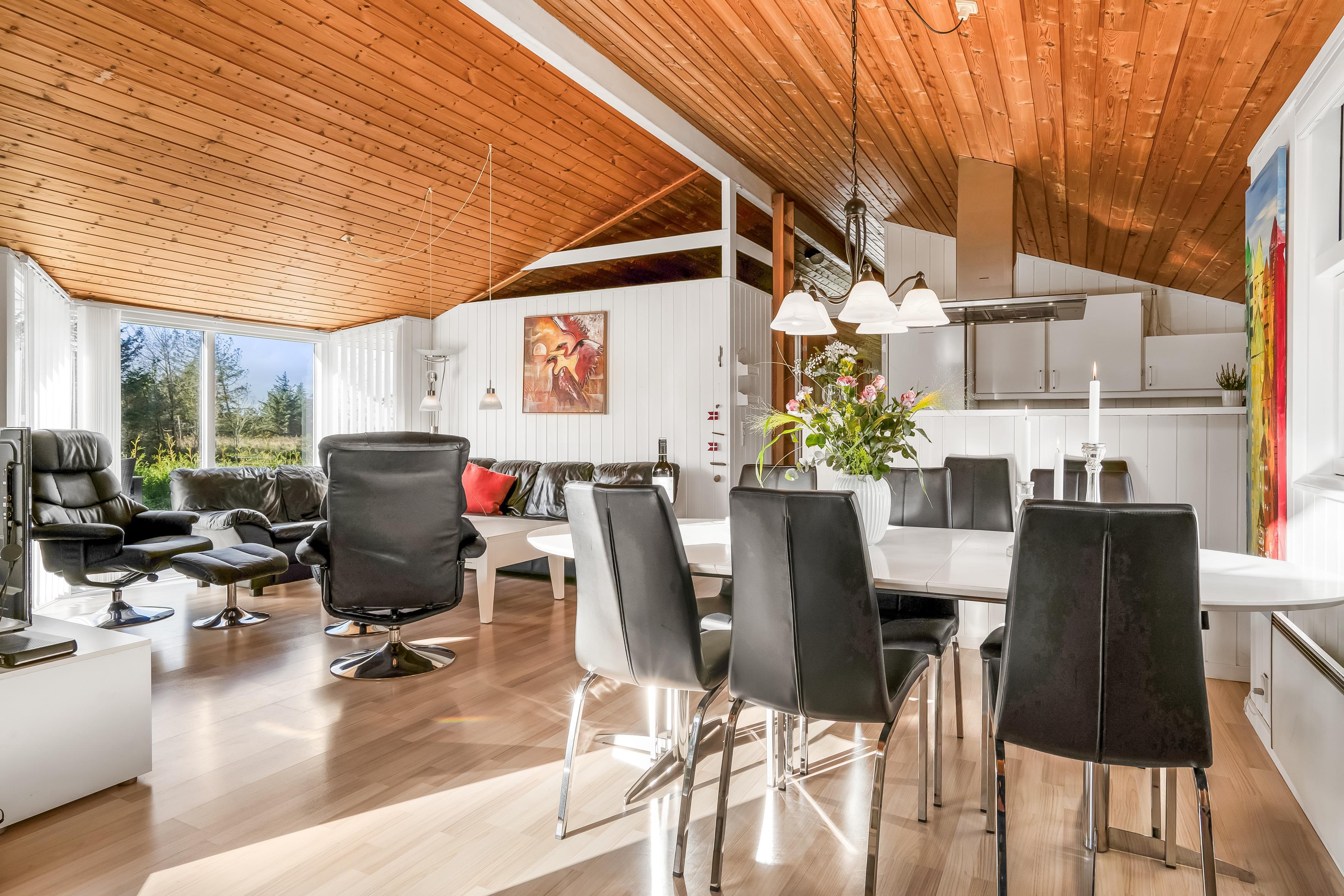 Sommerhuset har plads til 8 personer samt et lille barn (op til 3 år) og byder på 110 kvadratmeter velindrettet bolig. Det blev bygget i 1994 og delvist renoveret i 2021, hvilket giver en moderne og hyggelig atmosfære. Det er ikke tilladt at medbringe husdyr, så her kan I nyde en allergivenlig ferie. Huset er udstyret med en energivenlig luft til luft varmepumpe, brændeovn, vaskemaskine, tørretumbler og fryser med 35 liters kapacitet. Til de små er der en barnestol, så alle kan føle sig hjemme.