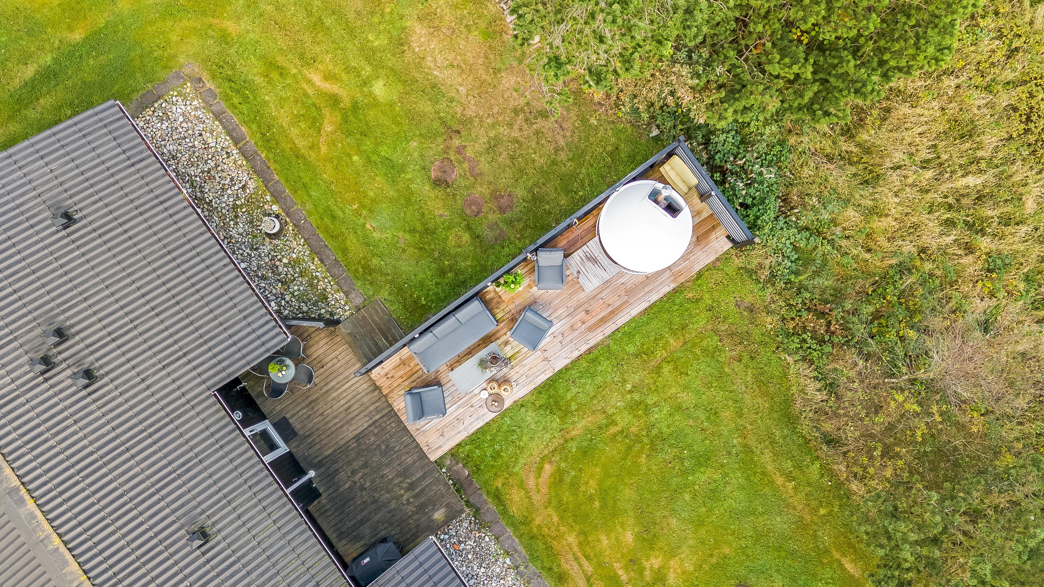 Den store grund har et rigt udvalg af faciliteter til udendørs leg, herunder gynge, sandkasse, legehus, trampolin, legetårn og grill. Der er også en 100 kvadratmeter stor terrasse samt en 12 kvadratmeter overdækket terrasse, så I kan nyde måltider og afslapning i både sol og skygge. Der er desuden installeret opladning til elbil (CEE stik med 11 kW ladeeffekt), og parkering er muligt lige ved huset.