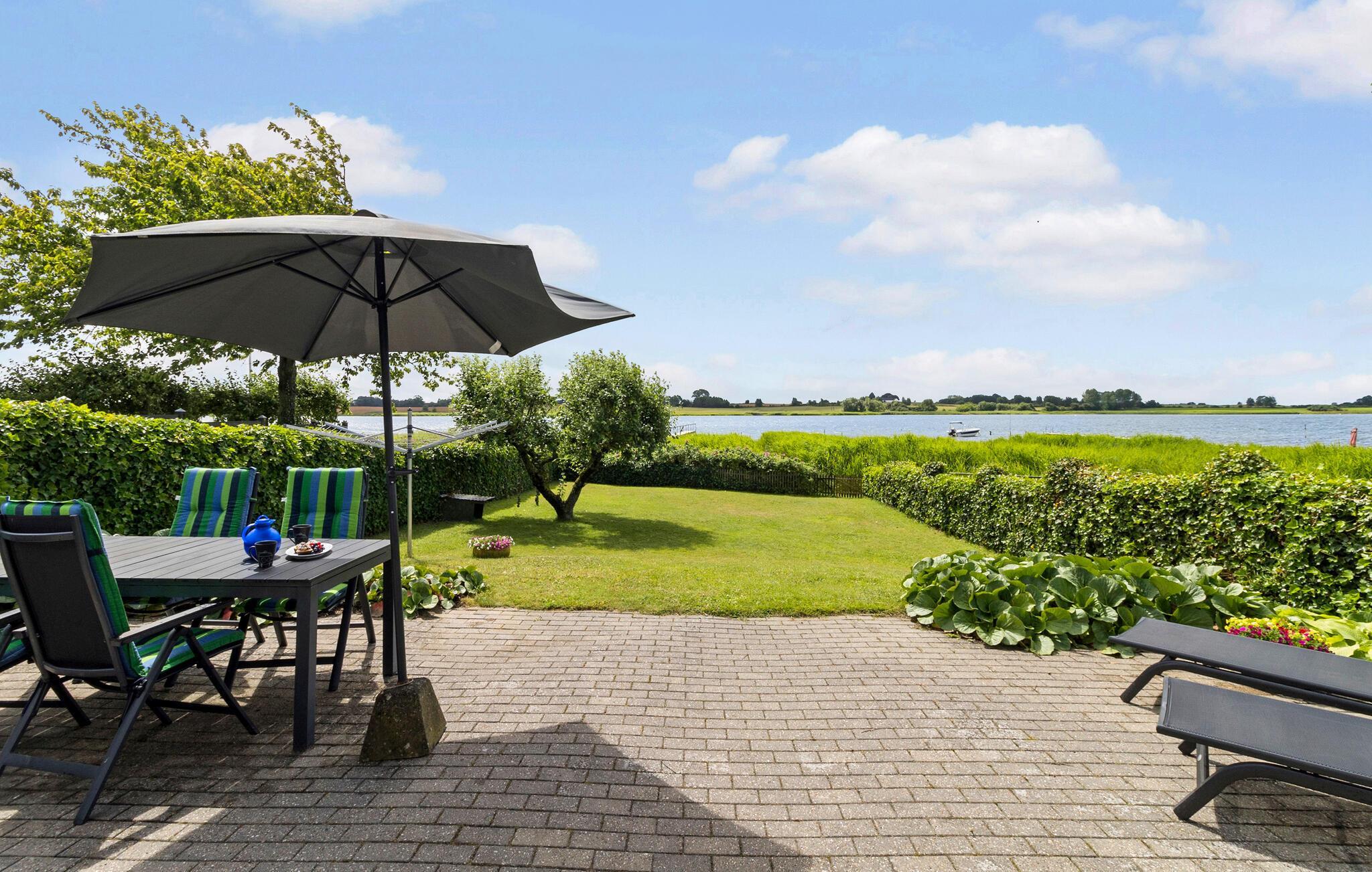 Til huset hører en dejlig terrasse og en have, hvor I kan dase i solen og lade børnene spæne rundt med en bold mellem fødderne. Haven går direkte ned til fjorden, hvor der er anløbsbro om sommeren, og hvor friske dyp i baljen kommer til at gå hånd i hånd med fornøjelige fisketure.