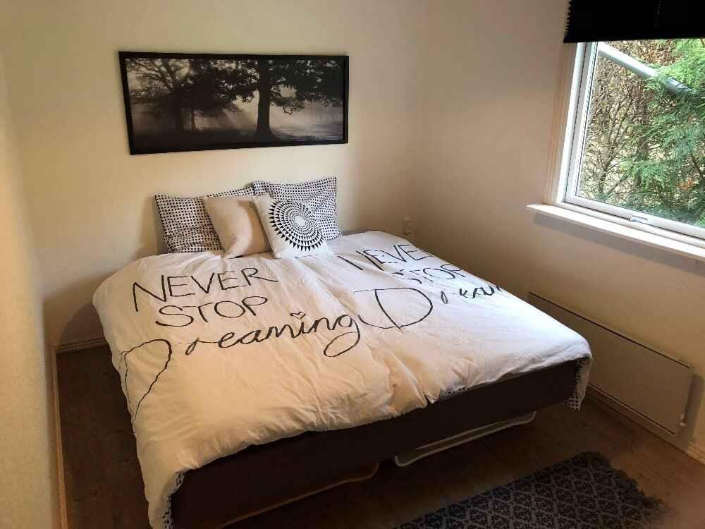 Hold ferie i et børnevenligt sommerhus på 64 m² med 2 soveværelser og 5 sovepladser – perfekt til familien eller et par med børn. Her er også 2 hunde velkommen, og I får en stor, helt lukket og privat grund på 1600 m², omgivet af træer, med masser af plads til leg og udeliv. Som gæster har I fri adgang til badeland i Oksbøl, og huset er praktisk indrettet til en nem ferie. Vand er inkluderet i lejen, og hurtig bredbånd samt en ny varmepumpe sørger for et behageligt indeklima året rundt. Køkkenet er udstyret med opvaskemaskine, ovn, emhætte, køleskab, lille fryser, mikroovn, kaffemaskine og elkedel. Spisepladsen gør det let at samle alle til morgenmad og hyggelige måltider efter dagens oplevelser. I stuen kan I slappe af i en 3-personers sofa, en 2-personers sofa og én lænestol, tænde op i brændeovnen og streame på TV (Chromecast kan medbringes). Trådløst internet gør det nemt at være online, hvis det ønskes. Badeværelset har bruser, gulvvarme, puslehynde, vaskemaskine og tørretumbler. Derudover er der højstol, weekendseng og både drenge- og pigelegetøj, så I kan rejse lidt lettere. Udendørs venter legehus, sandkasse, gynger, rutsjebane og 2 fodboldmål. Terrassen har spisebord, loungemøbler, solsejl, 2 solvogne og Weber kuglegrill – klar til afslappede feriedage i rolige og private omgivelser. Området i Jegum Ferieland er ideelt til børnefamilier med stisystemer og grønne områder, der indbyder til gå- og cykelture. I er tæt på Oksbøl med badeland, aktiviteter og indkøb. Der er desuden to strande i nærheden, hvor det er muligt at køre helt ned på stranden med bil – Børsmose Strand ligger kun 14 km væk, og Vejers Strand ligger 18 km fra huset. Vesterhavet, skov og natur giver rig mulighed for oplevelser året rundt.