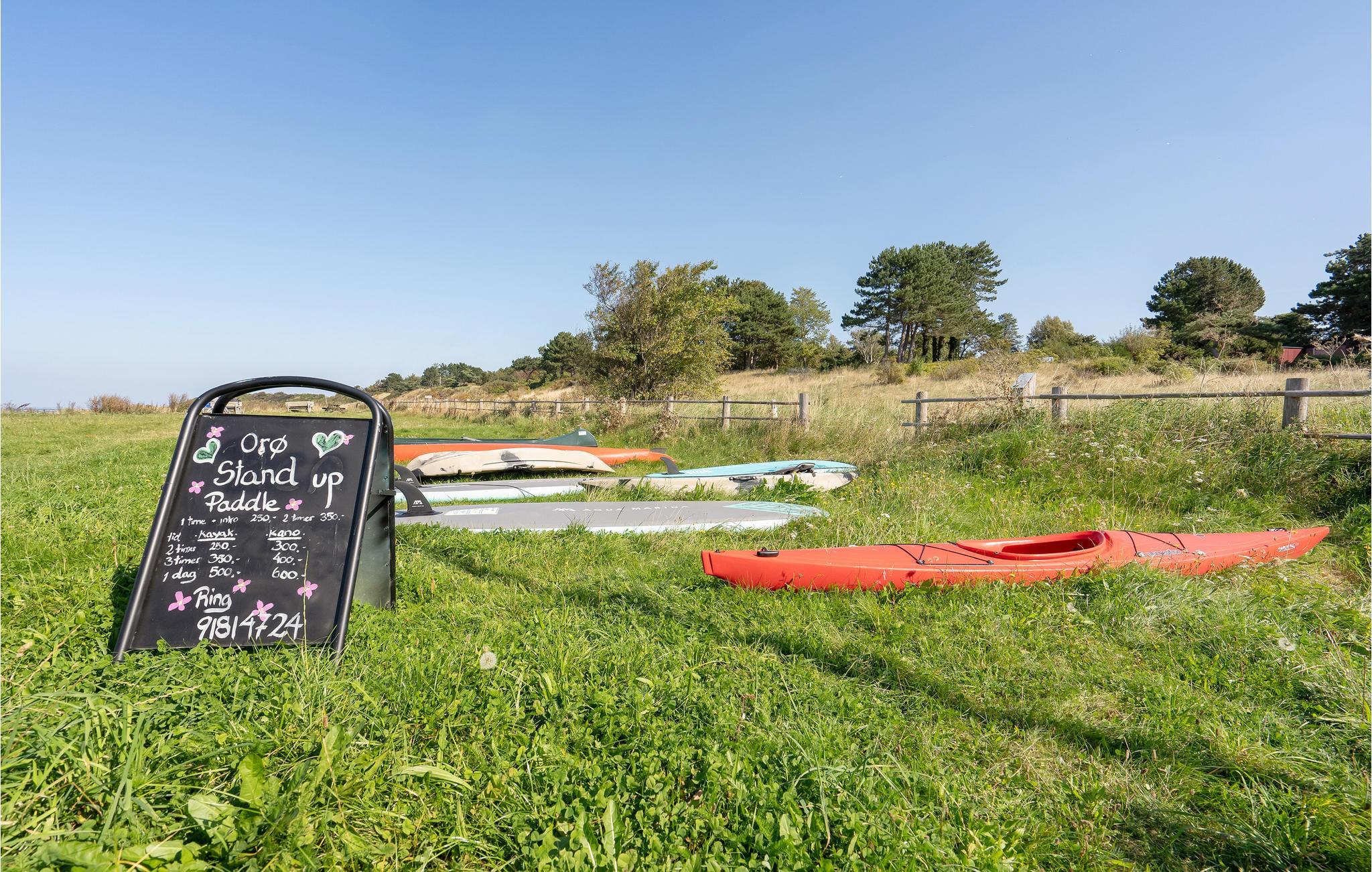 Fra sommerhuset kommer I hurtigt til øens kyst, hvor I kan bade eller ro SUP. Mange naturoplevelser i smukke omgivelser venter jer lige uden for døren.