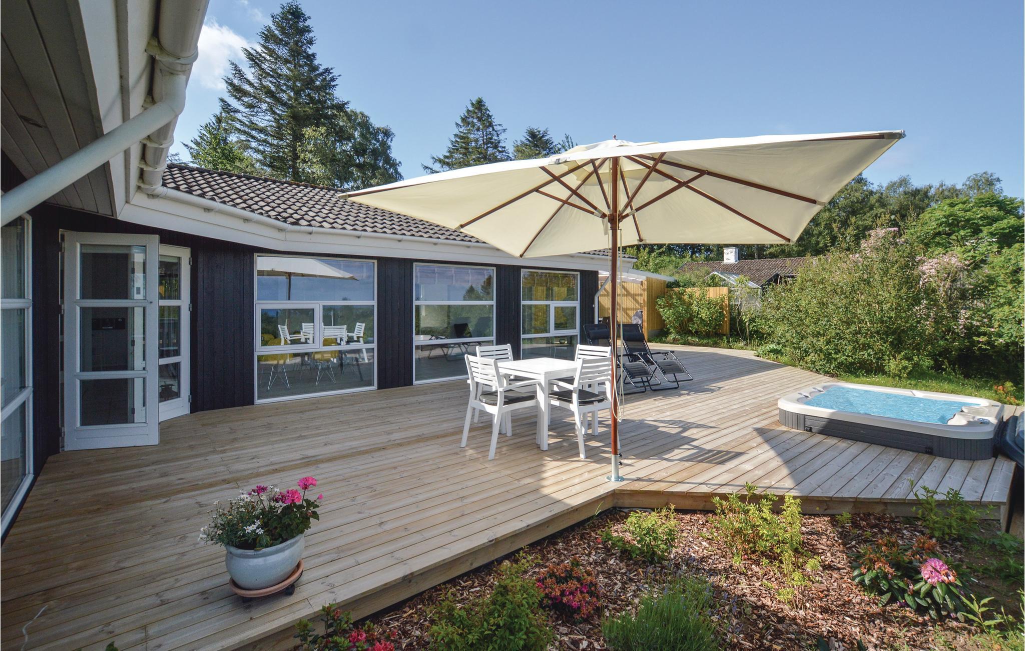 Nyd panoramaudsigt og afslapning i spabadet på dette skønne feriehus i Veddinge Bakker.