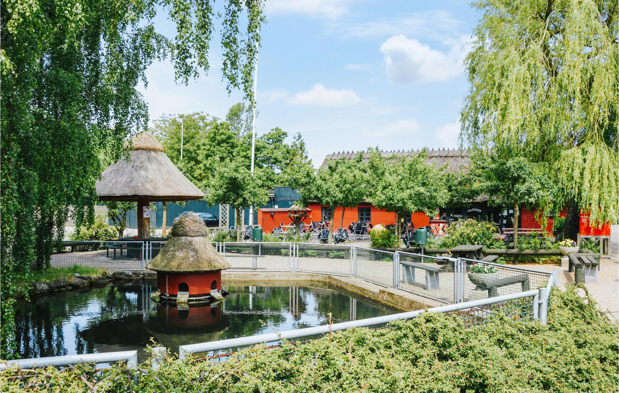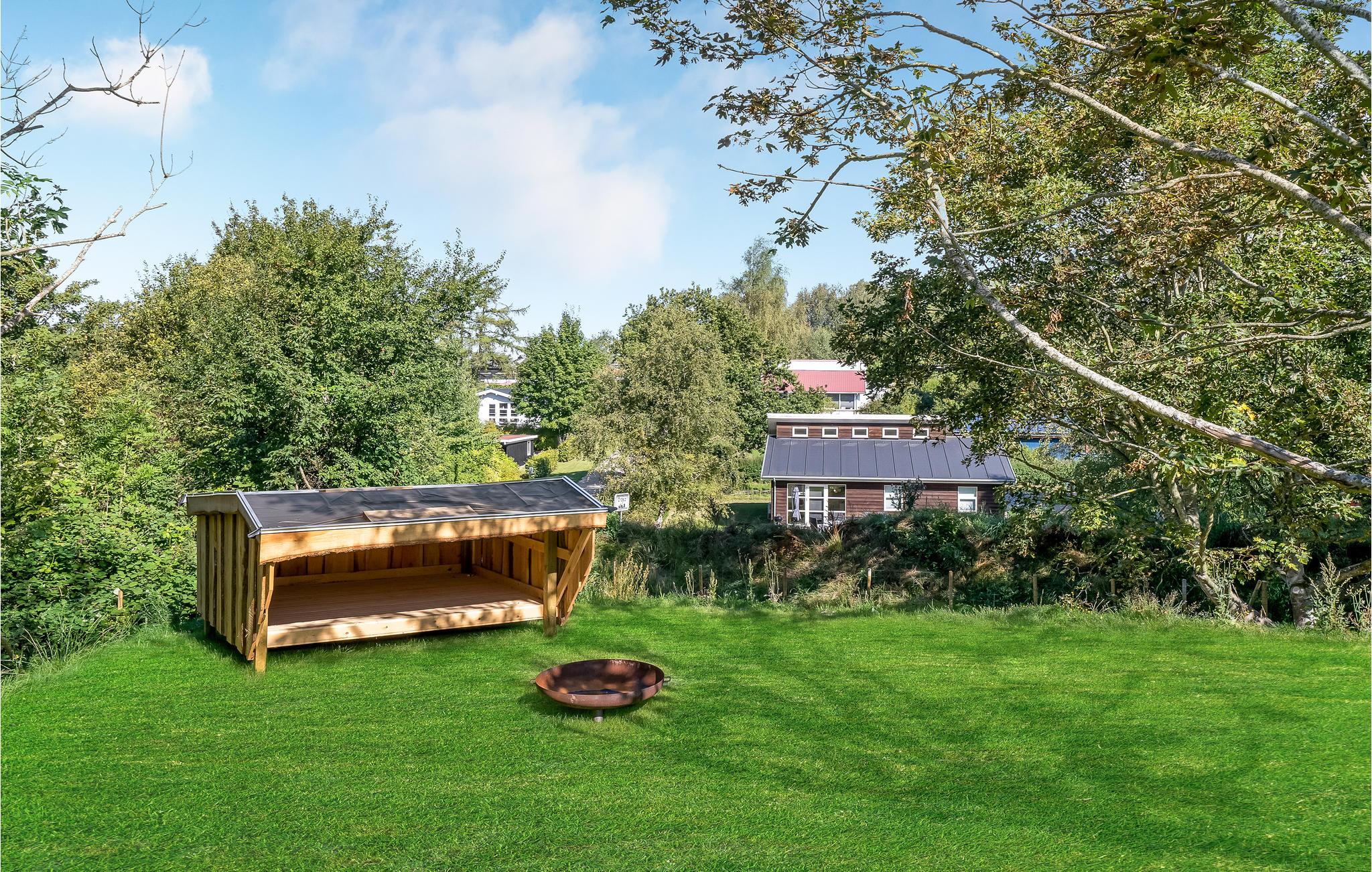 I haven er der også tænkt på børnene. Her er trampolin (benyttes under eget ansvar), sandkasse samt gynge. Udendørs er der desuden grill og en ladestander (type 2-stik, 22 KW) til el-bil. Der er også et shelter til at overnatte i det fri.