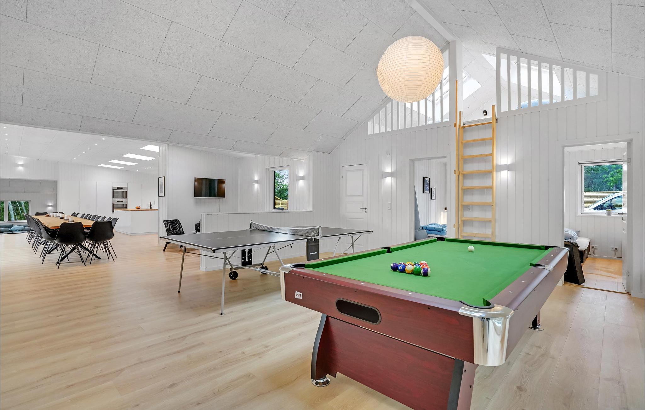 Her er også mulighed for familiedyster i aktivitetsrummet, hvor I finder både poolbord samt bordtennis. Grundet de store vinduespartier, som kan skydes til side, går rummet nærmest i ét med terrassen og naturen.