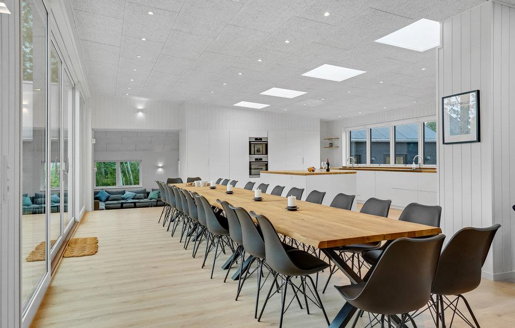 Huset egner sig til den store familie, men også som møde- eller kursussted for firmaer. Her er flere store fladskærms-TV’er og whiteboardtavle. Huset rummer hele otte soveværelser samt to hemse, hvilket helt sikkert vil være et hit hos børnene.