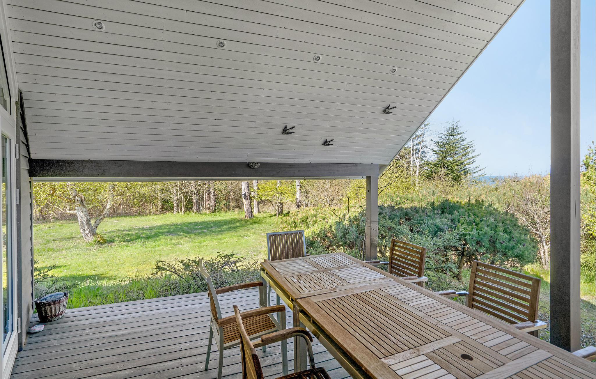 Huset er vintersikret, hvilket gør det perfekt til en fantastisk ferie hele året rundt. Om sommeren kan I nyde solen, den friske luft og jeres feriemåltider på terrasserne, mens fuglene synger omkring jer. Få skridt fører jer til vandet, så det er dejligt nemt at tage en forfriskende dukkert på varme sommerdage. Og når I kommer hjem fra en strandtur, kan I skylle jer af under den store udendørsbruser.