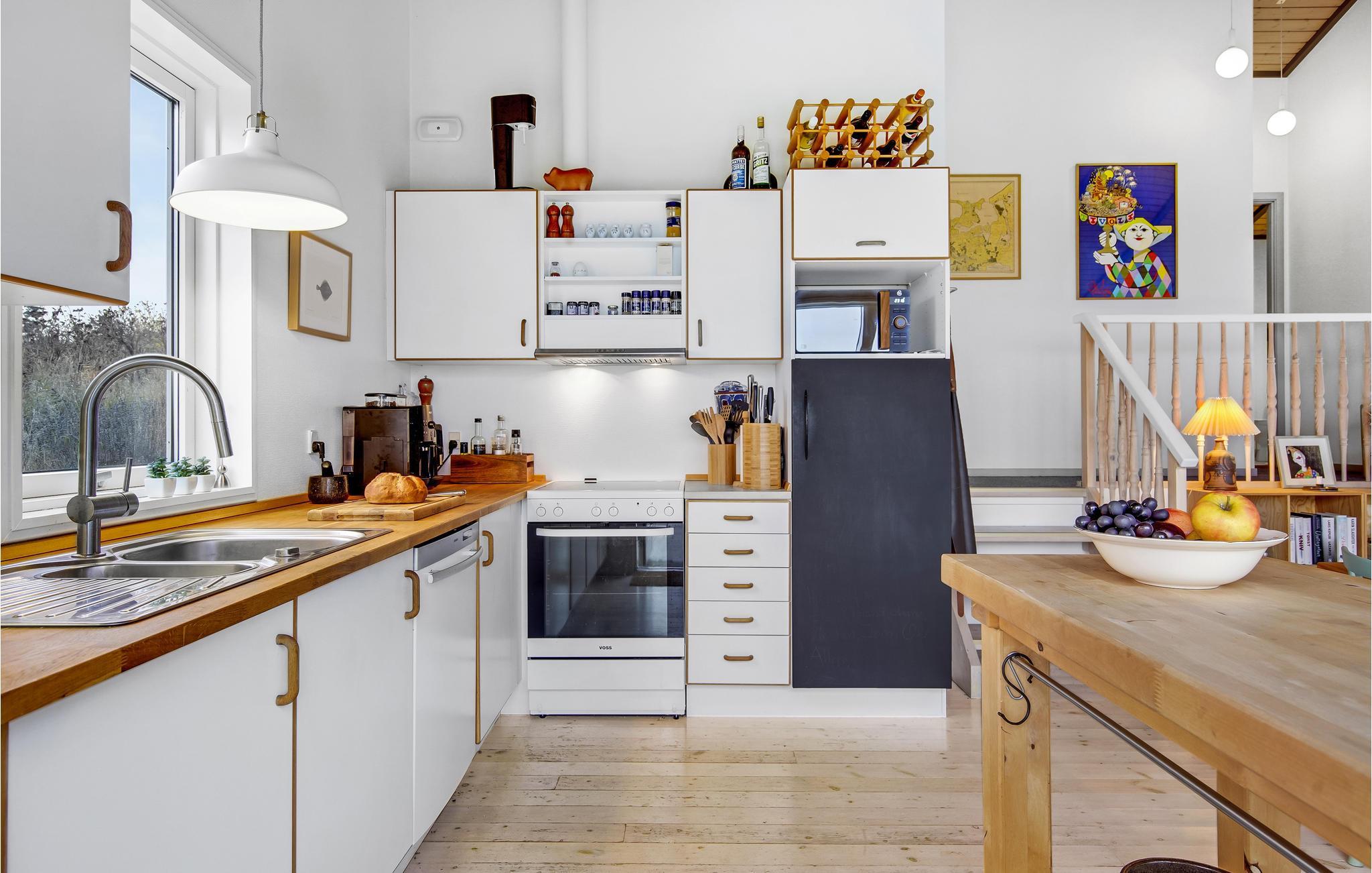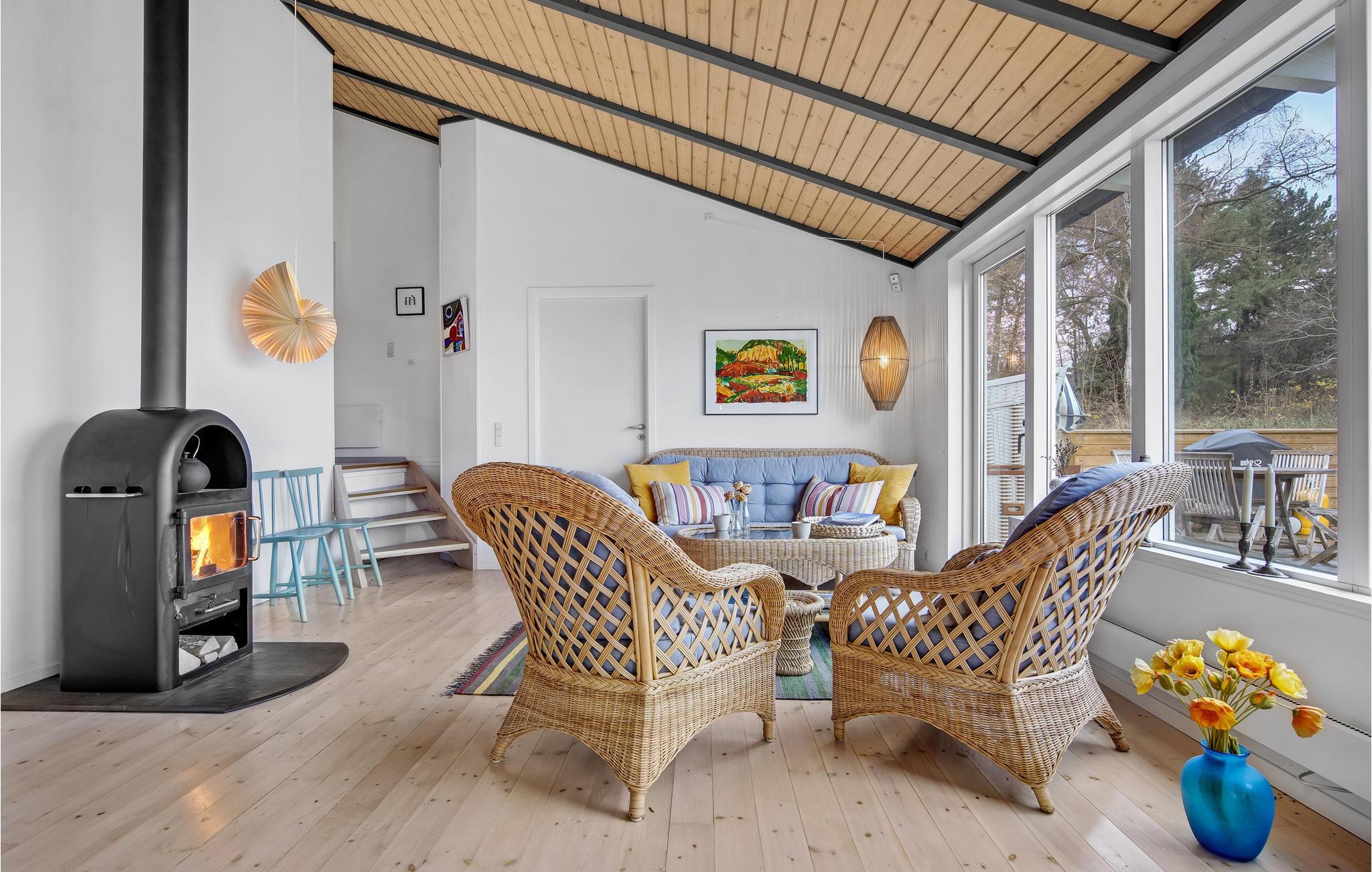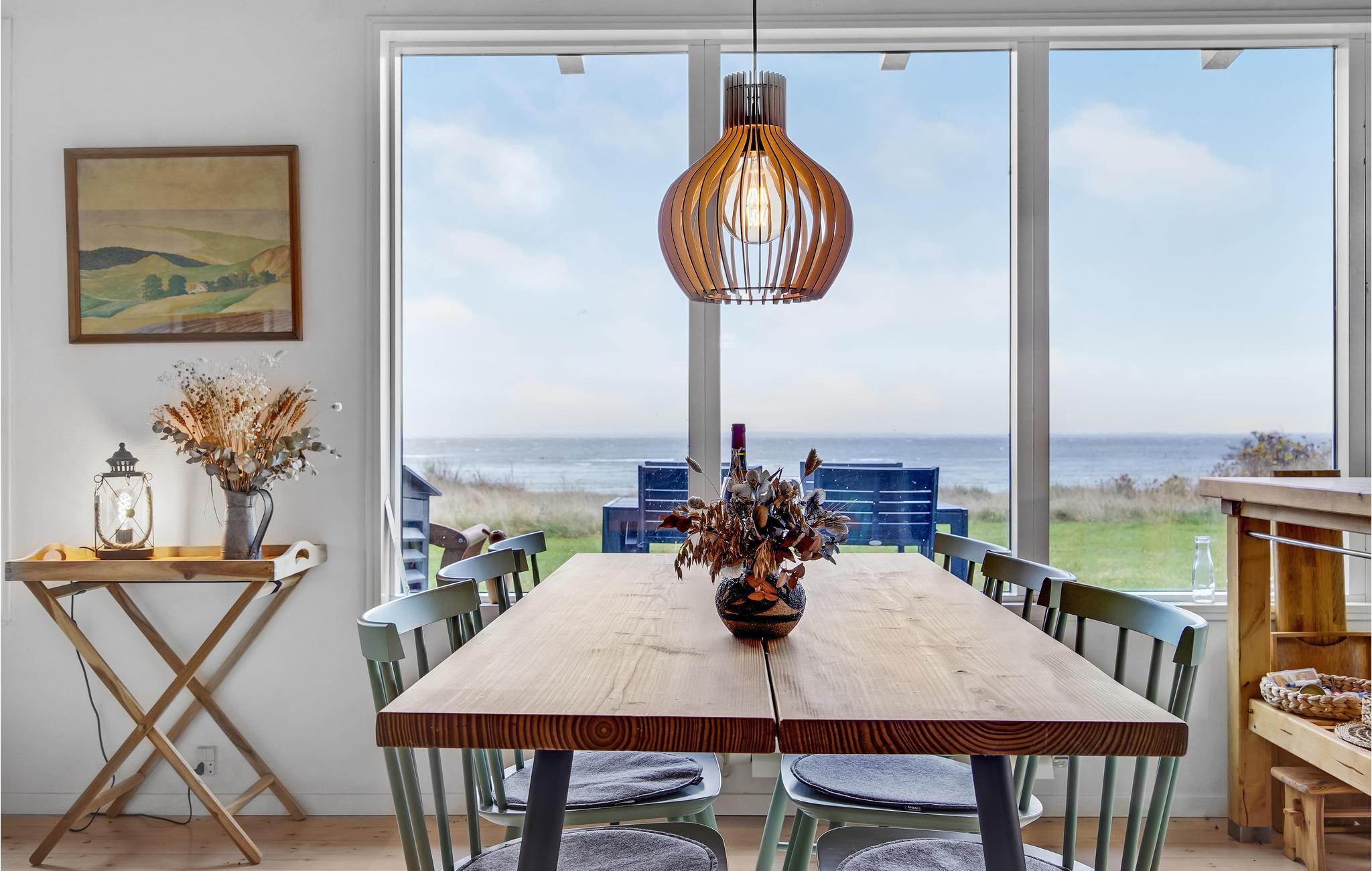Dette lyse og smagfuldt indrettede træhus i skønne omgivelser nær hav og strand indbyder til en herlig ferie uanset årstid. Tilbered lækre feriemåltider i husets rummelige og veludstyrede køkken og nyd dem derefter på terrassen med havudsigt. Her kan I sole jer og læse en god bog gennem dagen, og senere kan I tænde op i grillen og afslutte en skøn feriedag med en hyggelig grillaften.