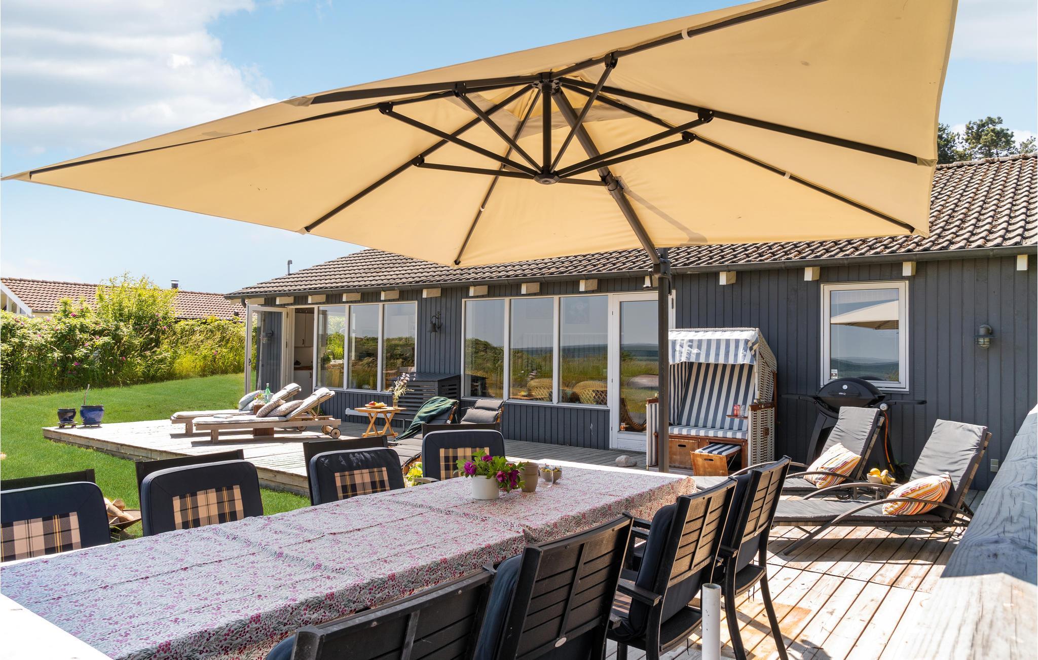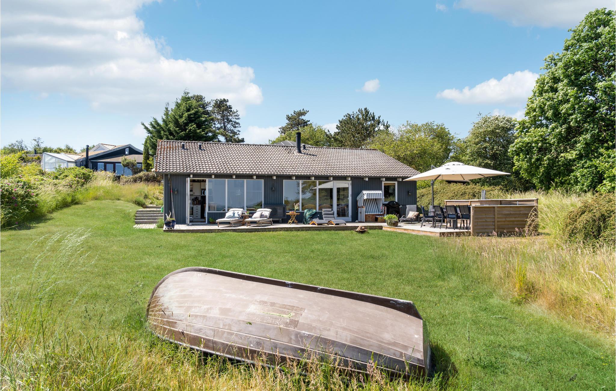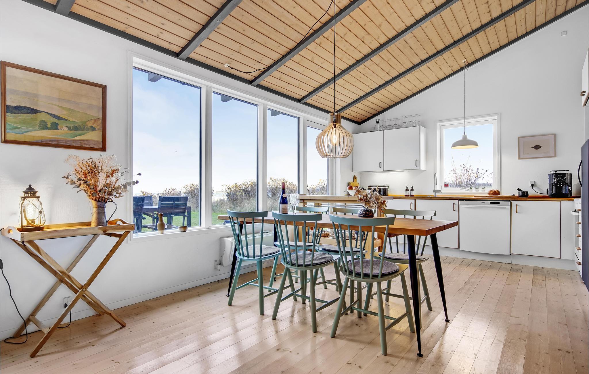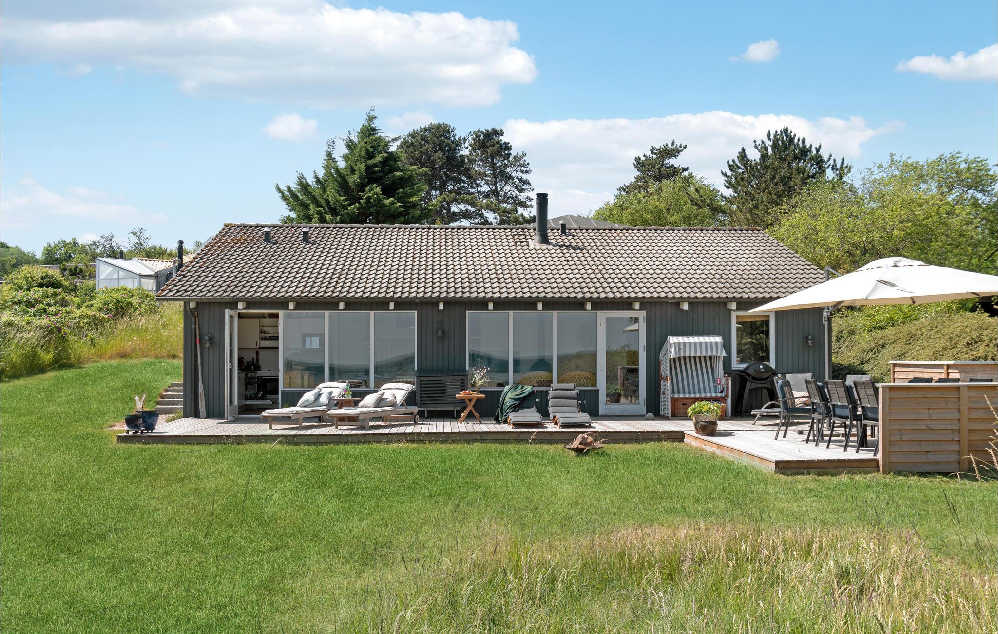 Dette lyse og smagfuldt indrettede træhus i skønne omgivelser nær hav og strand indbyder til en herlig ferie uanset årstid. Tilbered lækre feriemåltider i husets rummelige og veludstyrede køkken og nyd dem derefter på terrassen med havudsigt. Her kan I sole jer og læse en god bog gennem dagen, og senere kan I tænde op i grillen og afslutte en skøn feriedag med en hyggelig grillaften.