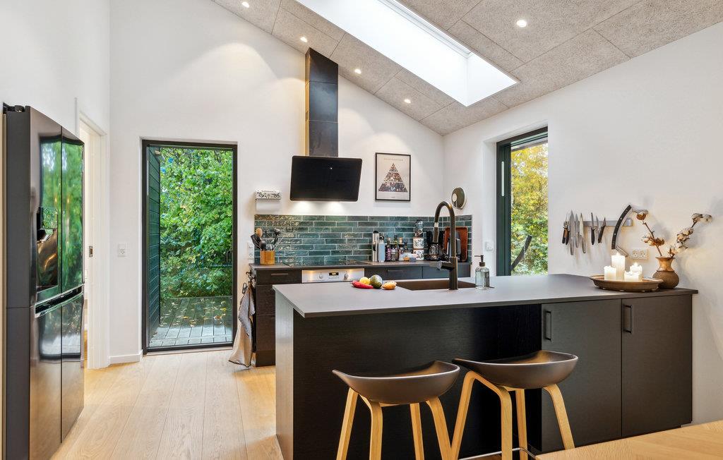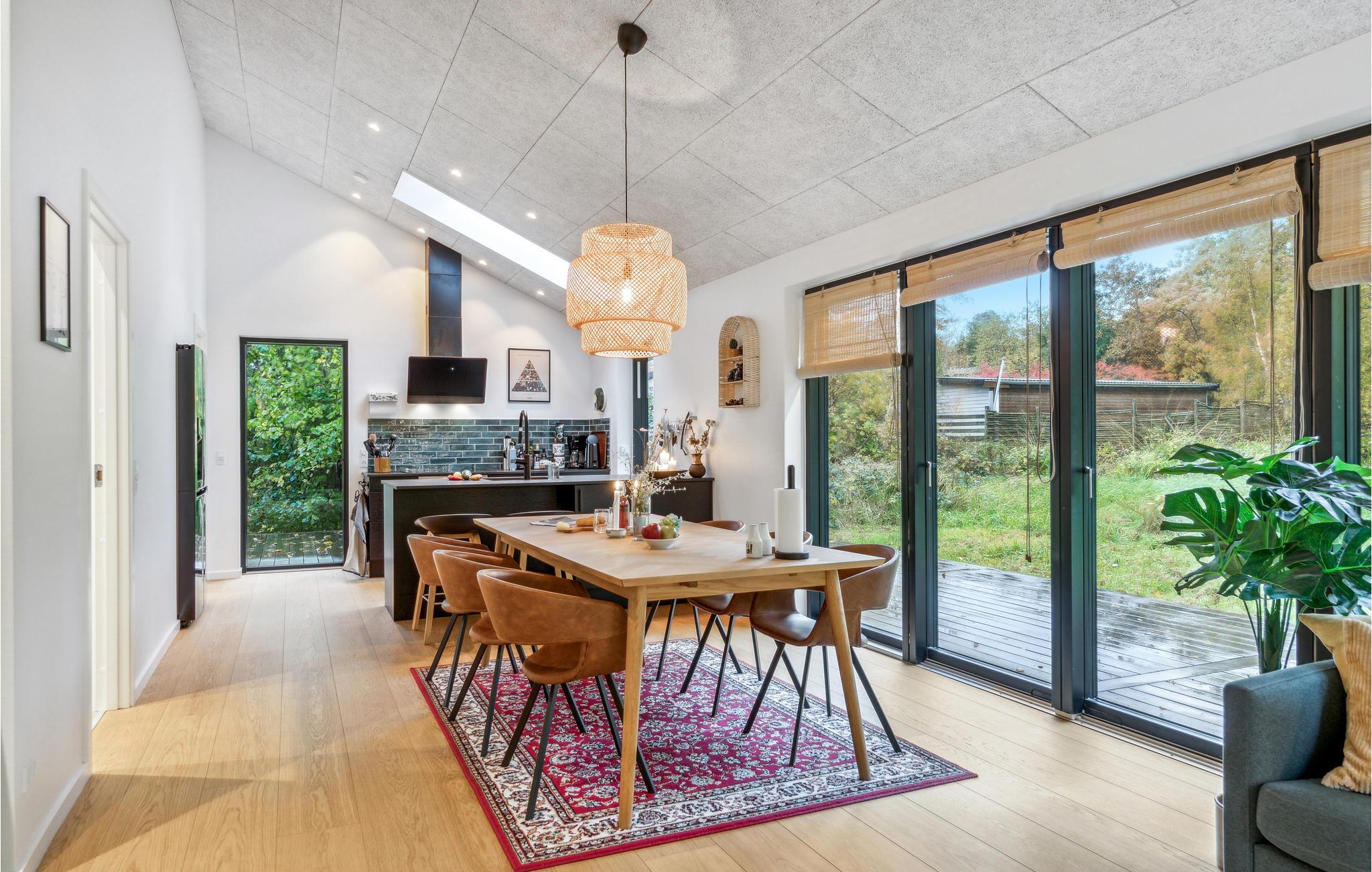 Sæt hverdagen på pause og nyd nogle dejlige dage med familien i Odsherred. Her venter denne skønne bolig, som emmer af flotte designløsninger, komfort, lys og luft. De store vinduespartier får ude og inde til at smelte sammen og skaber dejlige rammer til dagens måltider og små afslapningsstunder.
