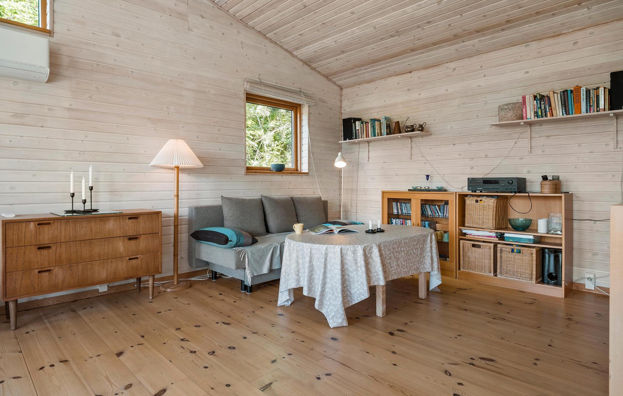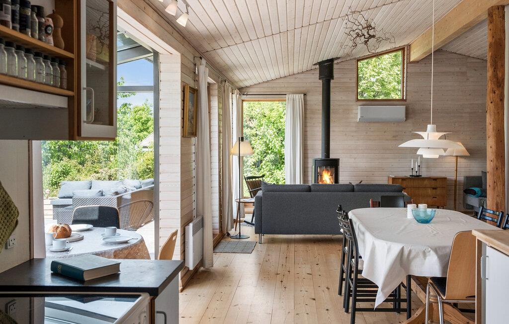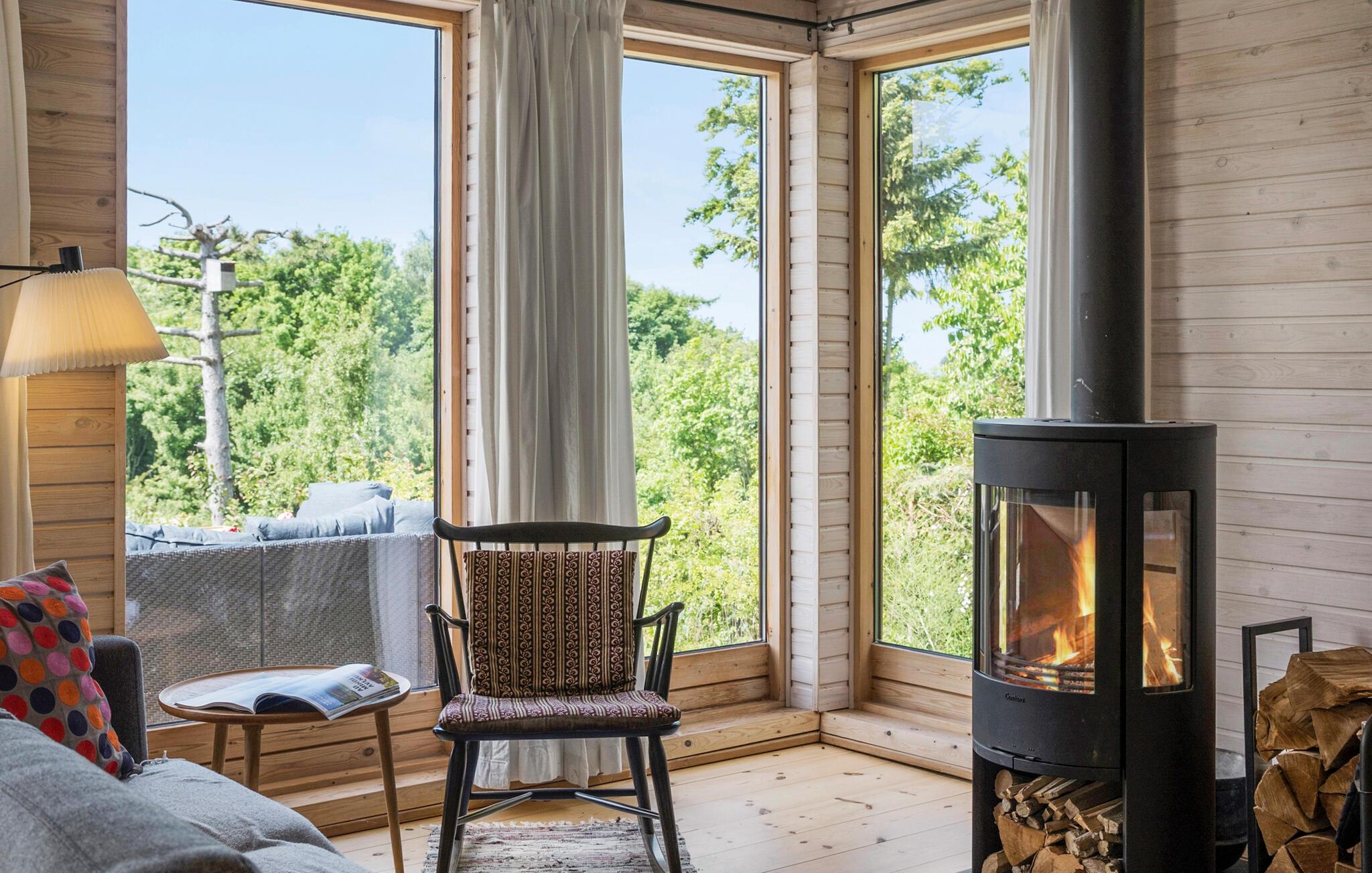 I denne hyggelige bolig får I en fantastisk base til en afslappende ferie i smuk natur. Huset ligger yderst dejligt på en skråning og byder blandt andet på en skøn udestue, hvorfra udsigten er rigtig dejlig. Indretningen emmer af klassisk sommerferiehygge med de fremtrædende træpaneler i varme farver, og sammen med husets gode faciliteter venter jer en behagelig oase, hvor I kan hvile stængerne efter en aktiv dag. På de lidt køligere aftener kan I gøre det ekstra hyggeligt og fyre op i brændeovnen og fornøje jer med brætspil eller en god film. Hvis I trænger til at svede hverdagens bekymringer ud af kroppen, får I mulighed for netop dette i saunaen.