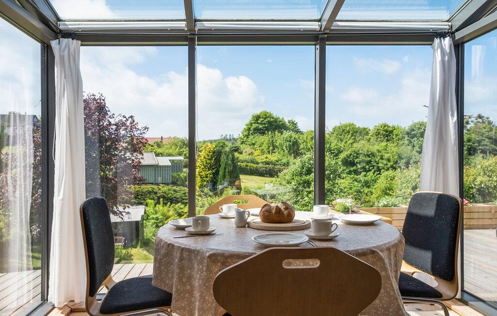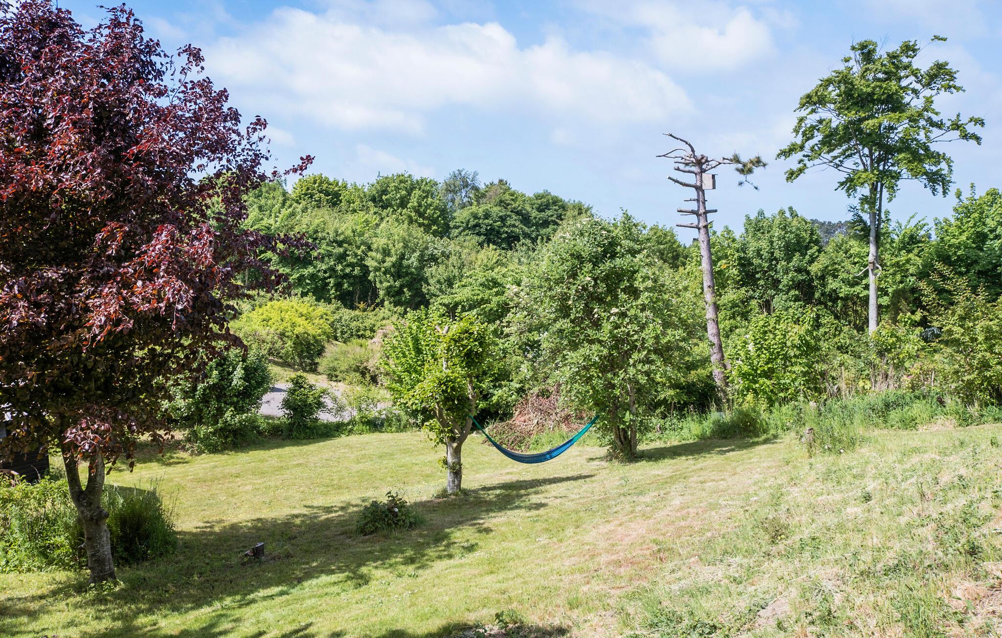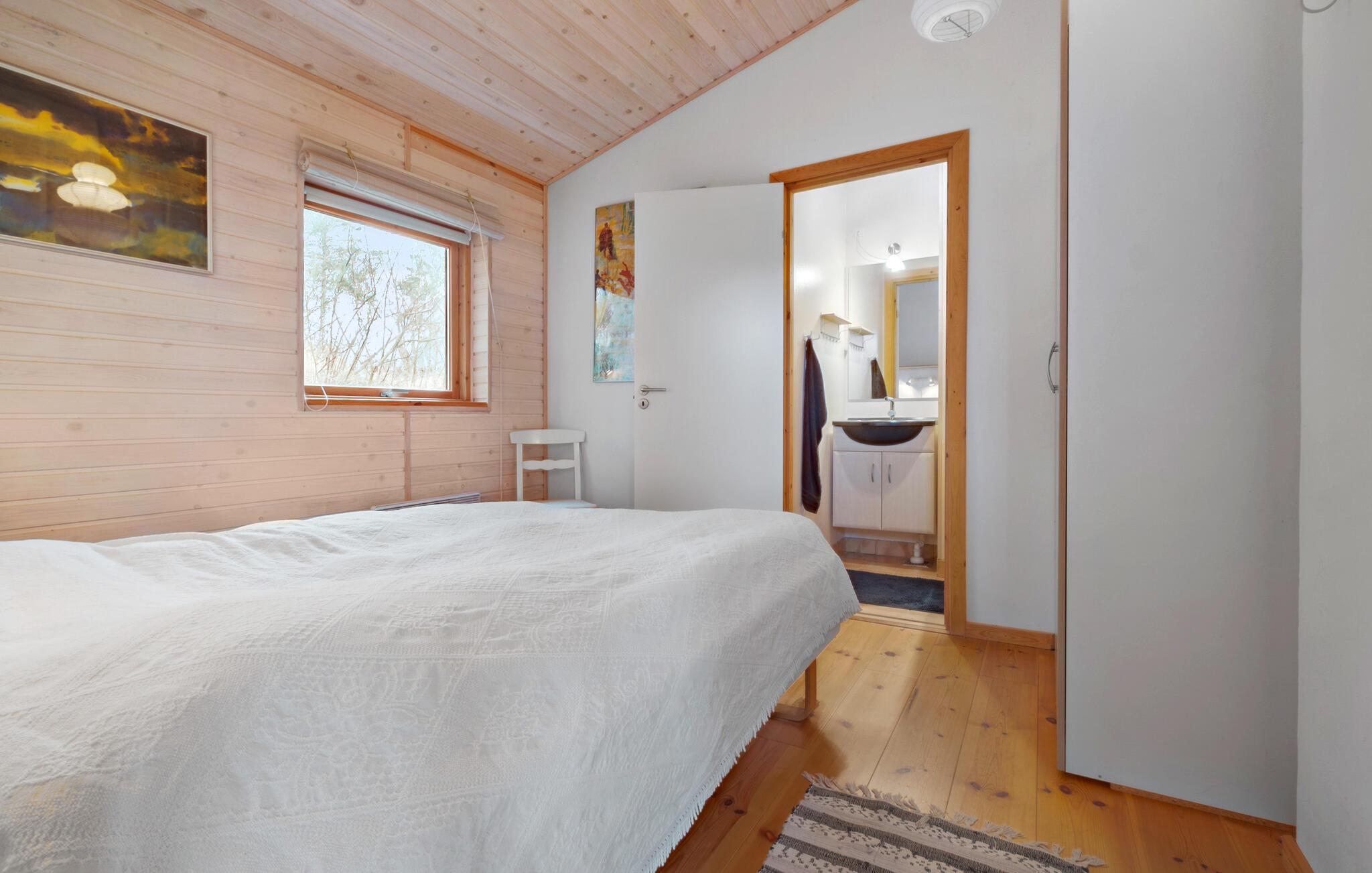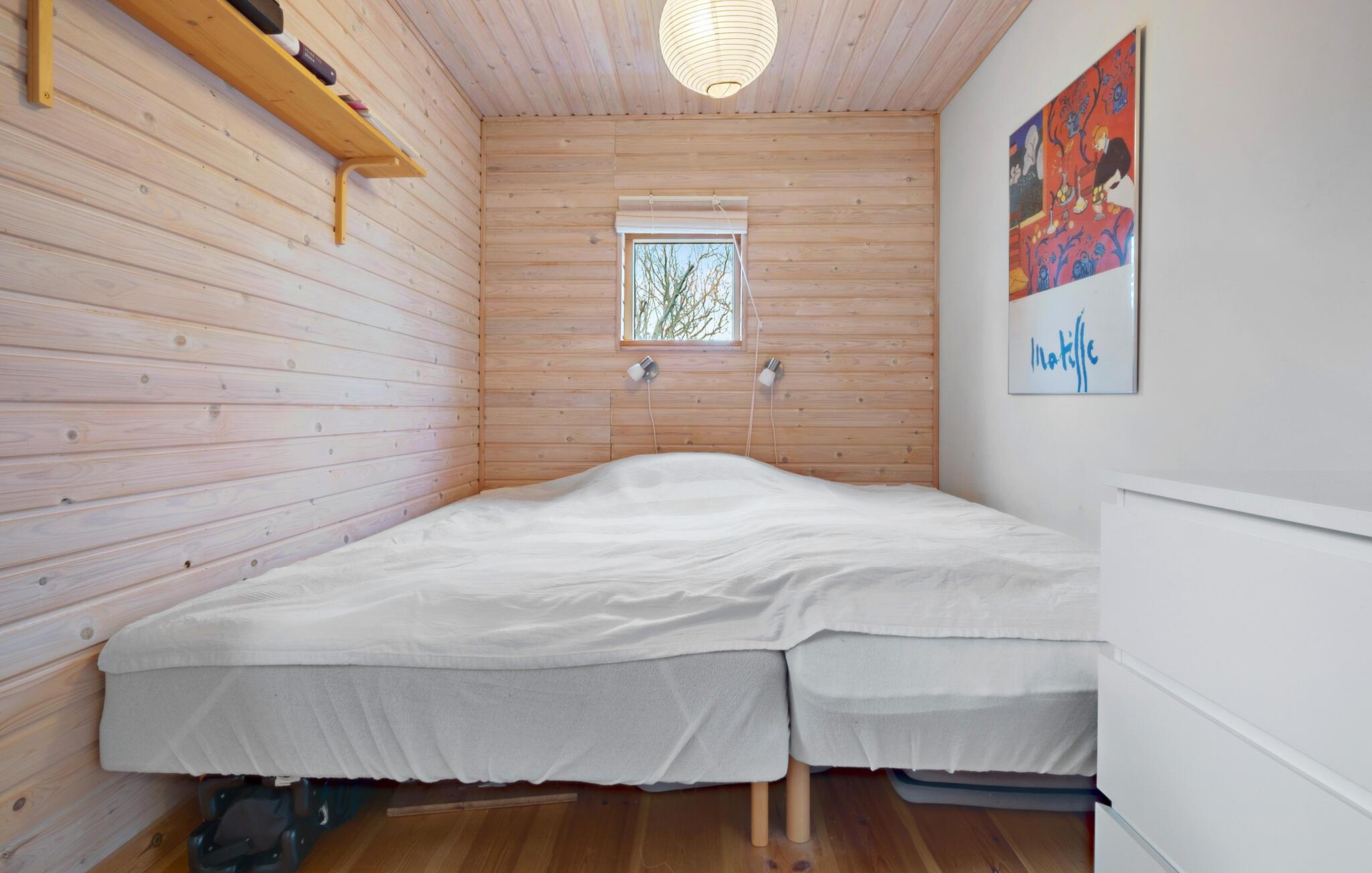 I denne hyggelige bolig får I en fantastisk base til en afslappende ferie i smuk natur. Huset ligger yderst dejligt på en skråning og byder blandt andet på en skøn udestue, hvorfra udsigten er rigtig dejlig. Indretningen emmer af klassisk sommerferiehygge med de fremtrædende træpaneler i varme farver, og sammen med husets gode faciliteter venter jer en behagelig oase, hvor I kan hvile stængerne efter en aktiv dag. På de lidt køligere aftener kan I gøre det ekstra hyggeligt og fyre op i brændeovnen og fornøje jer med brætspil eller en god film. Hvis I trænger til at svede hverdagens bekymringer ud af kroppen, får I mulighed for netop dette i saunaen.