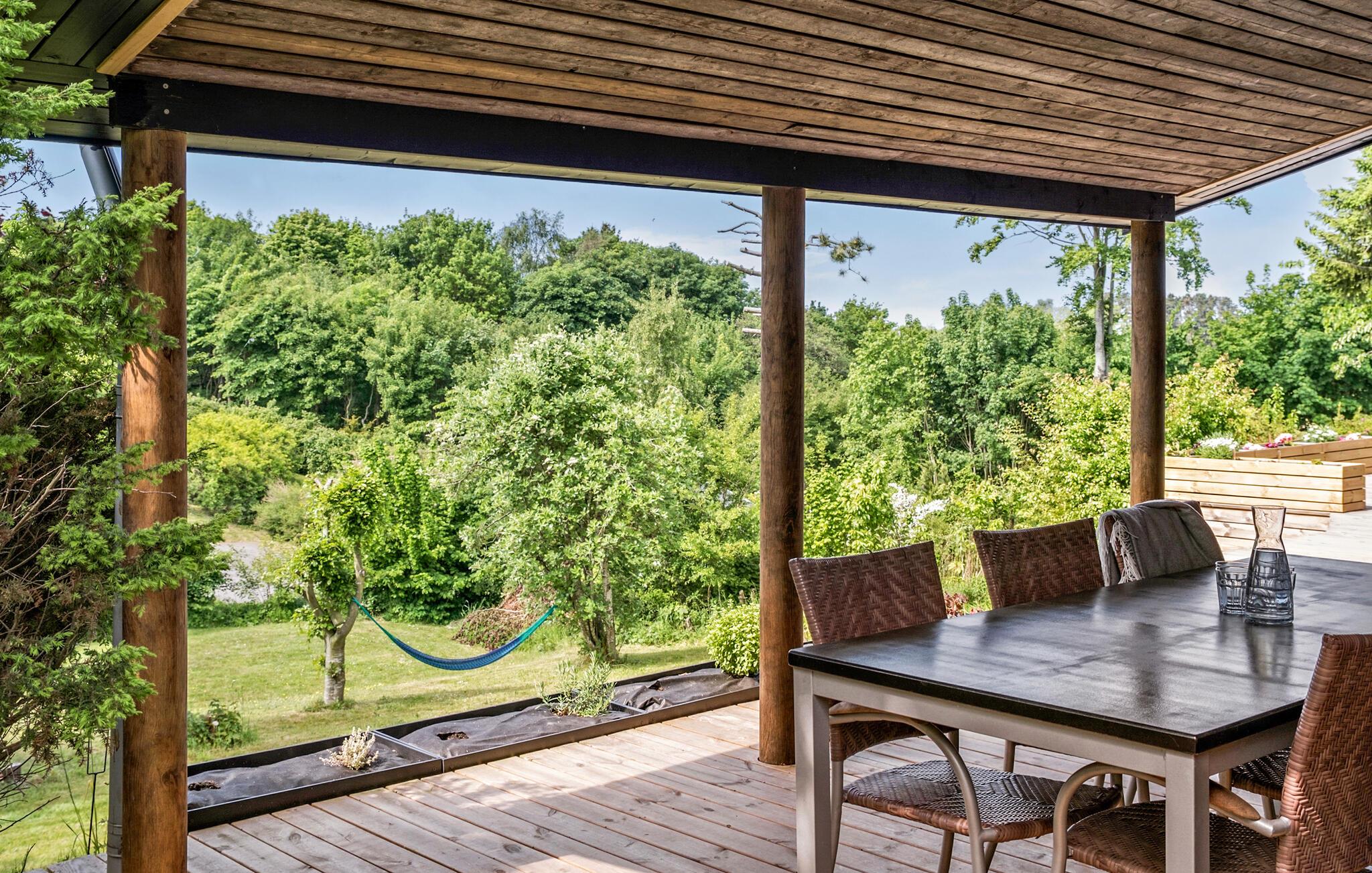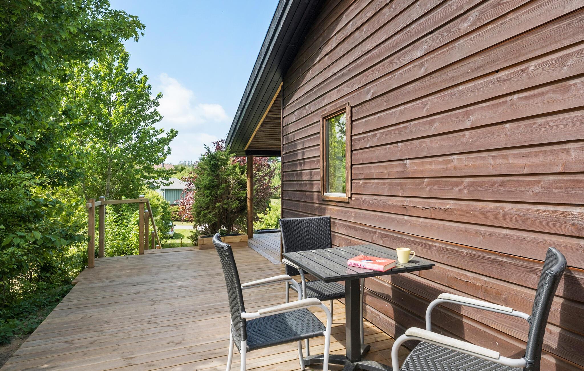 Udenfor lokker træterrassen til mange hyggelige timer med solbadning, morgenkaffen og måske flere måltider i løbet af dagen. På grillen kan I tilberede familiens livretter, mens I lægger planer for de kommende dages udflugter.