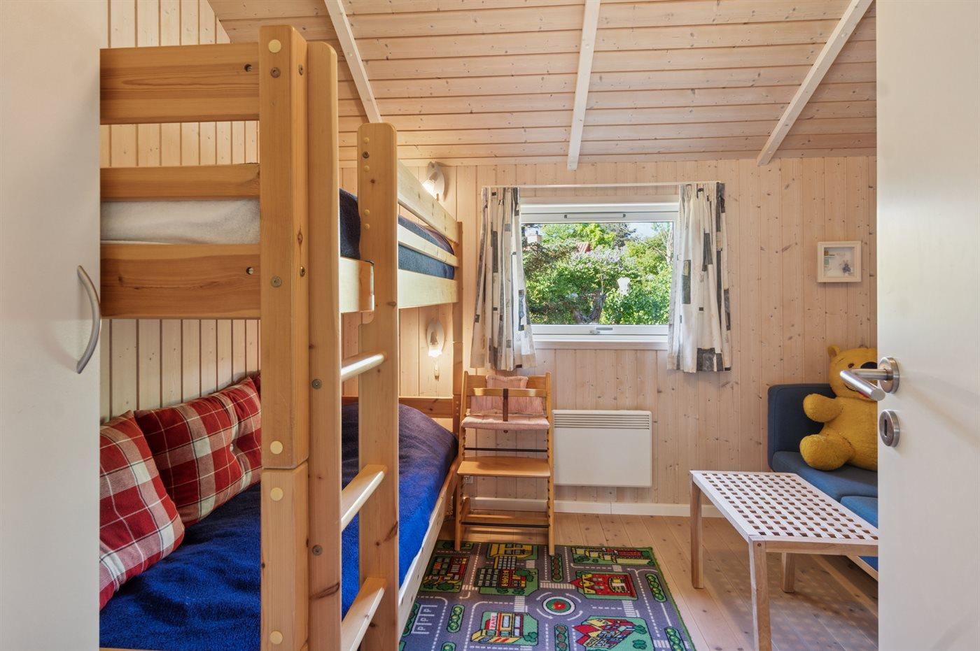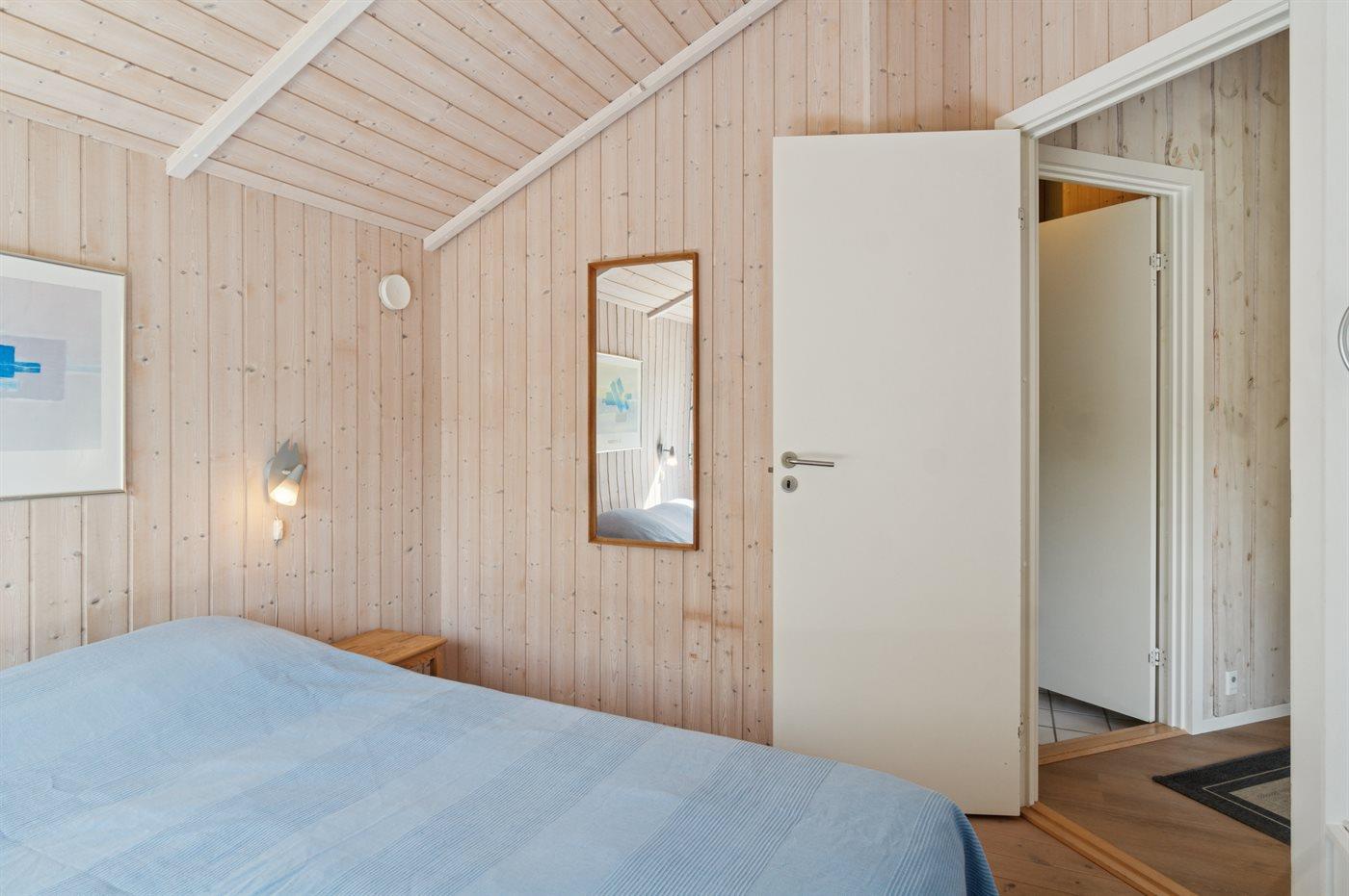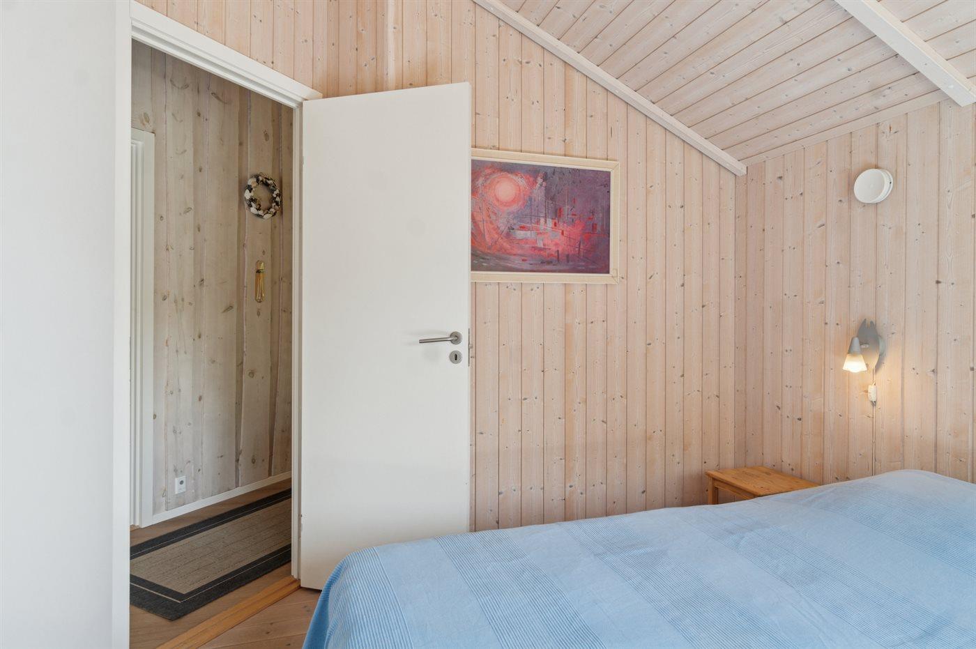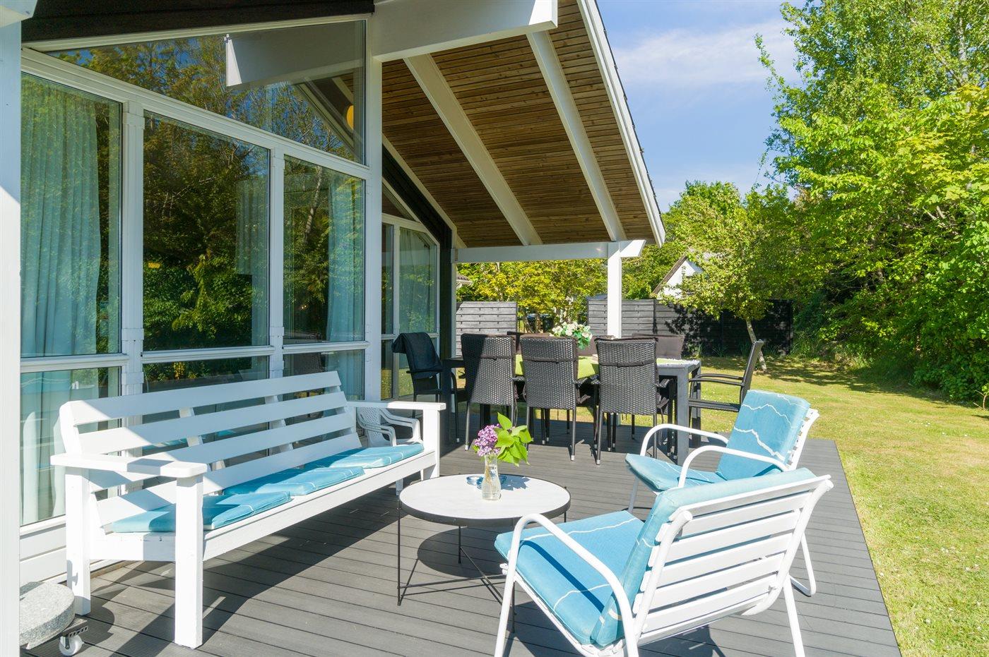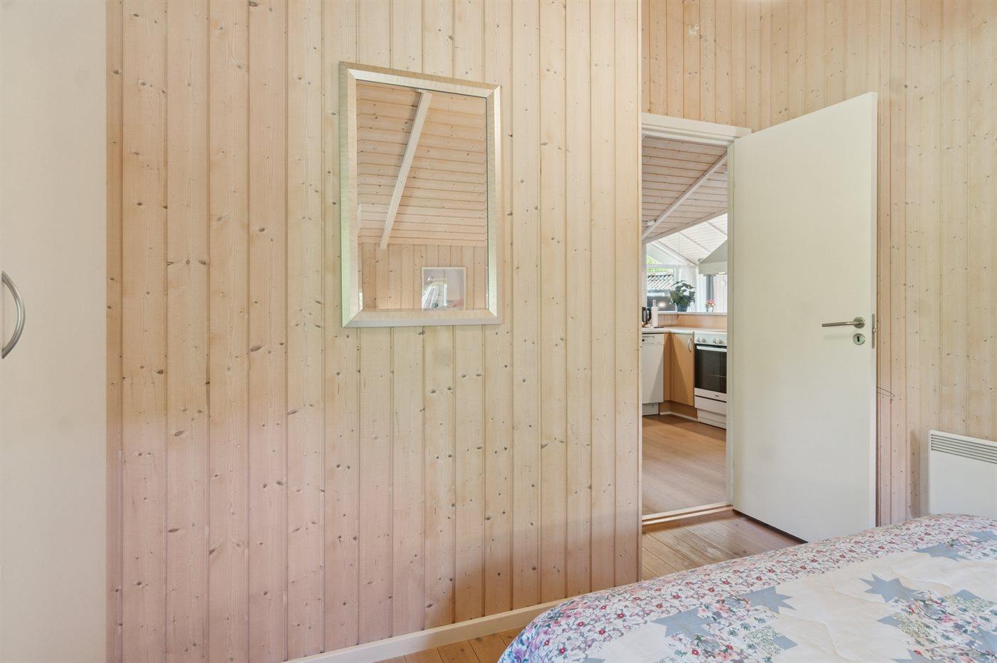 På en naturgrund blot 250 m fra stranden ligger dette dejlige sommerhus i træ med spa og sauna, bygget i 2002. Til huset hører såvel åben som overdækket terrasse med havemøbler. Webergrill står til rådighed. Indvendigt er der lyse trægulve. Huset er indrettet med 2 badeværelser med bruser. Det ene er yderligere udstyret med gulvvarme, 3-pers. spa og sauna. Moderne åbent køkken i forbindelse med stuen med bl.a. fryser, opvaskemaskine, mikrobølgeovn, komfur med keramiske kogeplader og varmluftovn. Lys opholdsstue med brændeovn, TV, Chromecast, DVD-afspiller samt stereoanlæg med CD-afspiller. Der er Ingen TV-kanaler – kun mulighed for streaming. Hvis man har et Viasat-kort derhjemme, kan man tage det med til sommerhuset. Desuden ekstra TV med indbygget DVD-afspiller på børneværelset. Husets 8 sovepladser er fordelt på 4 soverum; 3 med dobbeltseng og 1 med køjeseng. Af yderligere udstyr kan gratis, trådløs internetforbindelse (computer skal medbringes), vaskemaskine samt tørretumbler nævnes og der er installeret en energibesparende varmepumpe. Til de små feriegæster er der barneseng, høj barnestol, gynge, rutchebane og sandkasse.