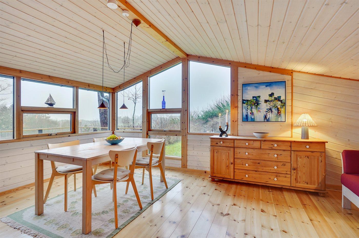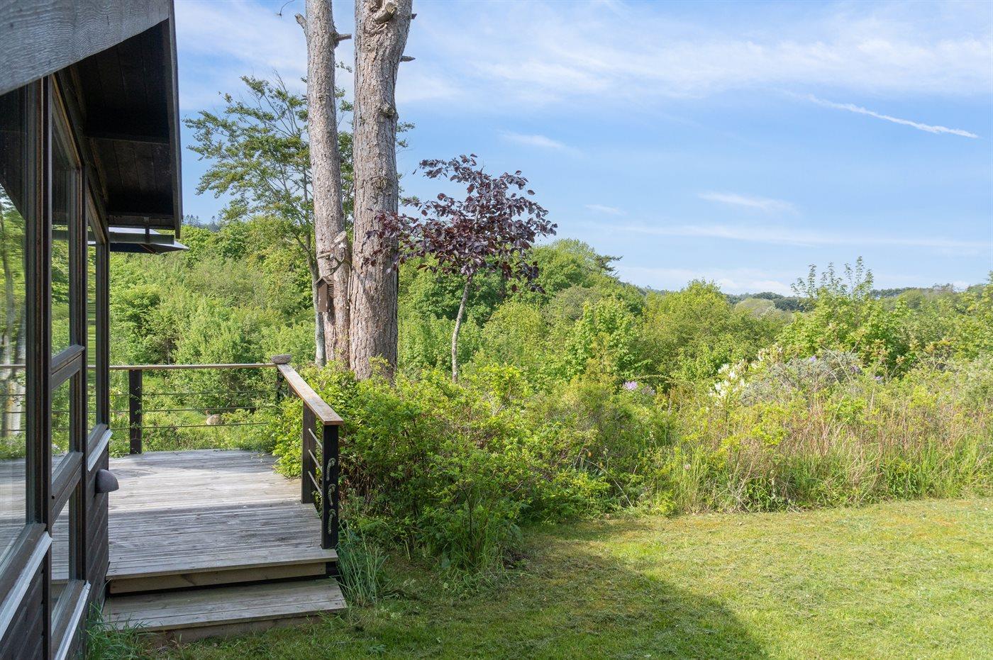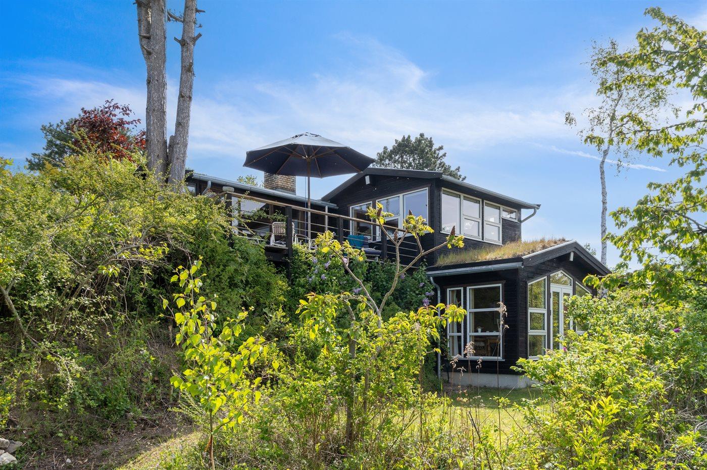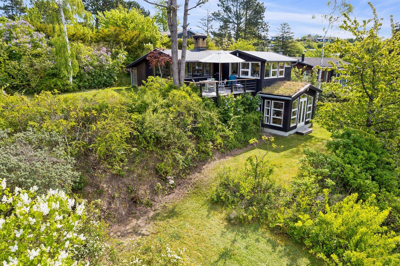 Et super spændende og ugenert sommerhus med havkig - beliggende for enden af blind vej i et område med naturskønne moræne bakker fra sidste istid mellem Vejrhøj og Ordrup Næs. Der er fra huset og terrasse udsigt over over bakkerne til skov og hav. Huset ligger på en stor beplantet naturgrund med et rigt fugleliv. Der er en østvendt terrasse med morgen-/middagssol og en sydvestvendt terrasse med middags-/aftensol. Bemærk at 2 af sovepladserne er i Hestbæk sovesofa i med springmadrasser.