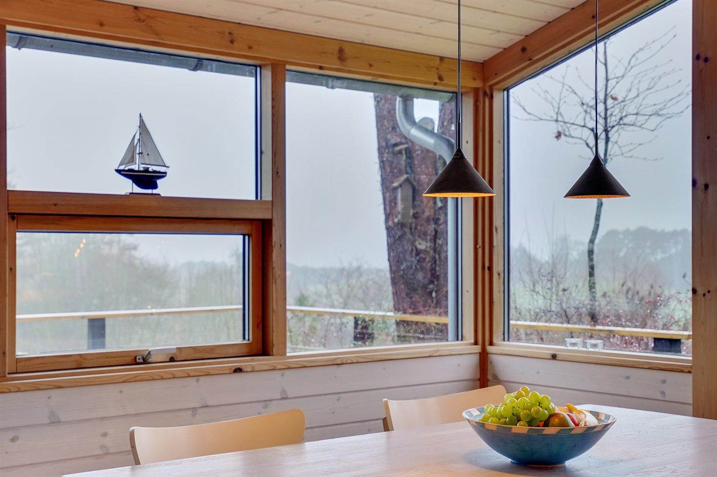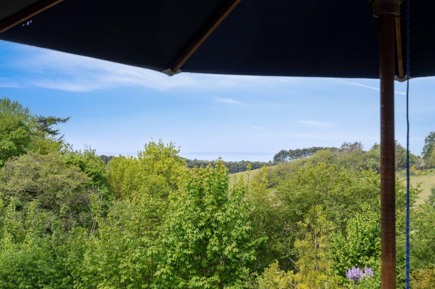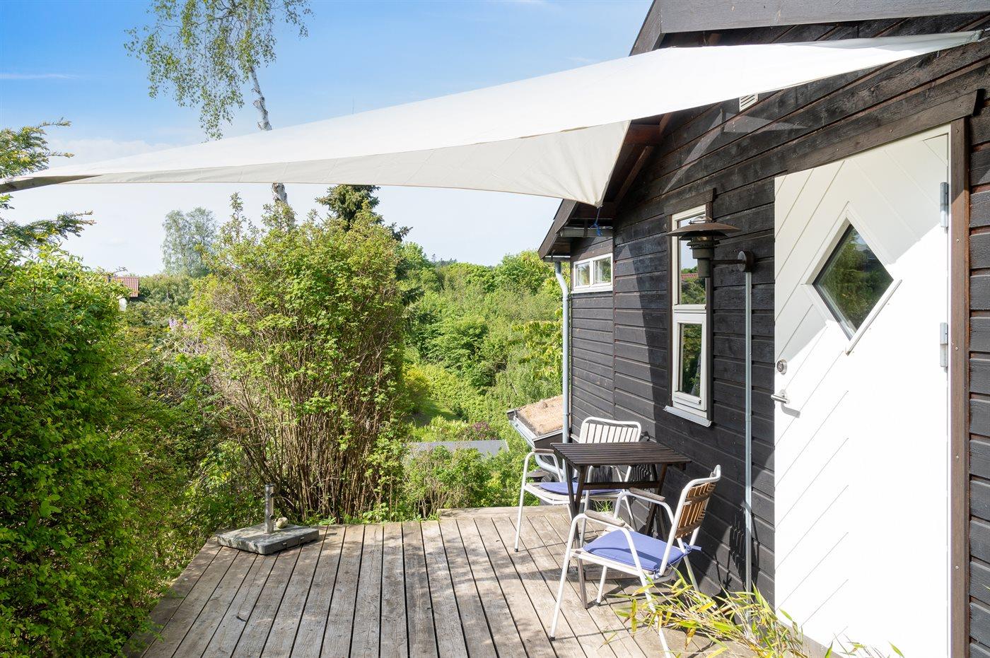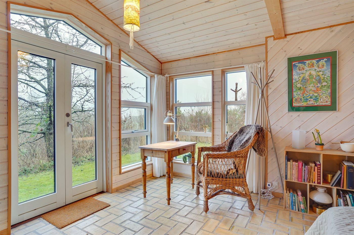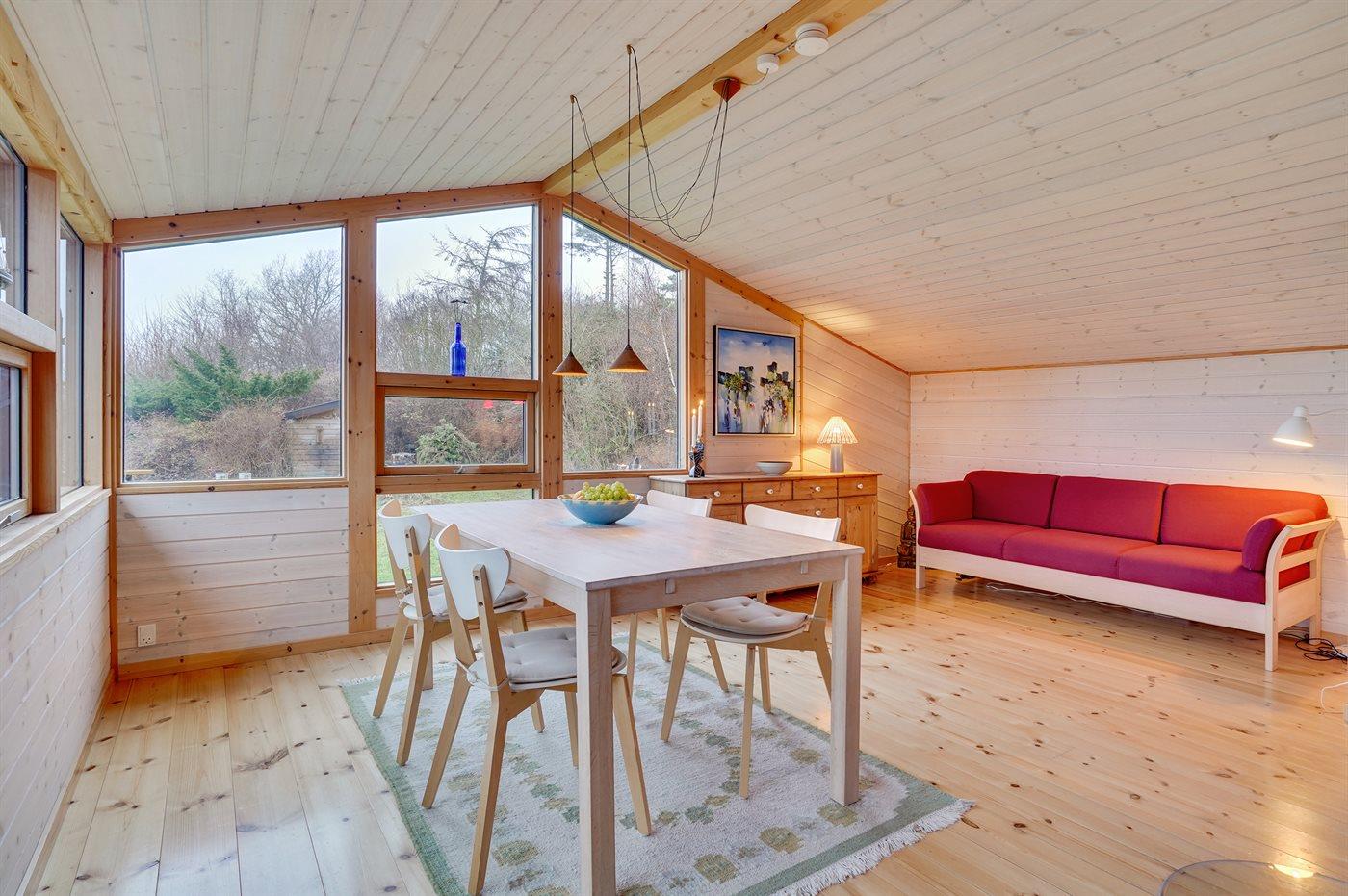 Et super spændende og ugenert sommerhus med havkig - beliggende for enden af blind vej i et område med naturskønne moræne bakker fra sidste istid mellem Vejrhøj og Ordrup Næs. Der er fra huset og terrasse udsigt over over bakkerne til skov og hav. Huset ligger på en stor beplantet naturgrund med et rigt fugleliv. Der er en østvendt terrasse med morgen-/middagssol og en sydvestvendt terrasse med middags-/aftensol. Bemærk at 2 af sovepladserne er i Hestbæk sovesofa i med springmadrasser.