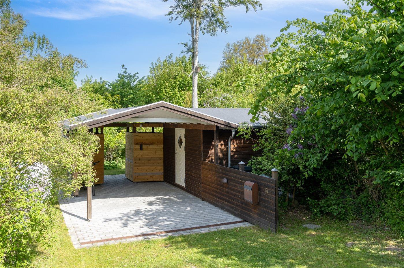 Ferieboligen er beliggende på en 1240 m² stor naturgrund. Der er 1800 m til havet. Nærmeste forretning er beliggende i en afstand af 3200 m. Til ferieboligen hører 35 m² terrasseareal. Grill til rådighed. Der er carport til rådighed. Parkering ved ferieboligen.