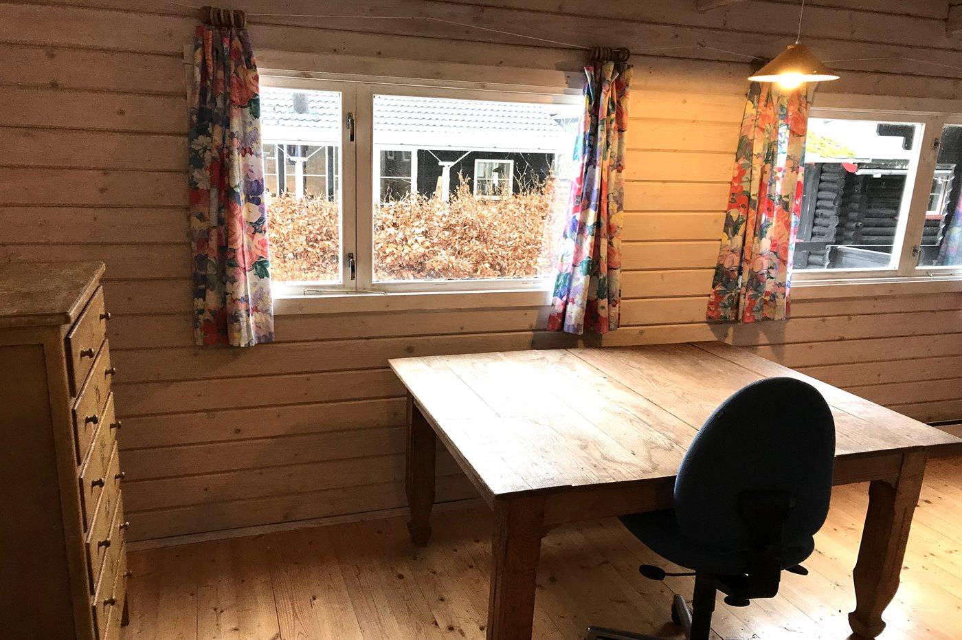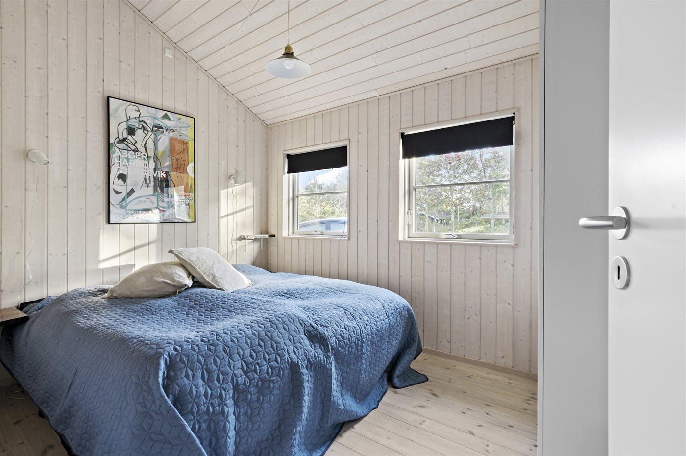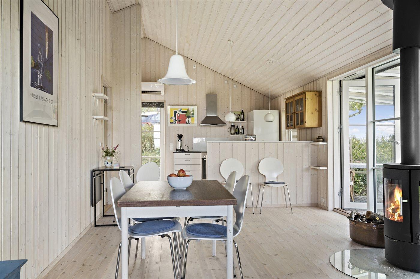 Huset er indrettet med et køkken-alrum, som ligger i åben forbindelse med stuen og med udgang til en flot overdækket terrasse. Indvendigt er alt holdt i lyse materialer med loft til kip i alle rum. I selveste huset findes der 2 soveværelser med hver 2 sovepladser og cirka 10 meter fra huset ligger der et anneks på 25 m2 med yderligere 2 sovepladser.