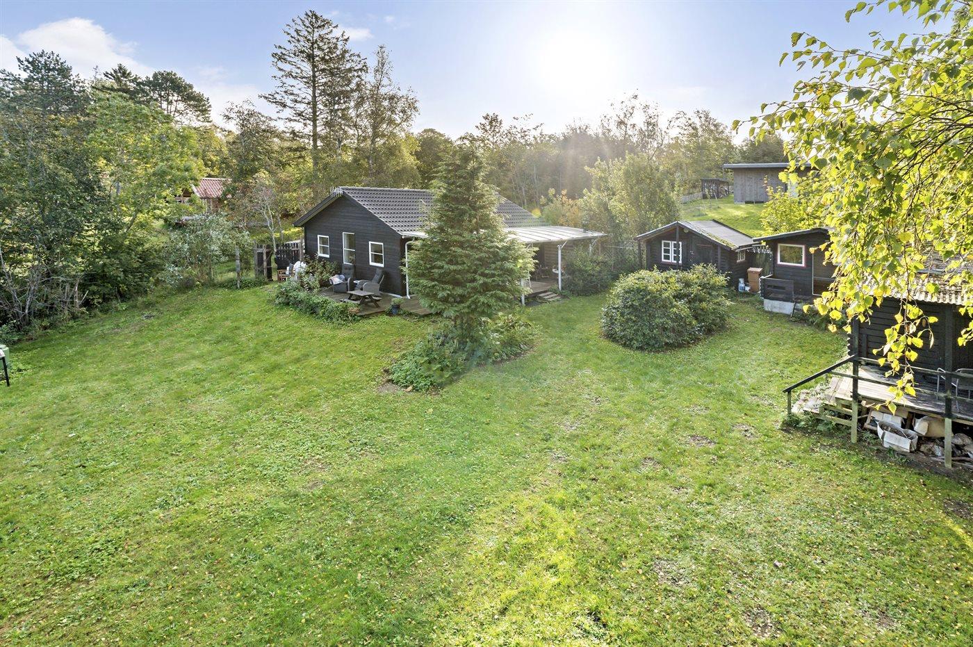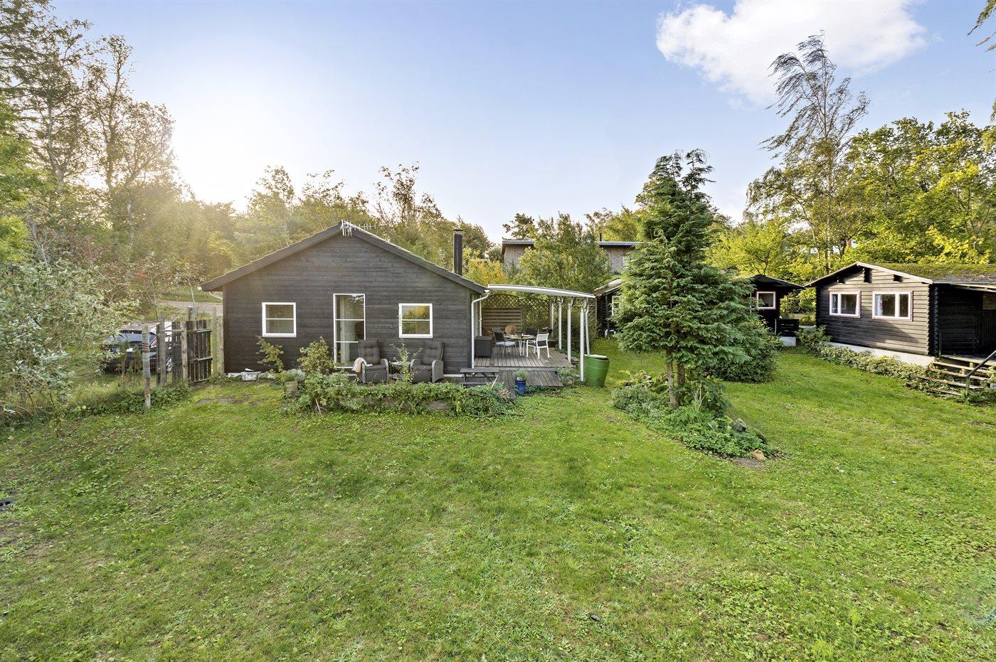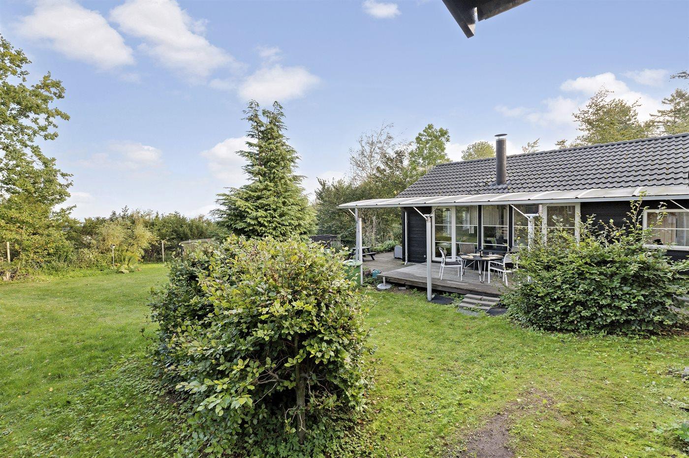Huset er beliggende i et fredeligt sommerhusområde omgivet af god natur. Grunden er indhegnet, således børn og kæledyr kan færdes sikkert. I haven er der trampolin.