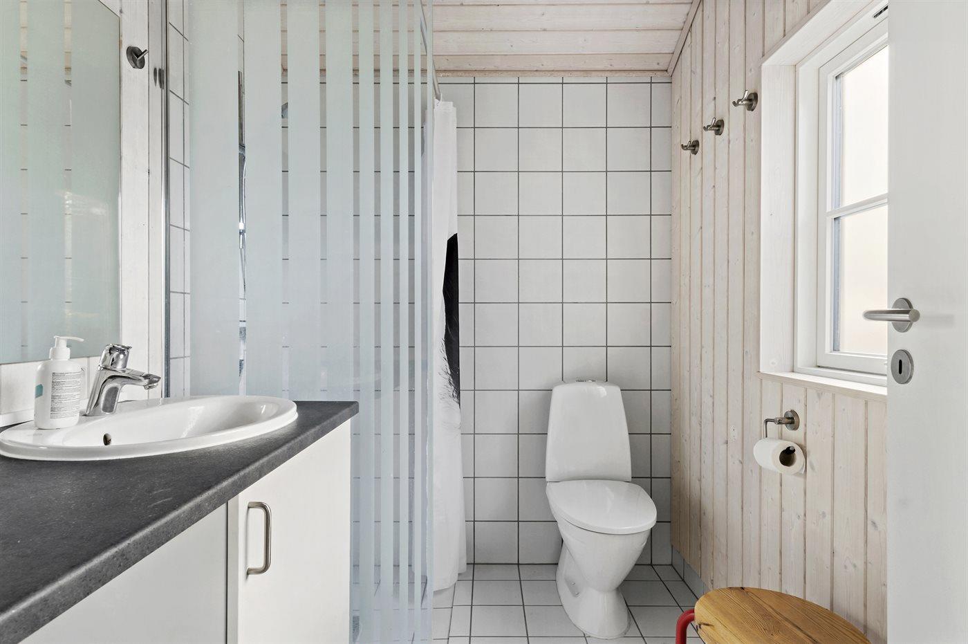Der er 1 badeværelse med bruseniche og 1 toilet.