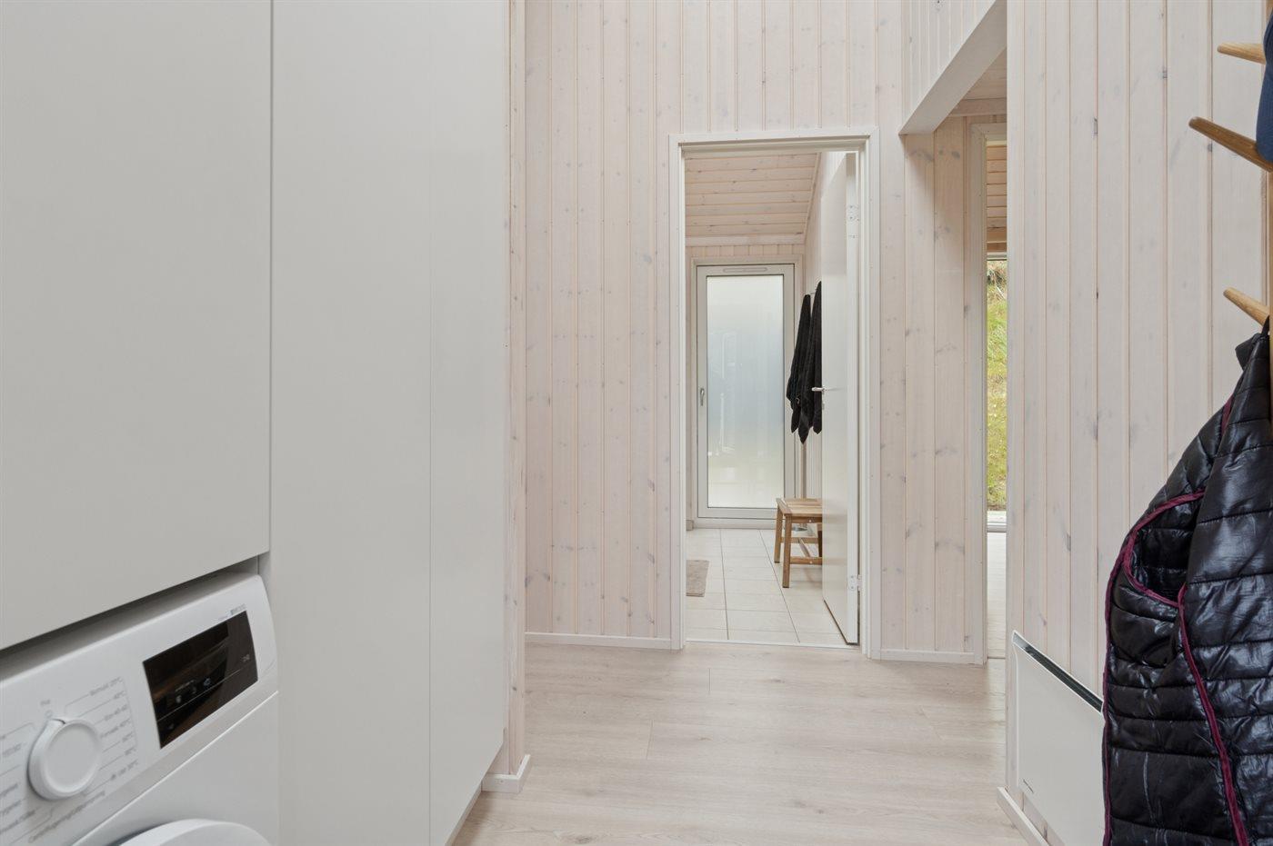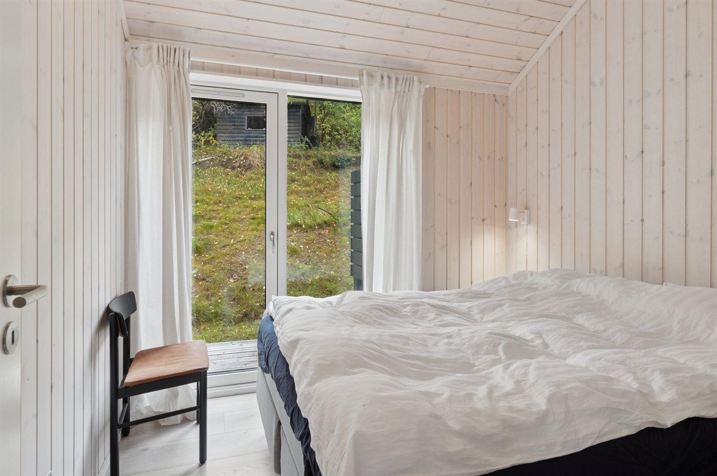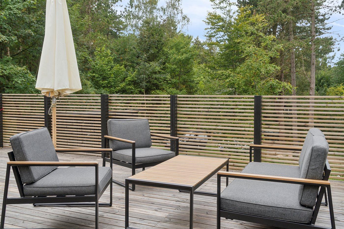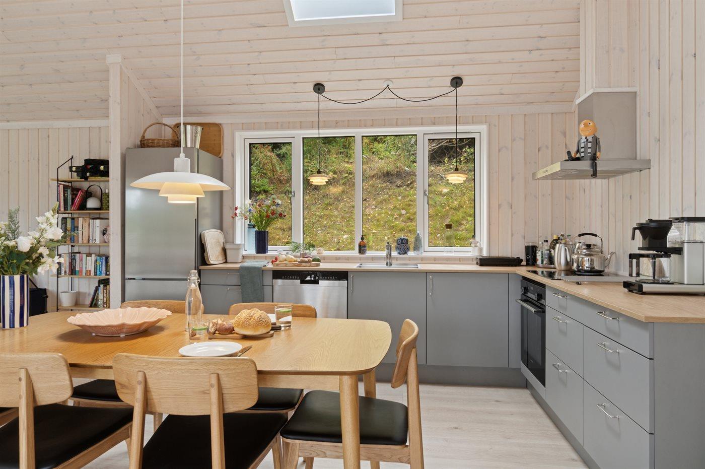 Huset er moderne og lyst og luftigt med masser af lysindfald fra de store vinduespartier og med loft-til-kip er huset rummeligt og rart at opholde sig i. Køkkenalrummet er i åben forbindelse med stuen og herfra er udgang til et stort dejligt terrasseområde, hvor en del af terrassen er overdækket med god mulighed for at finde skygge og læ og nyde de lange lyse sommeraftener.