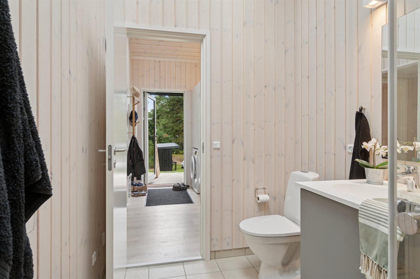 Der er i alt 4 soveværelser hvor der i de 3 er dobbeltsenge. I det sidste soveværelse er en dobbelt sovesofa. Der 1 badeværelse med bruseniche og gulvvarme og i tillæg hertil er et gæstetoilet med gulvvarme. Fra badeværelset er der udgang til udebruser. Der er vaskemaskine.