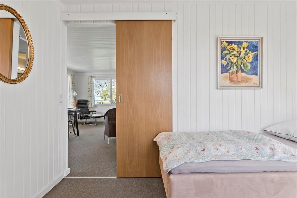 Huset ligger KUN 100 meter fra Ore Strand, hvor der er et stort grønt areal og badebro. Stor overdækket og delvis lukket terrasse med havemøbler.