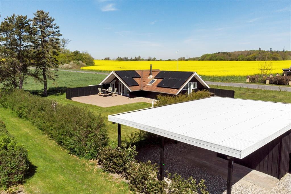 Sommerhuset ligger mod syd/øst med delvis overdækket terrasse og havemøbler. Skur med overdækket garage. Via egen trampesti opnås direkte og ugeneret adgang ned til STRANDEN.