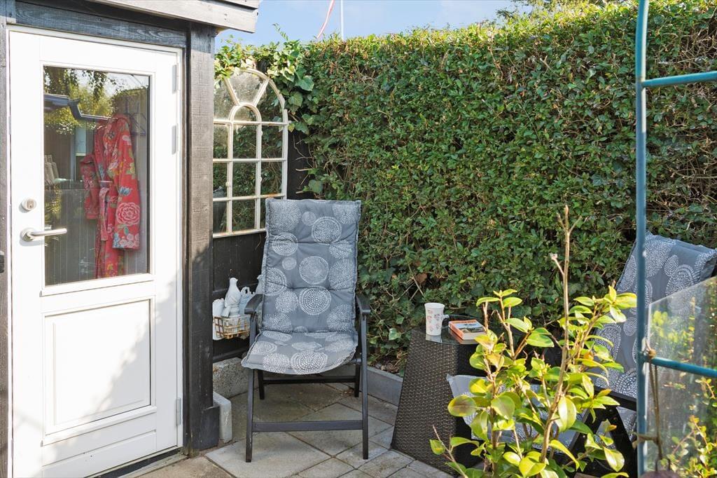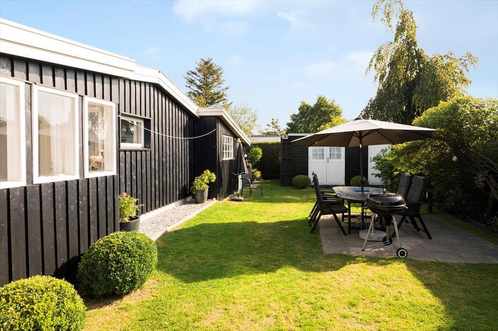 Sommerhuset ligger på en stille vej og er omkranset af en dejlig, delvis lukket have. I haven er der en god fliseterrasse og flere steder du kan sidde og nyde solen. Når I går ud på grusvejen ved huset kan I se vandet.