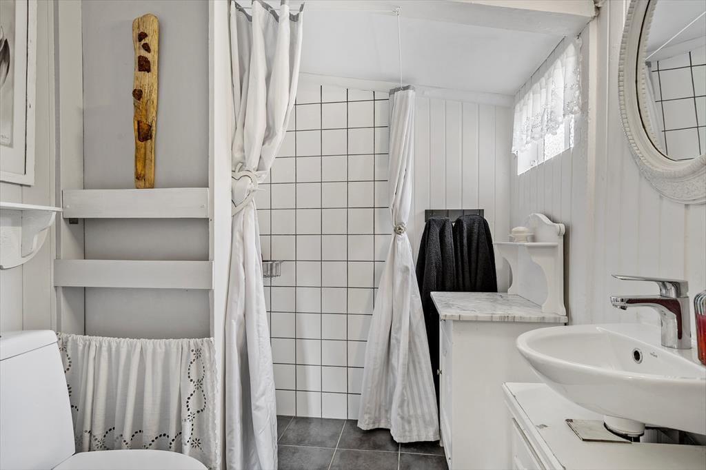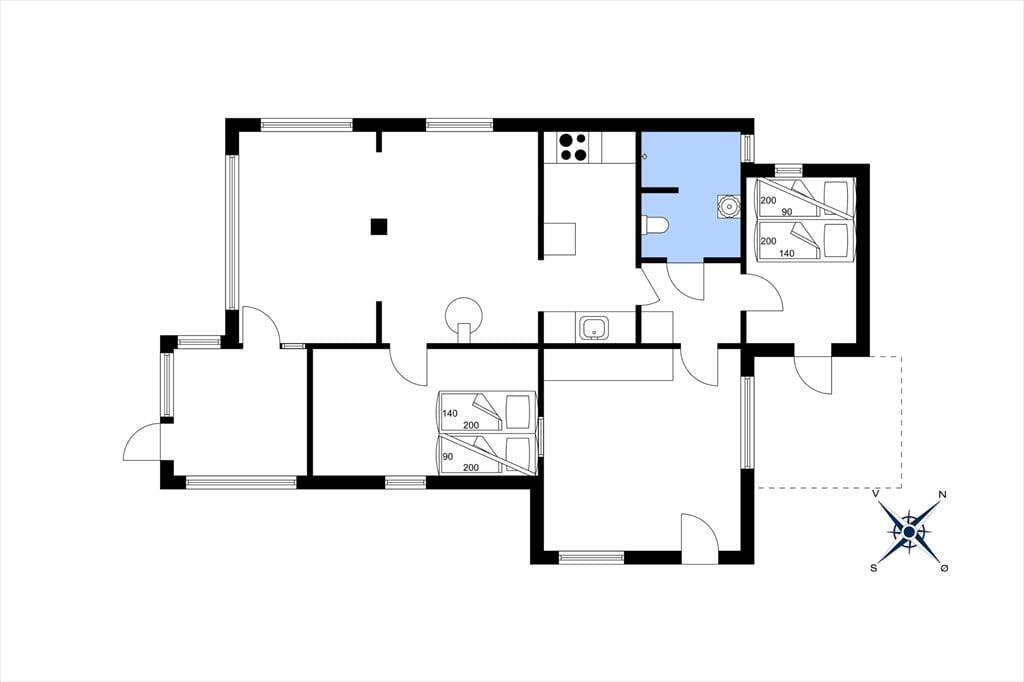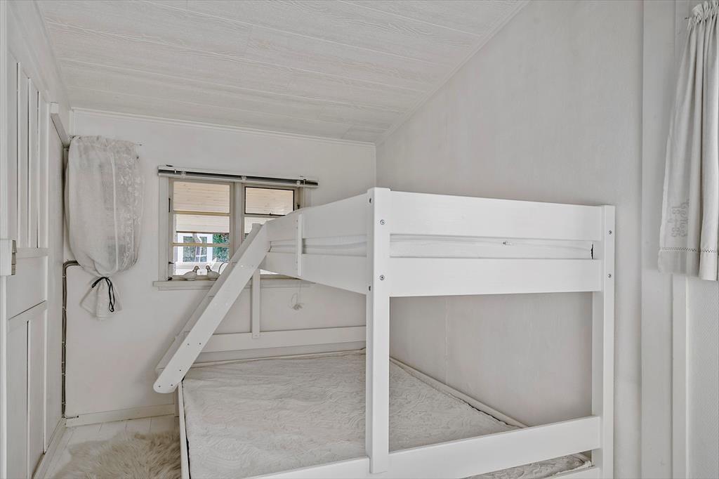 Begge soveværelser, er udstyret med 1 køjeseng og under den, 1 dobbeltseng med en bredde på 140cm, så der er plads til 3 personer i hvert soveværelse. Pladsen på badeværelset er godt udnyttet. Badeværelset har toilet, bruser og håndvask. Huset har varmepumpe.