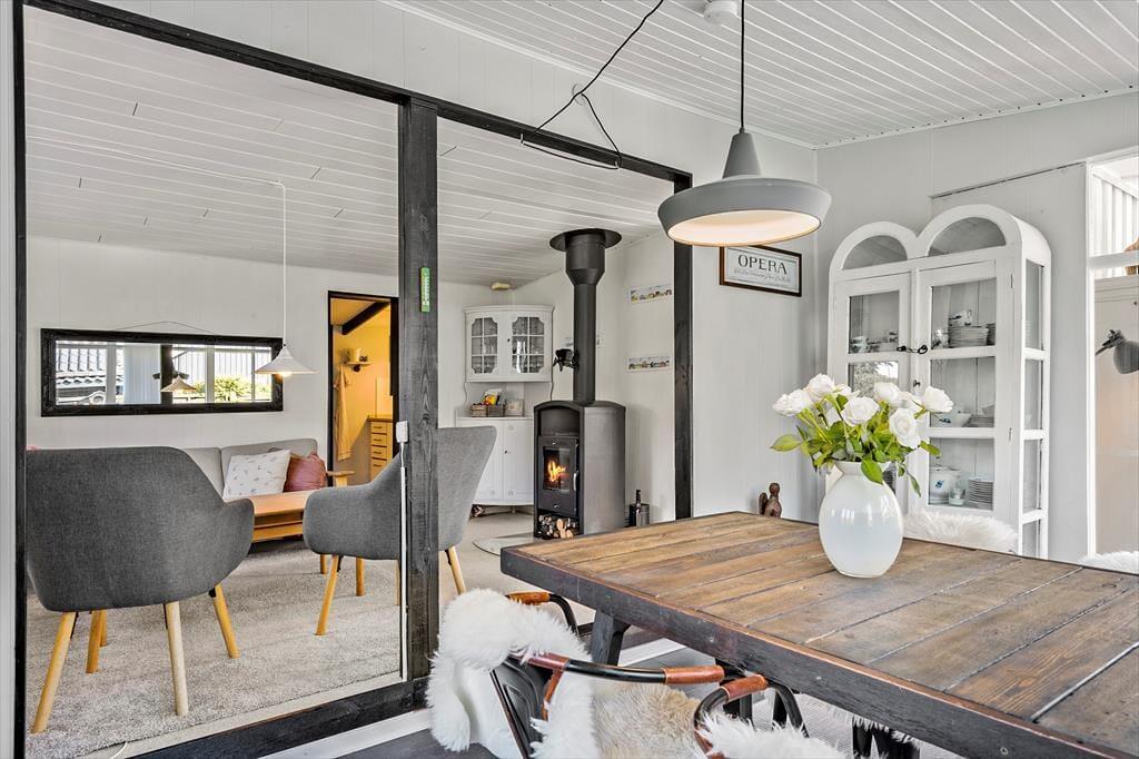 Hold ferie i dette hyggelige sommerhus og kom helt ned i gear. I den store pæne entre, kan du lægge skoene og hænge overtøjet op og komme direkte ind i den hyggelige, smukt møblerede stue med Streaming TV. Her er en sofagruppe, en spiseplads og en brændeovn til de kolde dage. Det lille køkken byder velkommen med fire glaskeramiske plader, ovn, stort køleskab med lille fryser, elkedel, mikroovn, opvaskemaskine og kaffemaskine. På bagsiden af ferieboligen kan I nyde hinandens selskab i et meget dejligt uderum med barbord og barstole samt sofa. Rummet indbyder til hygge, læsning og kaffe eller en drink.