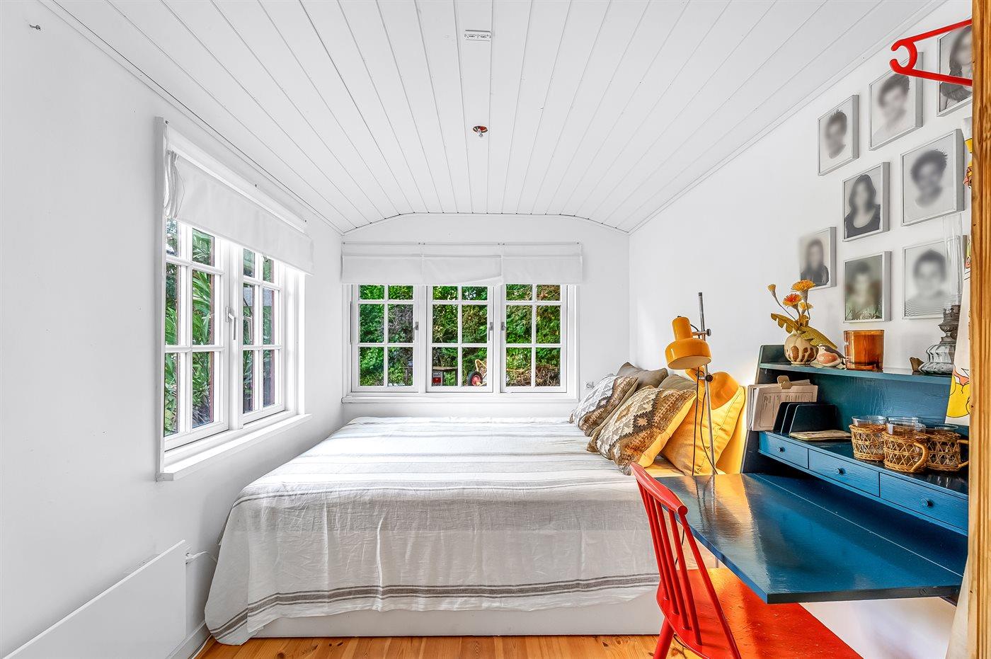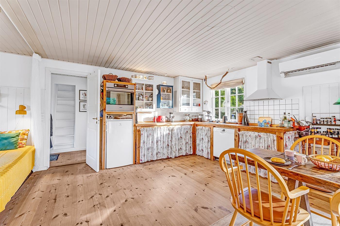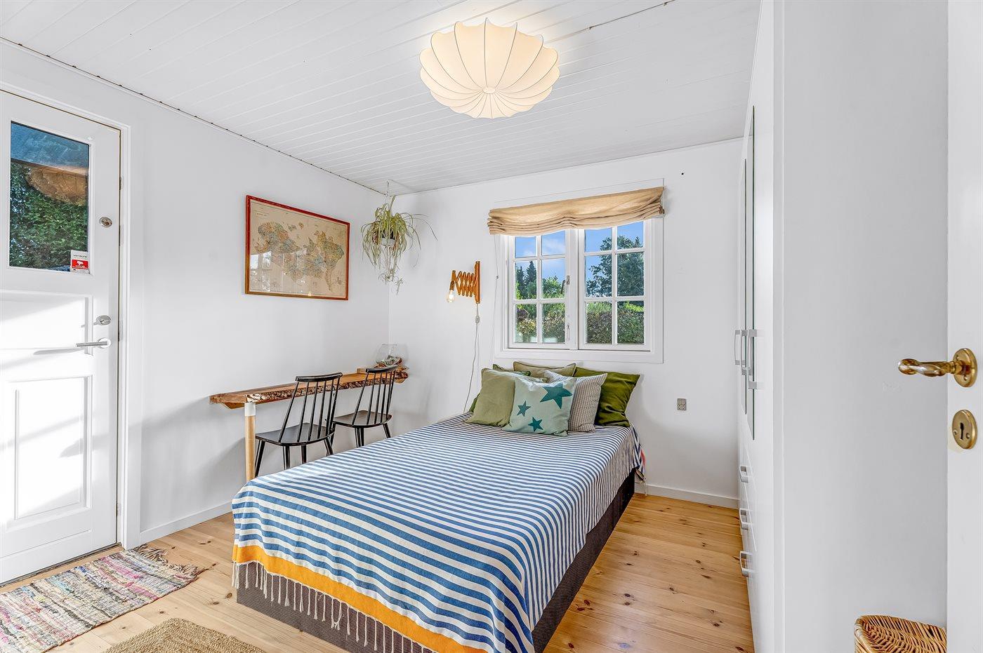 Sommerhuset er hyggeligt indrettet med åbent køkken kombineret med stuen, hvor der er hyggeligt hævet dobbeltseng. Der er et soveværelse i selve sommerhuset med en lille dobbeltseng (120x200), derudover hems med to madrasser. Fra terrassen er der adgang til det store anneks med yderligere to soveværelser og et badeværelse. Perfekt til gæster eller hvis familien vil dele sig lidt op.