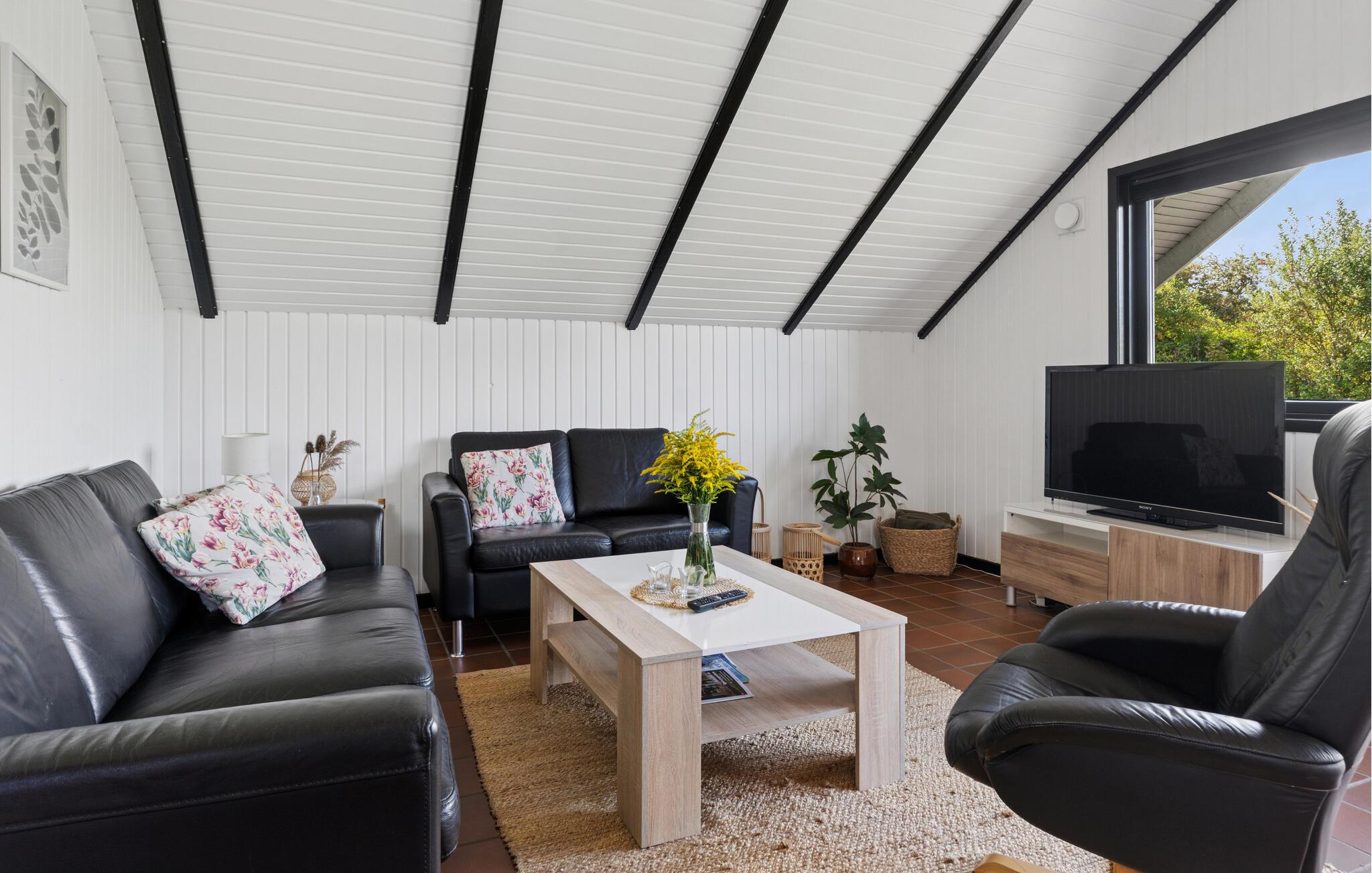 Tag familien med på ferie i denne smukke bolig, hvor I straksvil føle jer hjemme. Det åbne og lyse opholdsrum, der forbinder køkken, spiseplads og stue, er det ideelle sted for jer at slappe af, lege og lave mad. Hvis nogen har brug for lidt ekstra privatliv, finder I et soveværelse i annekset. Den store terrasse forbinder de to bygninger og inviterer jer til at nyde jeres måltider udendørs. Haven lover også sjov og leg med fodbold eller vikingespil.