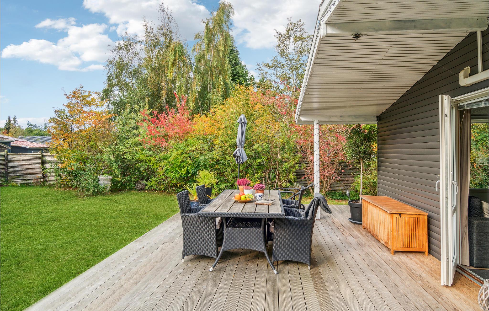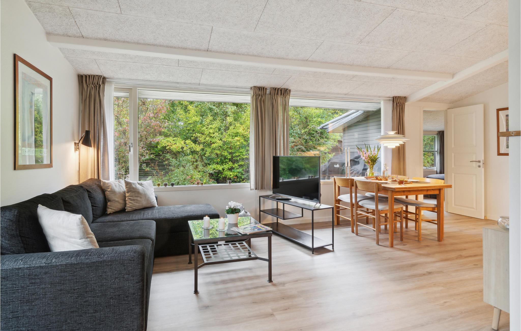 Dette hyggelige feriehus er det ideelle sted at tilbringe en velfortjent familieferie i uforstyrrede naturomgivelser. Huset i Ornum byder på en hjemlig atmosfære og indbyder til at lave mad sammen, se en film eller slappe af i den åbne stue. Der er præcis de faciliteter, I behøver til en afslappende ferie. Om morgenen kan I gå ud på træterrassen gennem terrassedøren og drikke jeres dampende kaffe, mens jeres børn leger på græsplænen i den indhegnede, idylliske have. Om aftenen kan I nyde lækker grillmad.