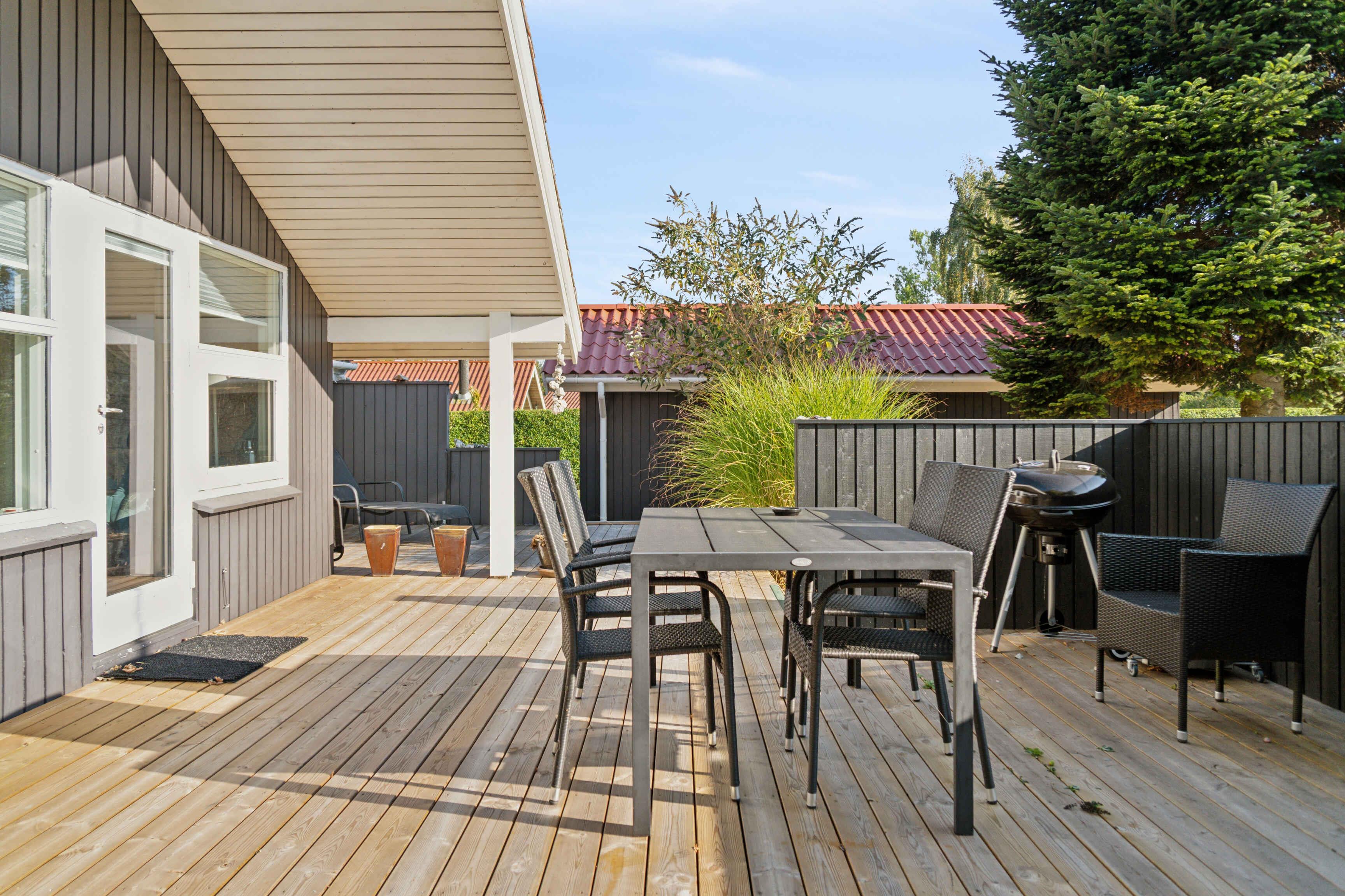 Sommerhus på 86 m² til 8 personer med nyt køkken, møbler og faciliteter som opvaskemaskine, vaskemaskine, internet og tv. Træterrasse, tæt på strand, natur og byliv. Husdyr velkomne – perfekt til afslappende familieferie.