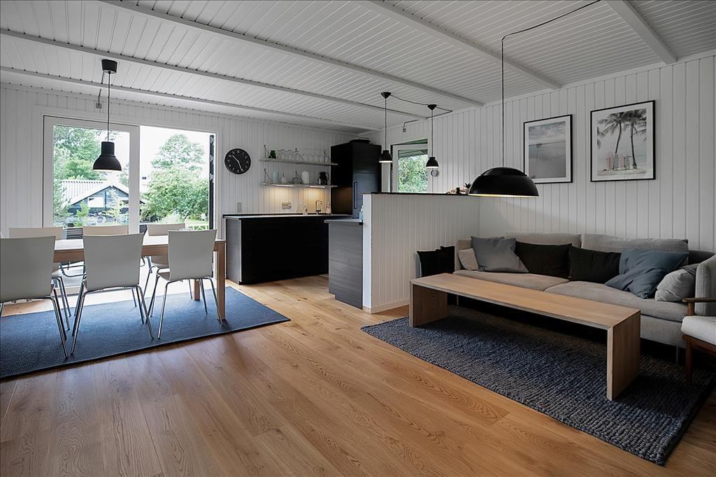 I stuen, er der mulighed for at snuppe et slag kort eller nyde en god frokost i den hyggelig spiseafdeling. God netforbindelse, så du løber ikke tør for data. Lækkert åbent køkken bl.a. med opvaskemaskine. Der tilhører tre skønne soveværelser, alle med dobbeltsenge samt dejligt badeværelse med brus. Alt i huset fremstår indbydende, lyst og lækkert.