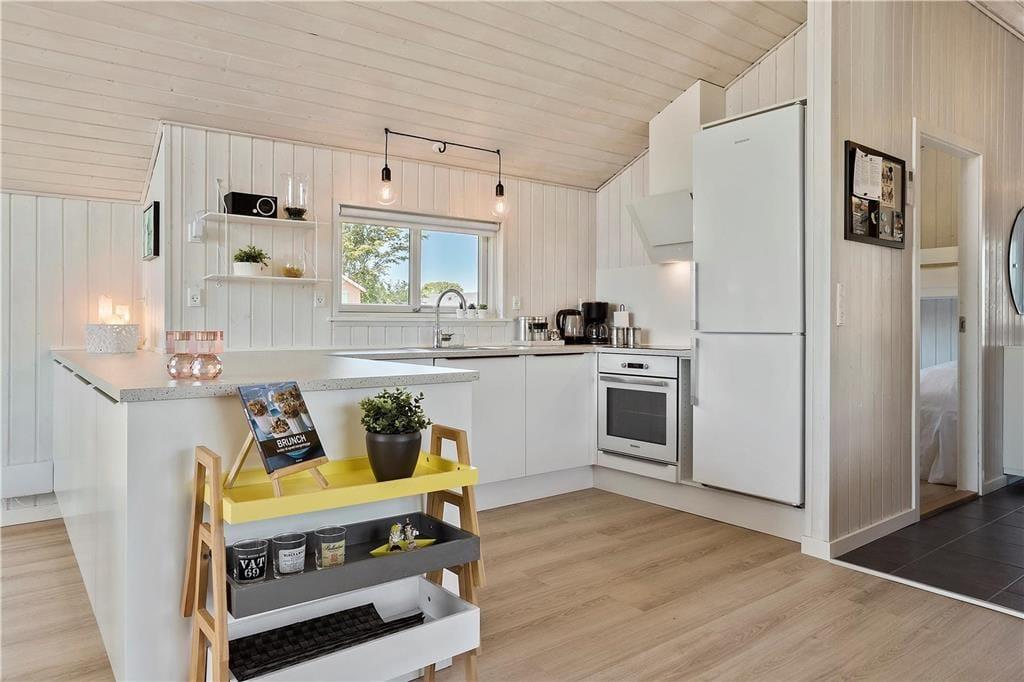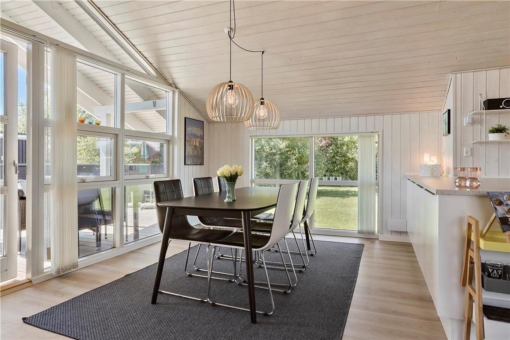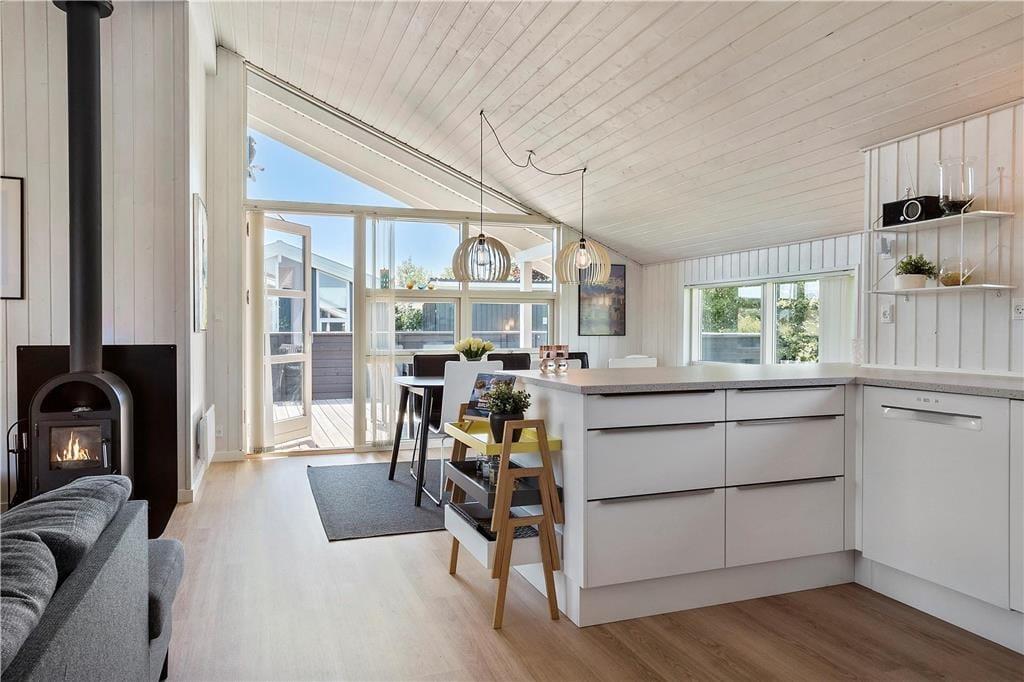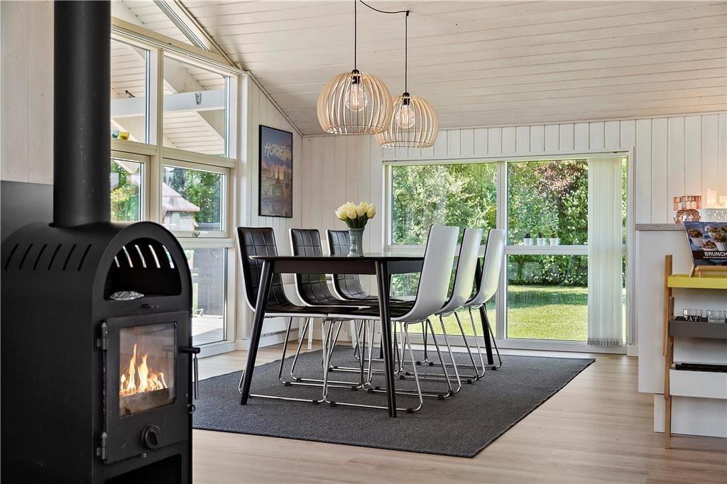 Dette store sommerhus i Pøt Strandby er skabt til den store familie eller to familier, der rejser sammen. Her mødes I i det lyse køkken-alrum, hvor der er god plads til at samles om måltiderne, spille et brætspil eller bare nyde hinandens selskab. Indretningen er moderne og funktionel, men med masser af sommerhushygge. I stuen kan du tænde op i brændeovnen og nyde varmen på de kølige dage, mens børnene slapper af i alkoven eller leger i hjørnerne. Når der er brug for lidt ekstra velvære, kan I trække jer tilbage til badeværelset med spa og sauna – det perfekte sted til at slappe af efter en dag ved stranden eller en udflugt i området.