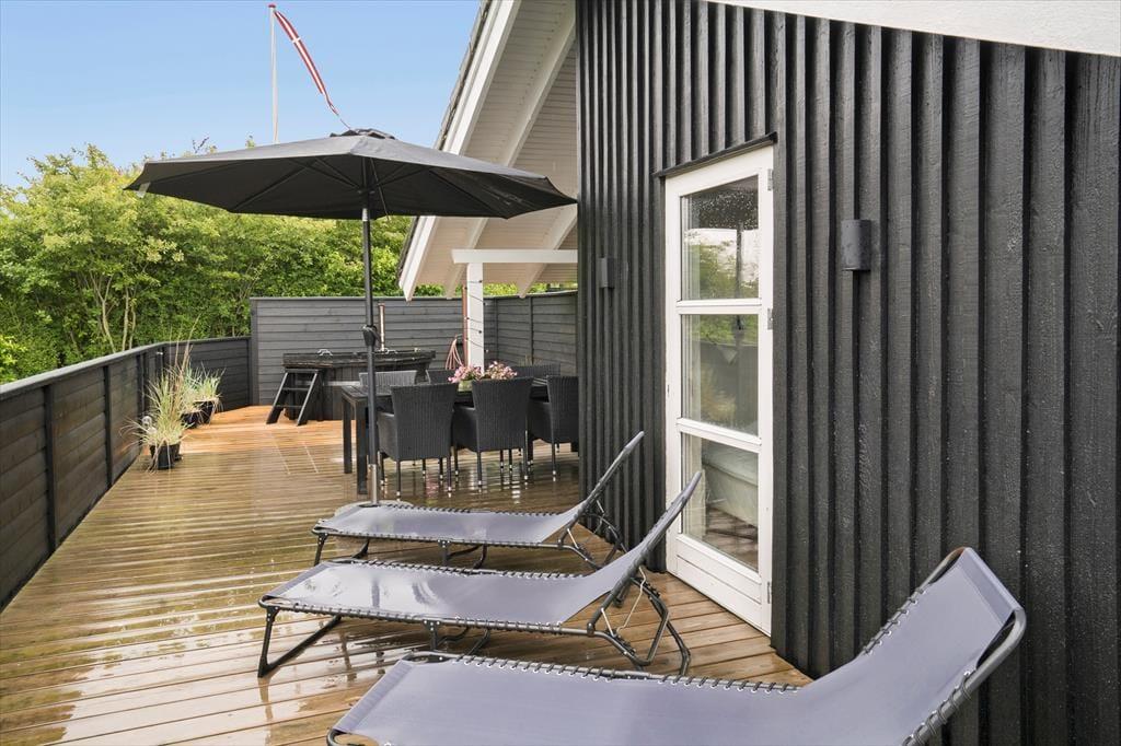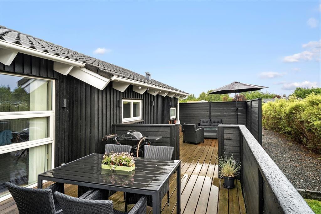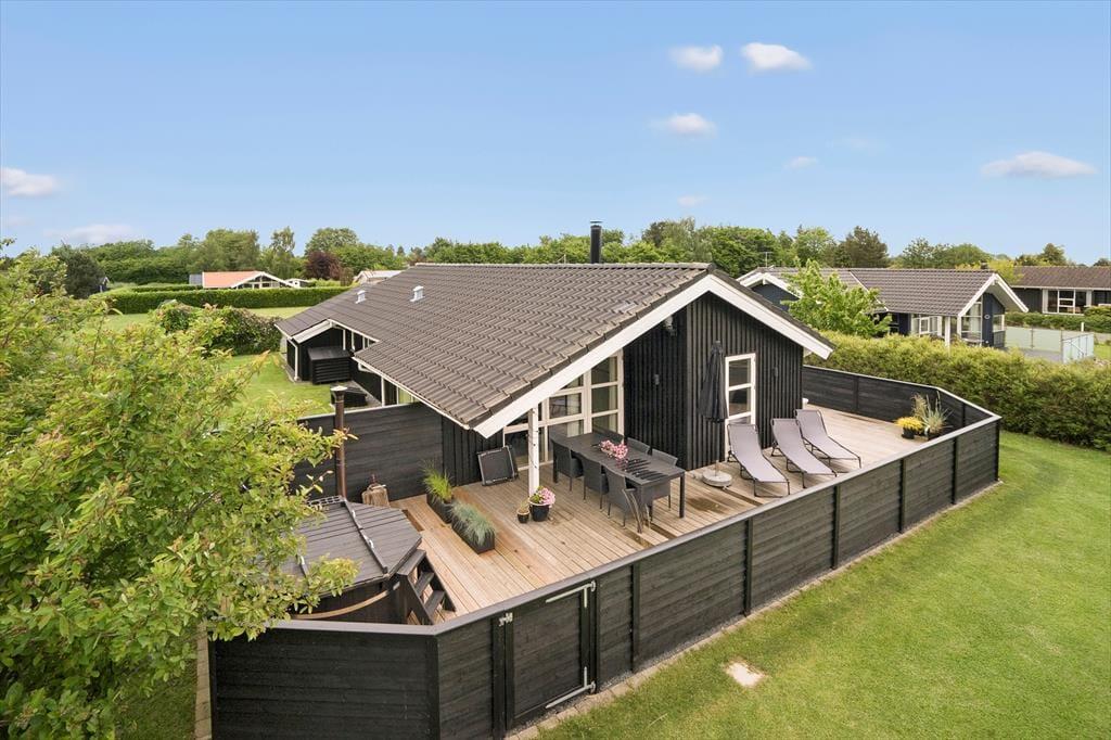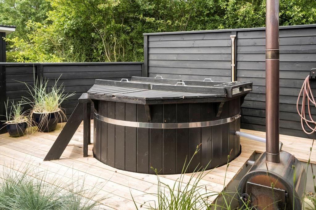 Sommerhuset ligger på en stor grund med masser af plads til aktiviteter og hyggelige stunder i det fri. Den store træterrasse langs huset er indrettet med havemøbler og lækroge, så du kan nyde solen fra morgen til aften. Når aftenen falder på, er det oplagt at tænde grillen og samle hele familien til middag under åben himmel. Et af husets højdepunkter er det udendørs vildmarksbad, hvor I kan synke ned i det varme vand og nyde roen – en oplevelse, der hurtigt bliver familiens favorit. Haven giver også plads til leg med gynge, klatretårn og sandkasse, og tæt ved huset finder I en lille boldbane, hvor både børn og voksne kan få gang i en fodboldkamp. Her er rammerne til en ferie med både afslapning og aktivitet.