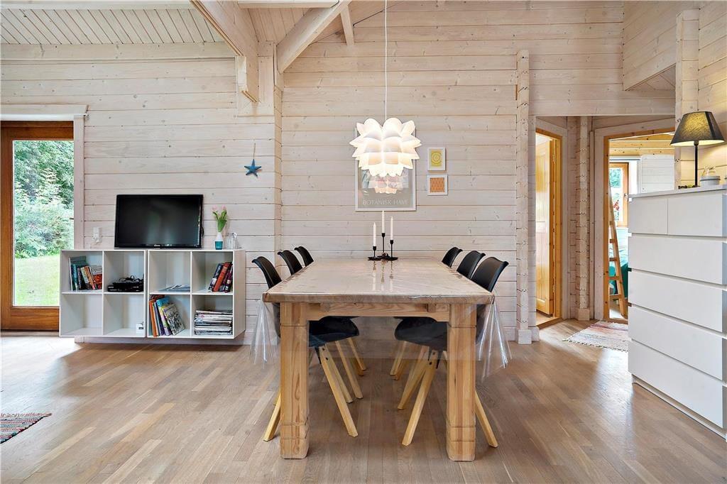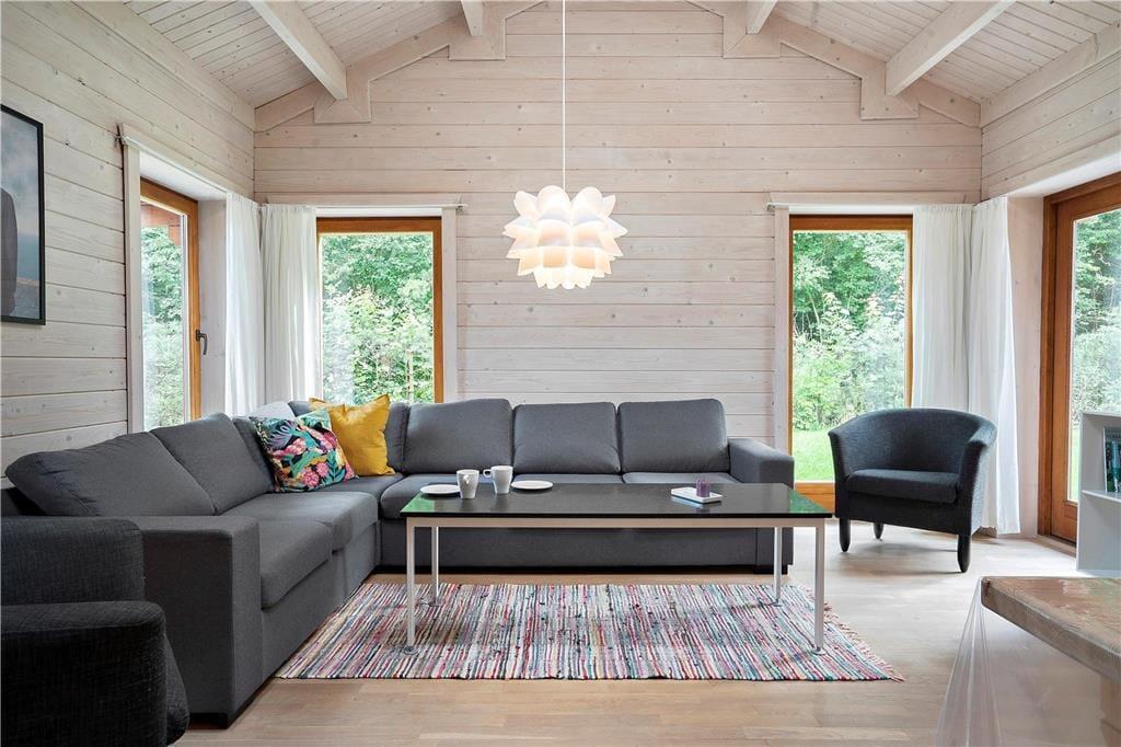 Indenfor møder du en indbydende atmosfære med plads til både fælles stunder og stille øjeblikke. Udestuen bliver hurtigt et naturligt samlingspunkt, hvor du kan sidde i læ for vinden og stadig have udsyn til haven og vandet. Her kan du starte dagen med dagens første kop kaffe, tage strikketøjet frem eller finde en god bog og lade tankerne falde til ro, mens lyset skifter over dagen. Når du trænger til ekstra forkælelse, venter spabadet som en rolig pause, hvor du kan læne dig tilbage og mærke skuldrene falde ned. Køkken og stue hænger sammen på en måde, der gør måltider og samvær let og uformelt, så feriens tempo får lov til at sætte sig naturligt.