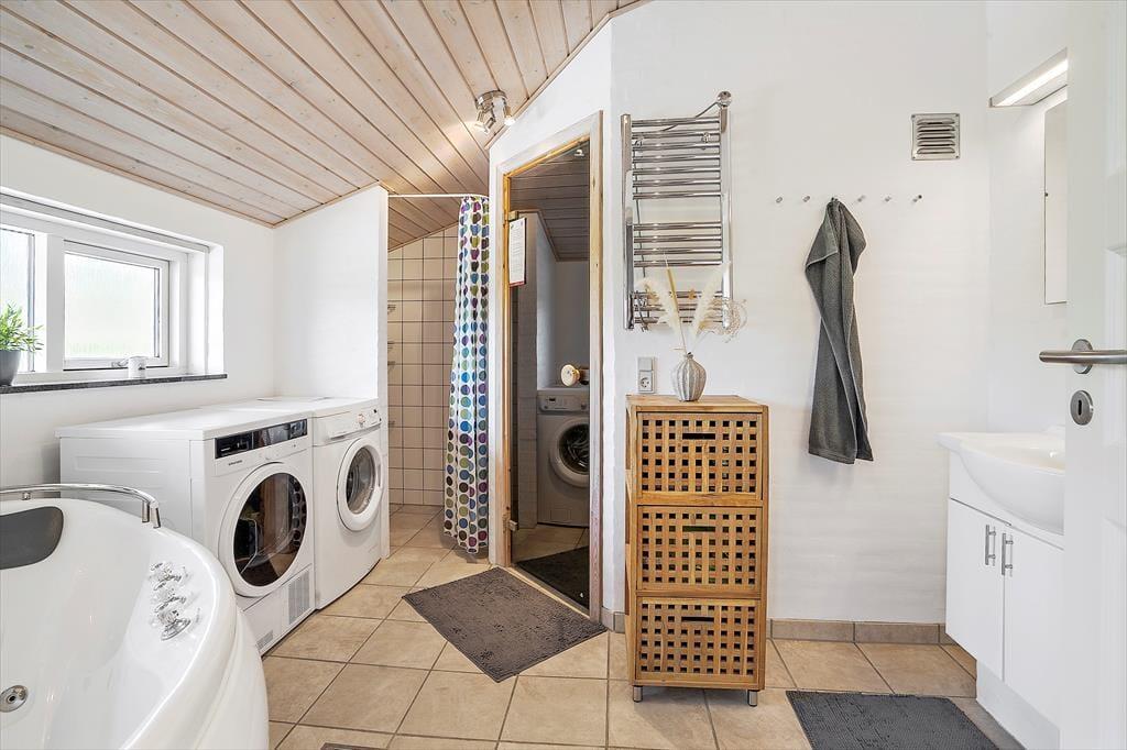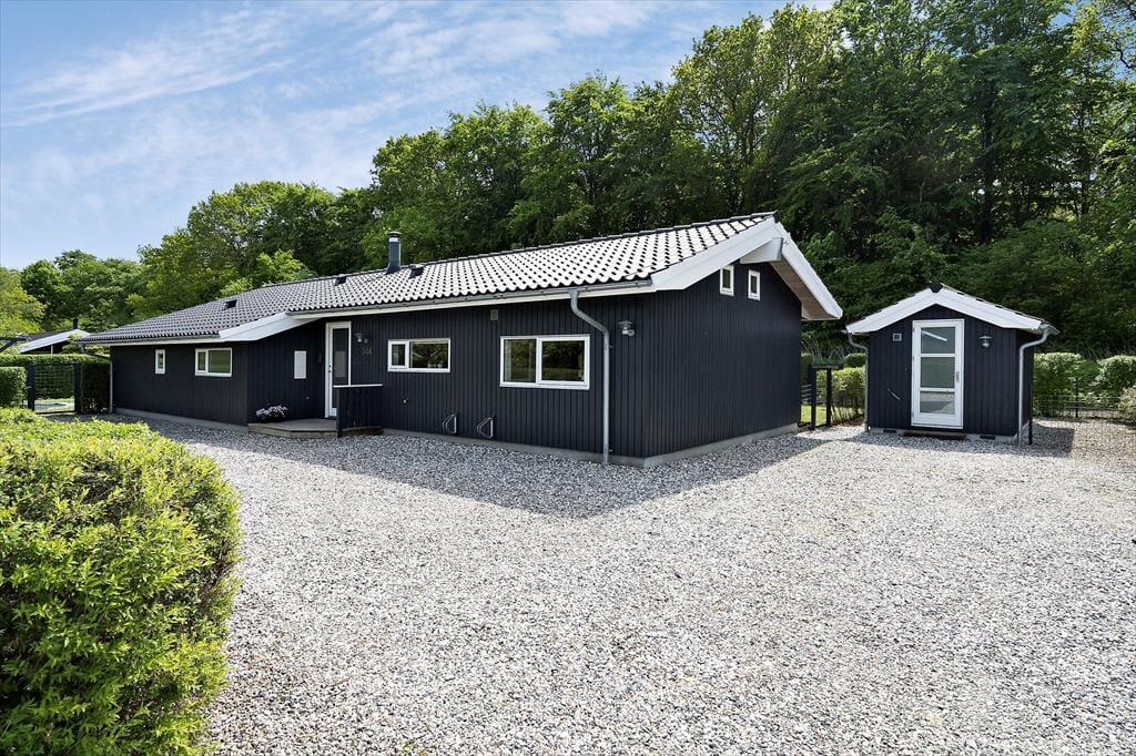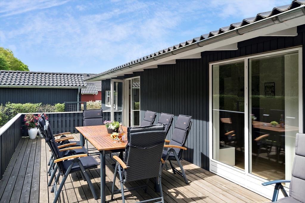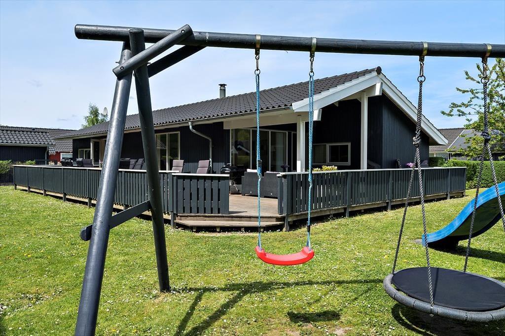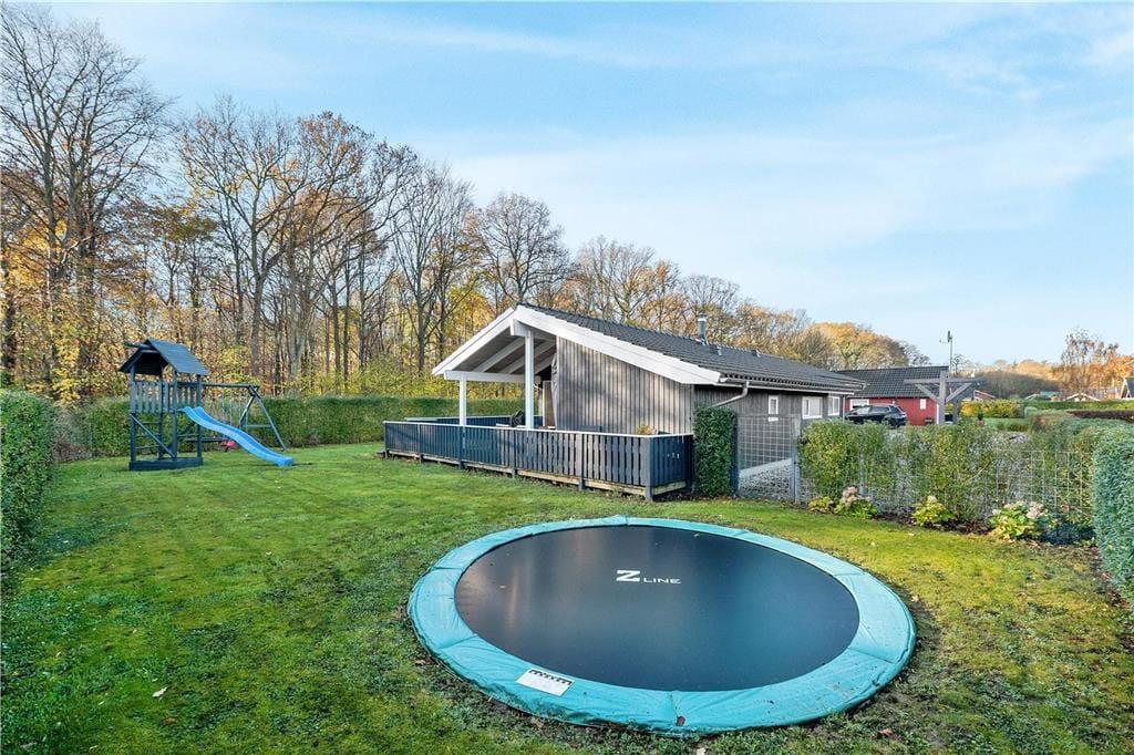 Udenfor venter en stor terrasse, hvor I kan nyde ferien fra morgen til aften. Den delvist overdækkede terrasse gør det muligt både at sidde i solen og finde skygge, alt efter behov. Haven er en sand legeplads for børnene, som kan more sig i sandkassen, på gyngen eller trampolinen, mens de voksne slapper af med en kop kaffe. Der er masser af plads til leg og aktiviteter i haven, og det giver trygge rammer for hele familien. Her kan I tilberede sommerens måltider på grillen, nyde roen i liggestolene og lade tiden gå lidt langsommere end derhjemme. Terrassen og haven bliver hurtigt familiens naturlige samlingssted, hvor hyggen fylder lige så meget som solen.