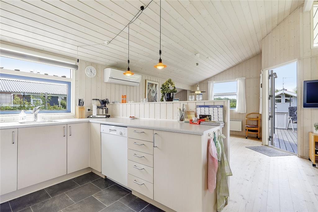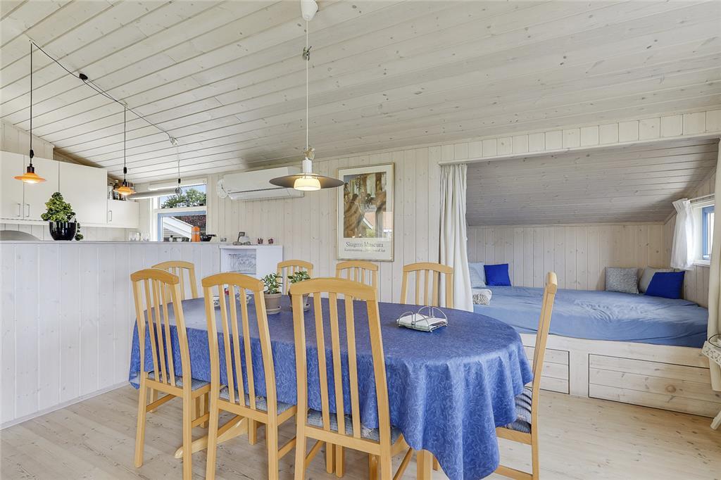 Den rummelige terrasse er det perfekte sted til lange, lune sommeraftener, hvor grillen dufter af saftige bøffer, og de sidste solstråler maler himlen i varme nuancer. Måske slutter I dagen af med en hyggelig aftenleg i haven eller en stille gåtur ned til stranden, hvor børnene kan soppe i vandkanten og finde smukke strandskaller til deres samling.