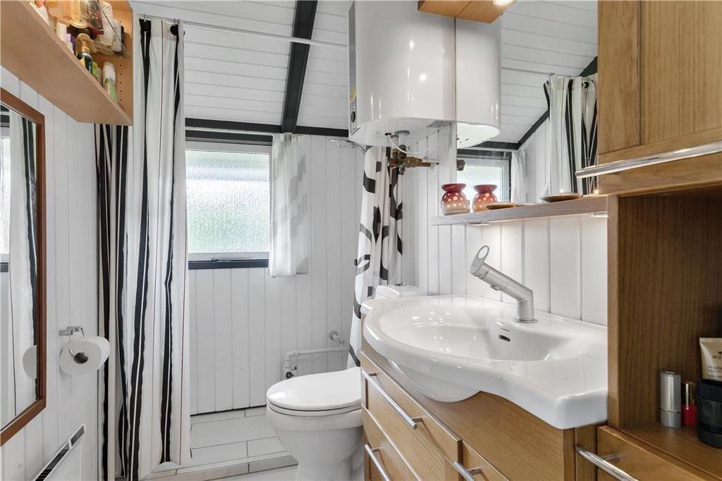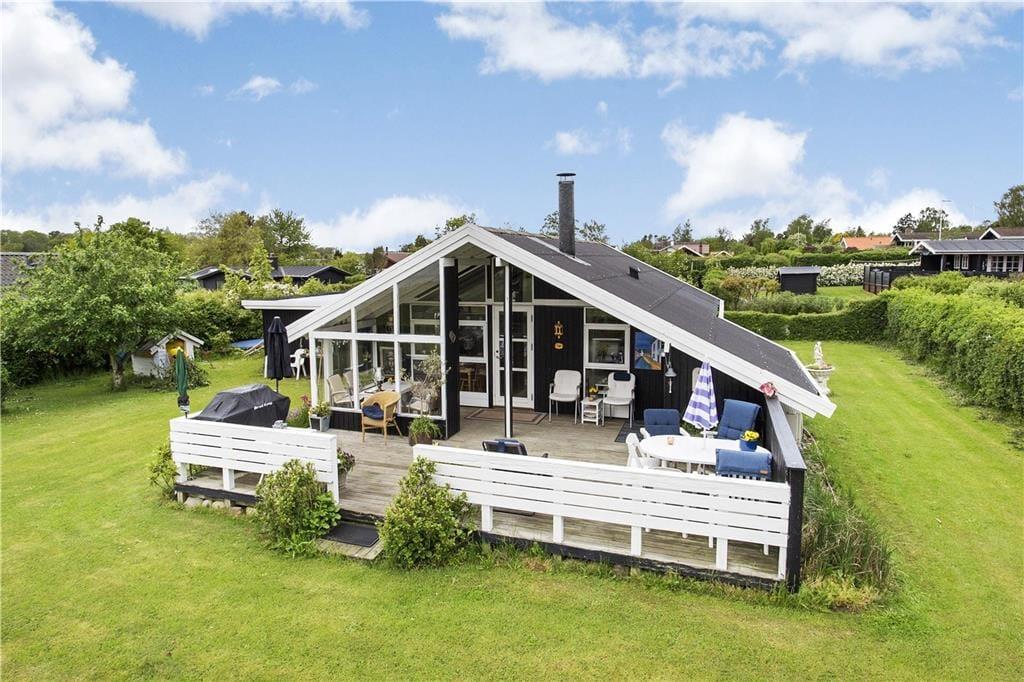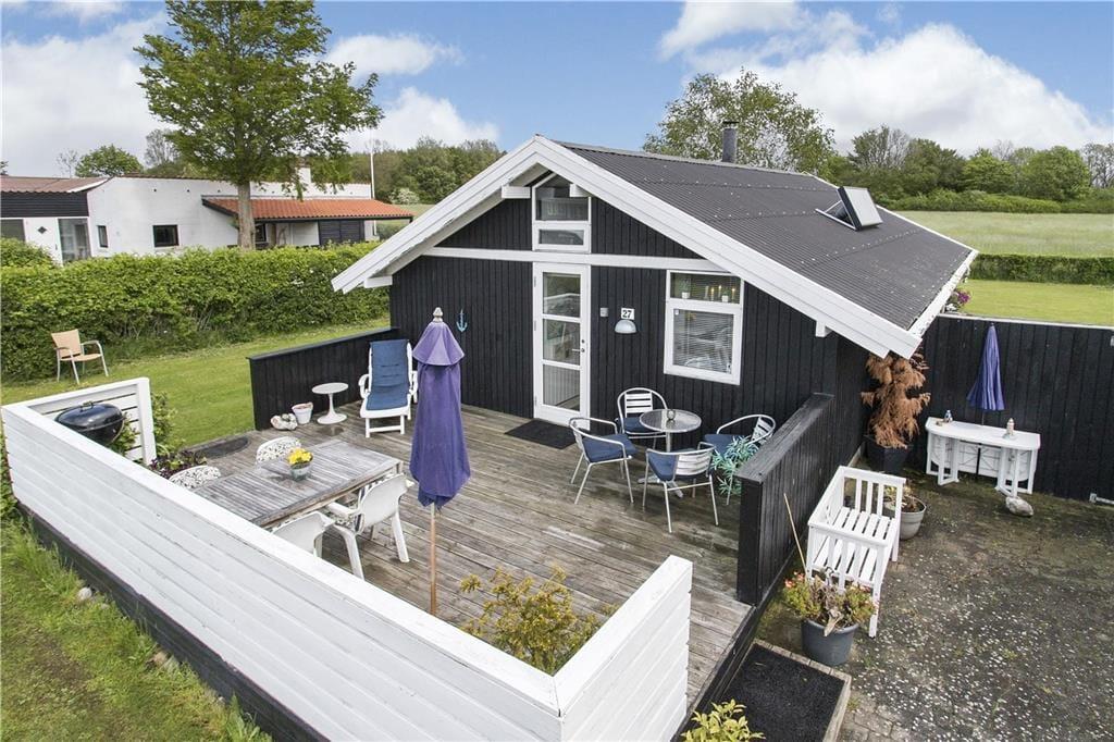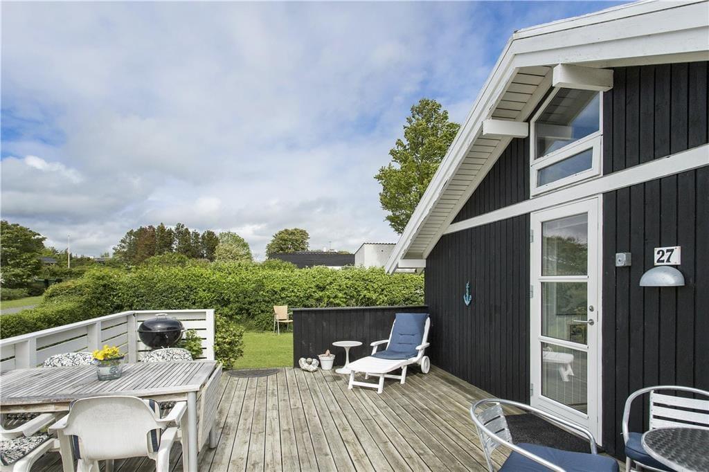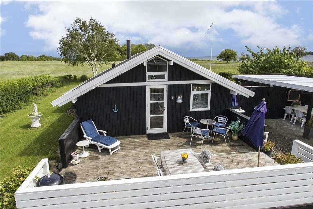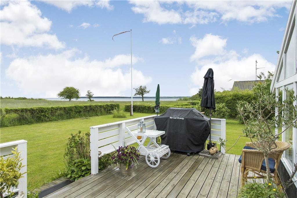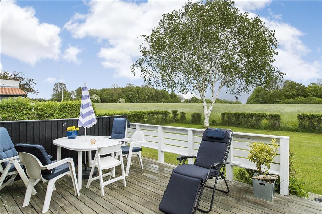 Sommerhuset har en skøn overdækket terrasse, hvor du kan trække ud i skyggen på varme dage eller forlænge aftenerne med en god middag under åben himmel. Herfra kan du mærke den friske havbrise og lytte til naturens lyde, mens dagen går på hæld. Haven indbyder til afslapning og leg, og med stranden lige foran dig er det let at tage en dukkert eller blot nyde synet af havet, der skifter farve i takt med dagens gang.