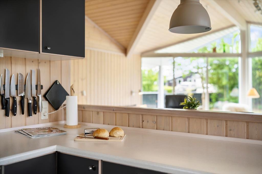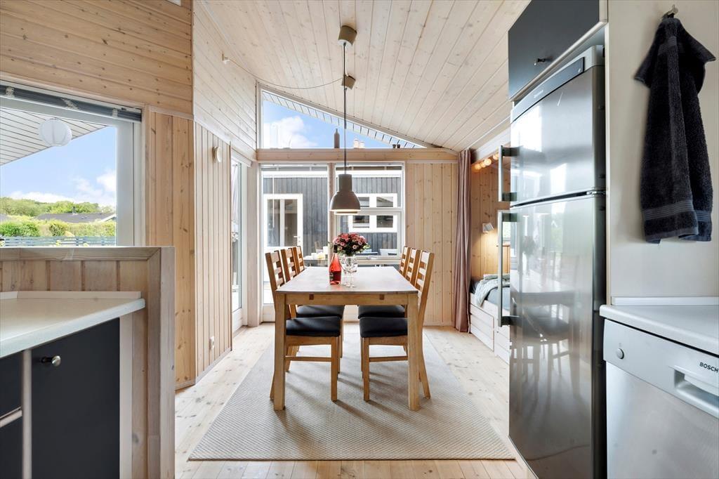 Fint og funktionelt køkken med alt hvad I skal bruge under jeres ferieophold. 3 gode soveværelser. 2 af soveværelserne har en dobbeltseng mens det sidste har 2 enkelt senge. Herudover 2 gode sovepladser i alkoven og 2 sovepladser til børn på hemsen.