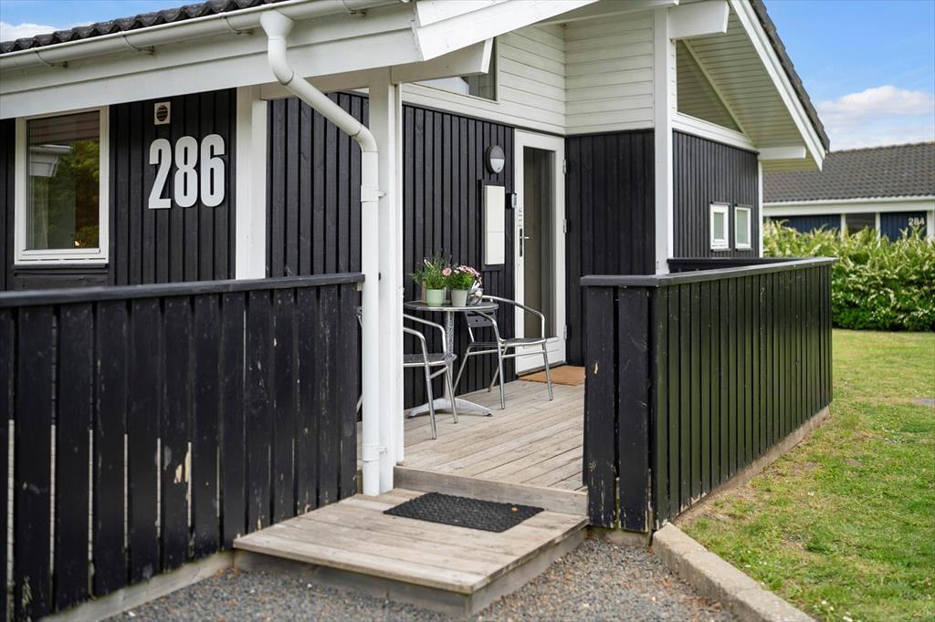 Grus indkørslen med plads til flere biler byder jer velkommen til sommerhuset. Rundt om sommerhuset er en dejlig stor træterrasse, som er delvist overdækket. Terrassen indbyder til hygge og afslapning i husets havemøbler, liggestole eller loungemøbler. Aftensmåltidet kan tilberedes på huset grill.
