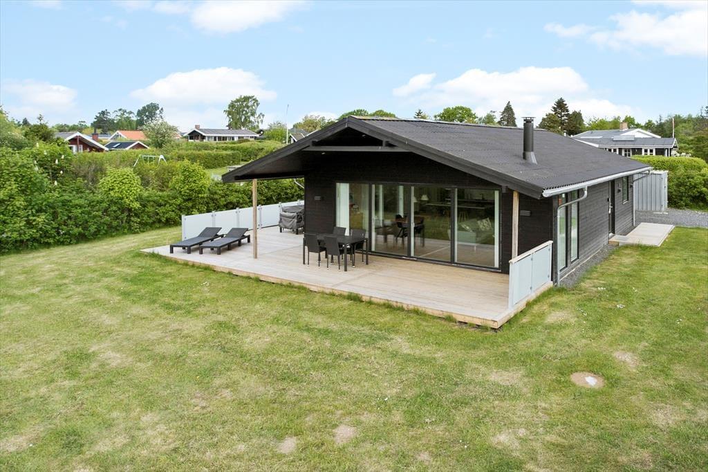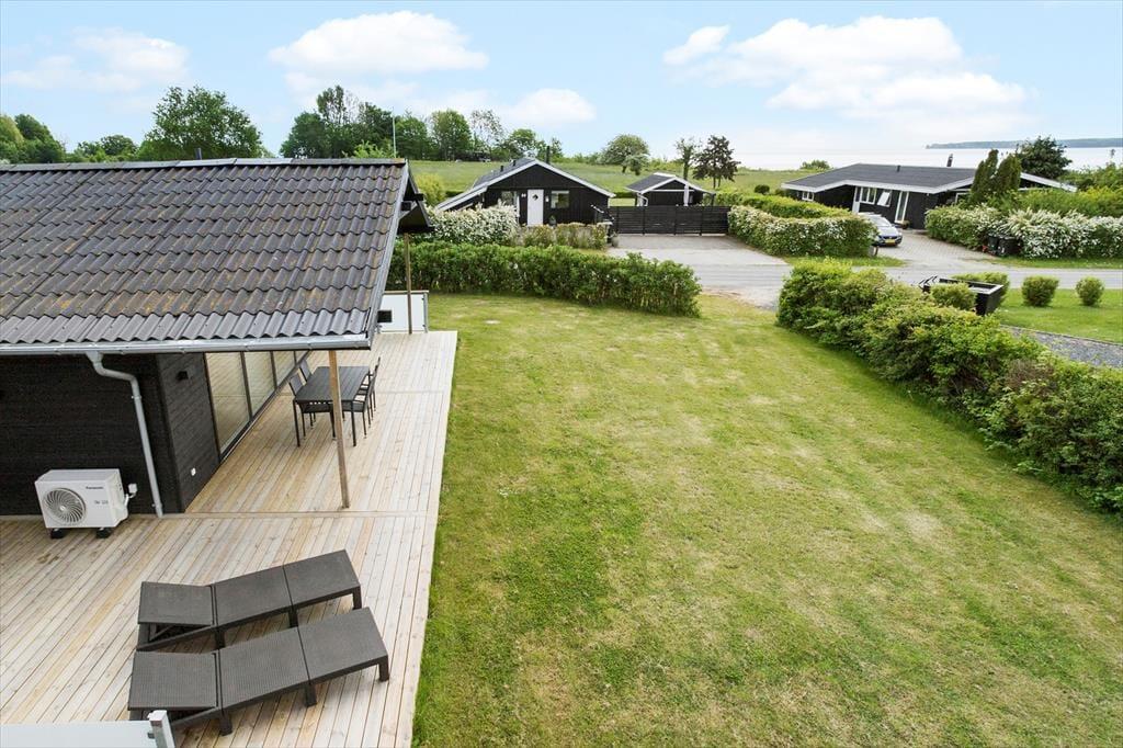 Fra stuen er der udgang til en stor delvist overdækket træterrasse med havkig. Husets terrasser, som er både åbne og delvis overdækkede, vil hurtigt blive jeres yndlingssted, hvor familien og venner kan samles, snakke, slappe af og bare nyde tiden med hinanden. Her er der mange fine havemøbler og en stor grill, hvor I kan tilberede dagens måltider. Der er god plads til fri leg og hygge i denne have og huset ligget tæt på legeplads/boldbane.