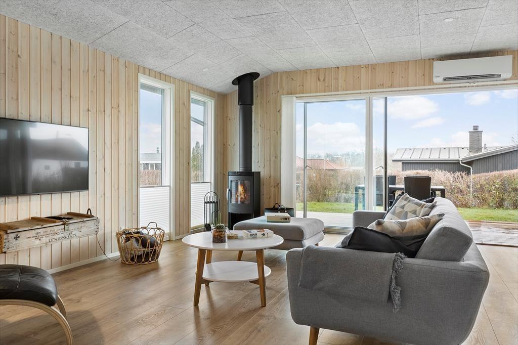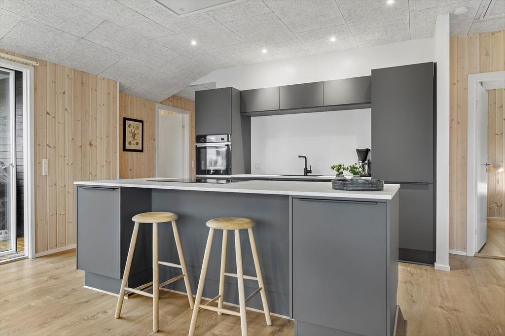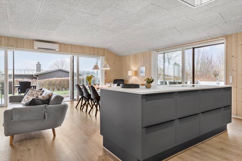 I husets centrum finder man et stort flot og åbent køkken, der indeholder alt det man skal bruge på en ferie. Heriblandt opvaskemaskine, mikroovn, elkedel, kaffemaskine kogeplade og ovn og selvfølgelig køleskab med frys. I direkte forbindelse med køkkenet, er der en stor og åbne stue med plads til hygge og sjov. Her er der mulighed for at hygge omkring fjernsynet, som både har danske, tyske, norske og svenske kanaler samt Chromecast, hvor man kan bruge sine egne streamingtjenester.