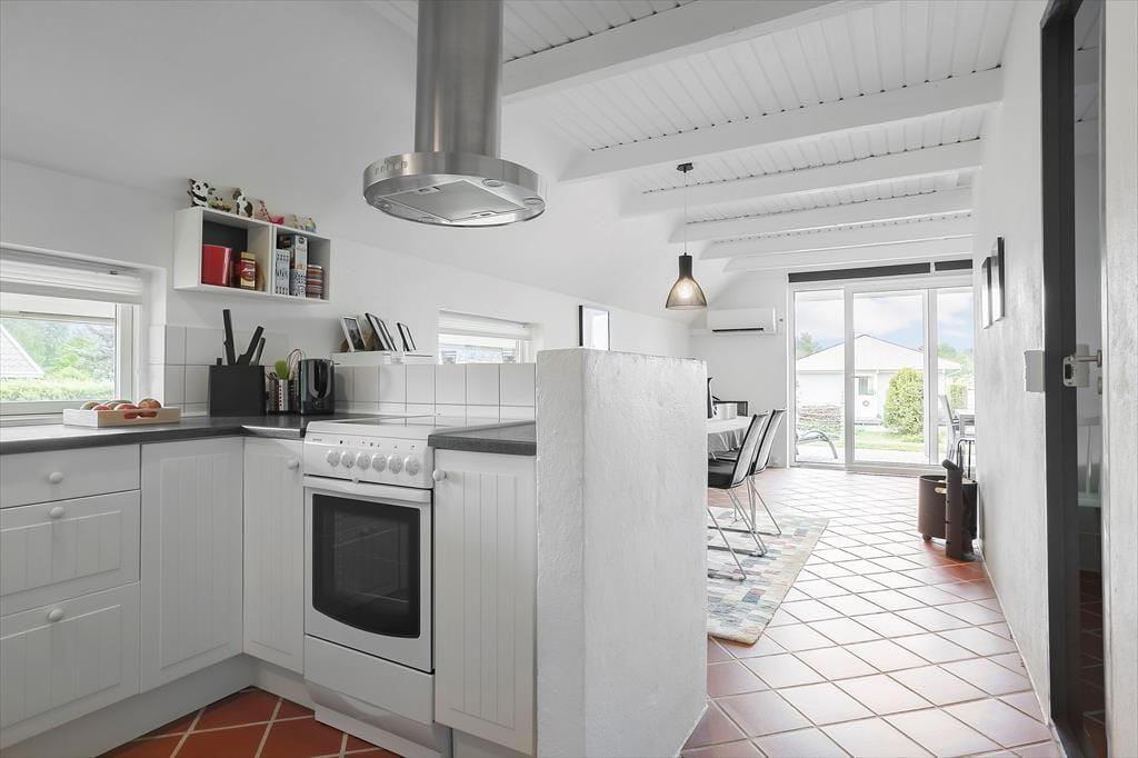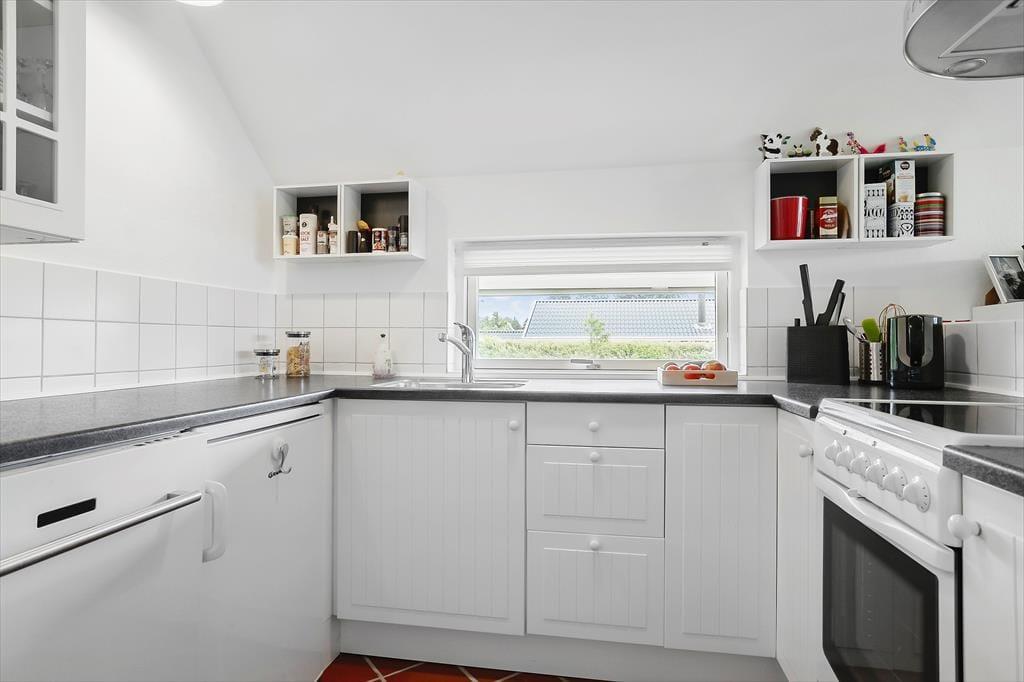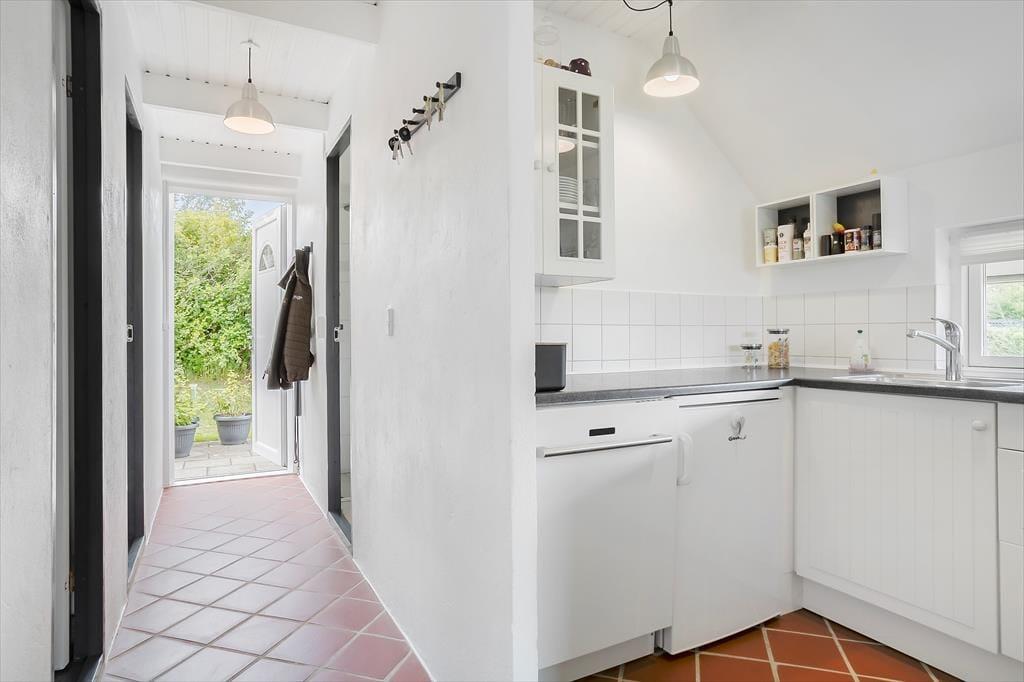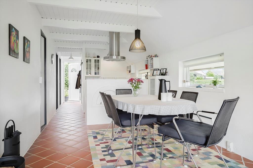 I køkken/alrummet er der indrettet en dejlig spiseplads, der også nyder godt af det dejlige lysindfald fra vinduerne mod haven. Det åbne køkken gør det let at lave mad og samtidig være med i snakkende omkring spisebordet. Køkkenet har alt, hvad der er nødvendigt for at lave mad til alle dagens måltider. Her er bl.a. opvaskemaskine, mikroovn, kaffemaskine og god bordplads, så alle kan hjælpe til og hygge sig i køkkenet.